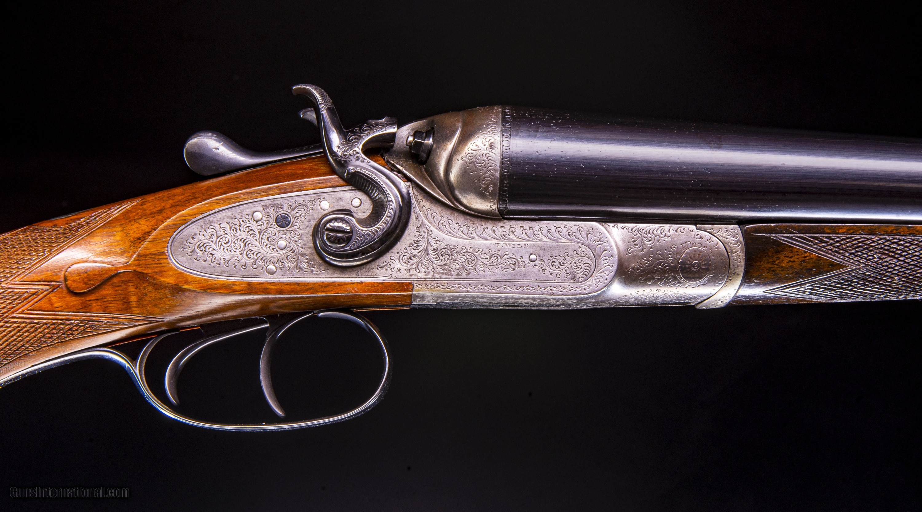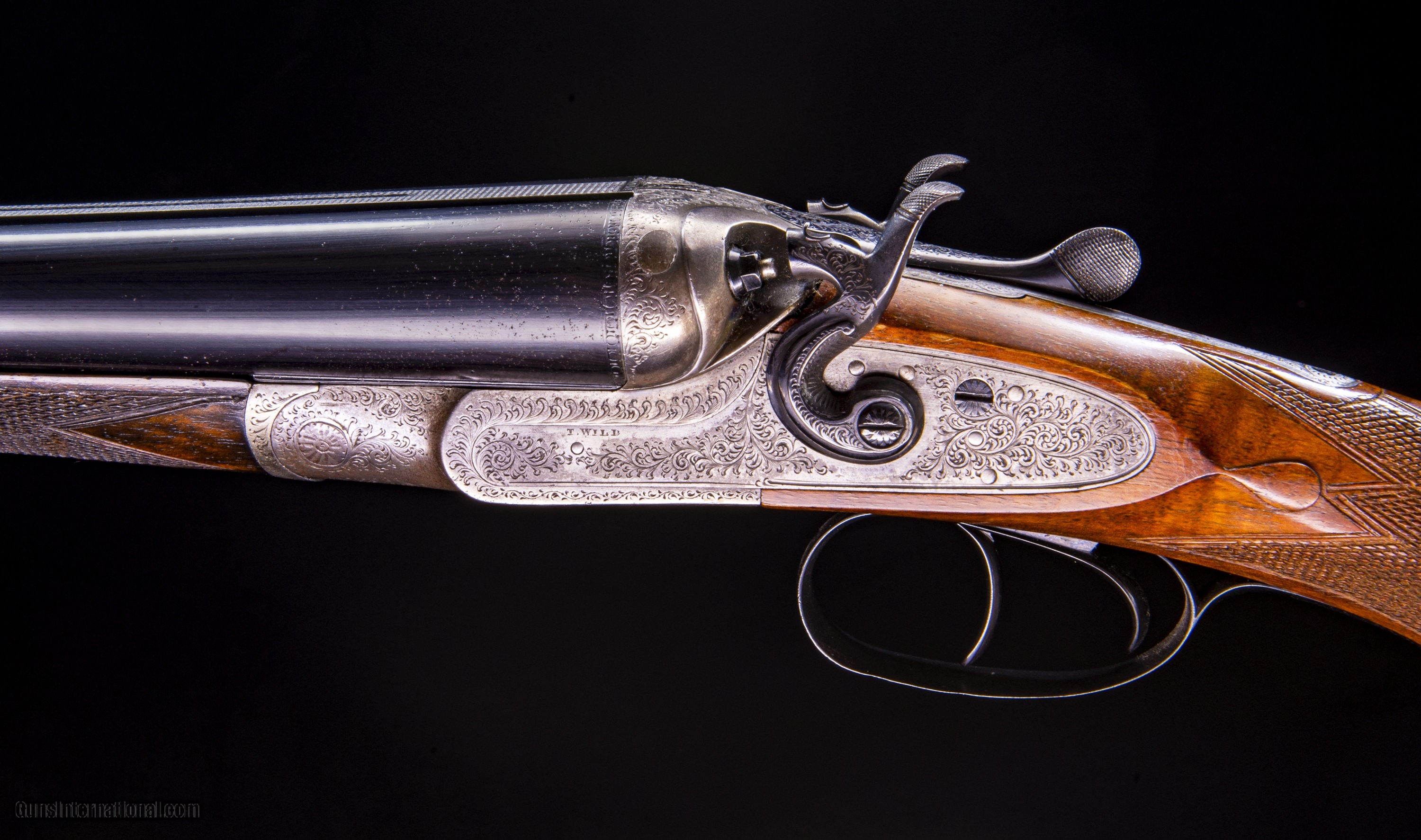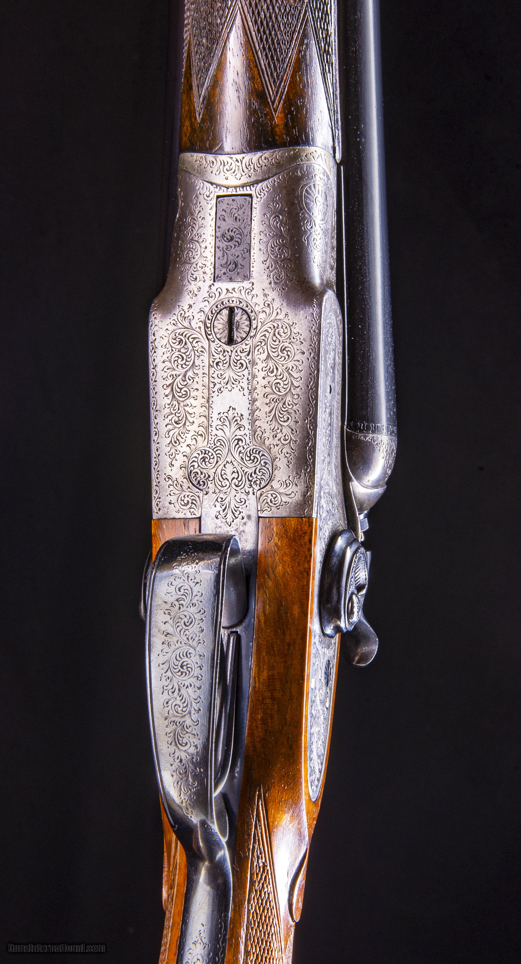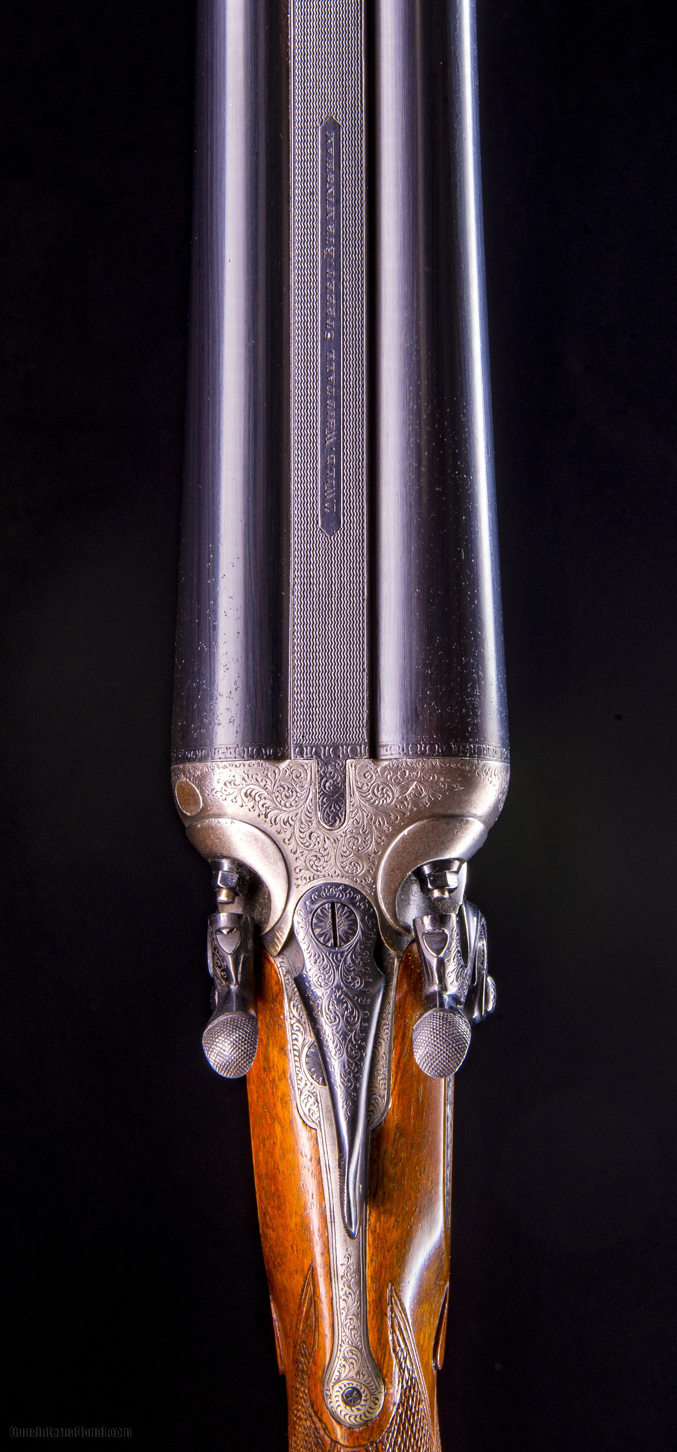 Description: Hammerguns - Chcked extra full and Mod this would make a great Turkey killer or clays gun! Pigeon hammer doubles are very hard to find. This one was built in 1914. Good dimensions, chokes, and you have to love the 32" barrels. *** Note: To see this gun with high resolution photos and a zoom-in feature, go to the vintagedoubles main site and search for the gun ID: 5336 or browse the main site to see our full gun collection. SOLD Manufacturer: Thomas Wild with 3" 12g. Nitro proofs! Live pigeon weight and dimensions ~ 32" steel barrels Model: None Serial Number: 8538 Ejectors: No Barrels: 32 Barrel Type: Steel Action: Top Lever rebounding hammers Gauge Info: 12 gauge Stock Comb: 1 5/8 Stock Heel: 2 1/8 Stock Cast: 1/4 LOP: 14 1/4" with ho Weight: 7 lbs 8 ozs Choke Left: .045 Extra full Choke Right: .014 IC/Mod Proof:Nitro: 3 Minimum Wall Thickness Left: .023 Minimum Wall Thickness Right: .029 |
