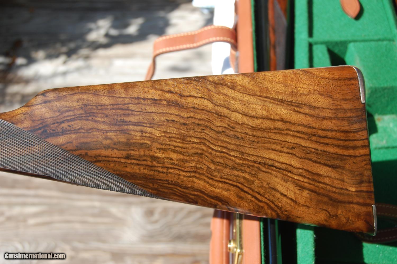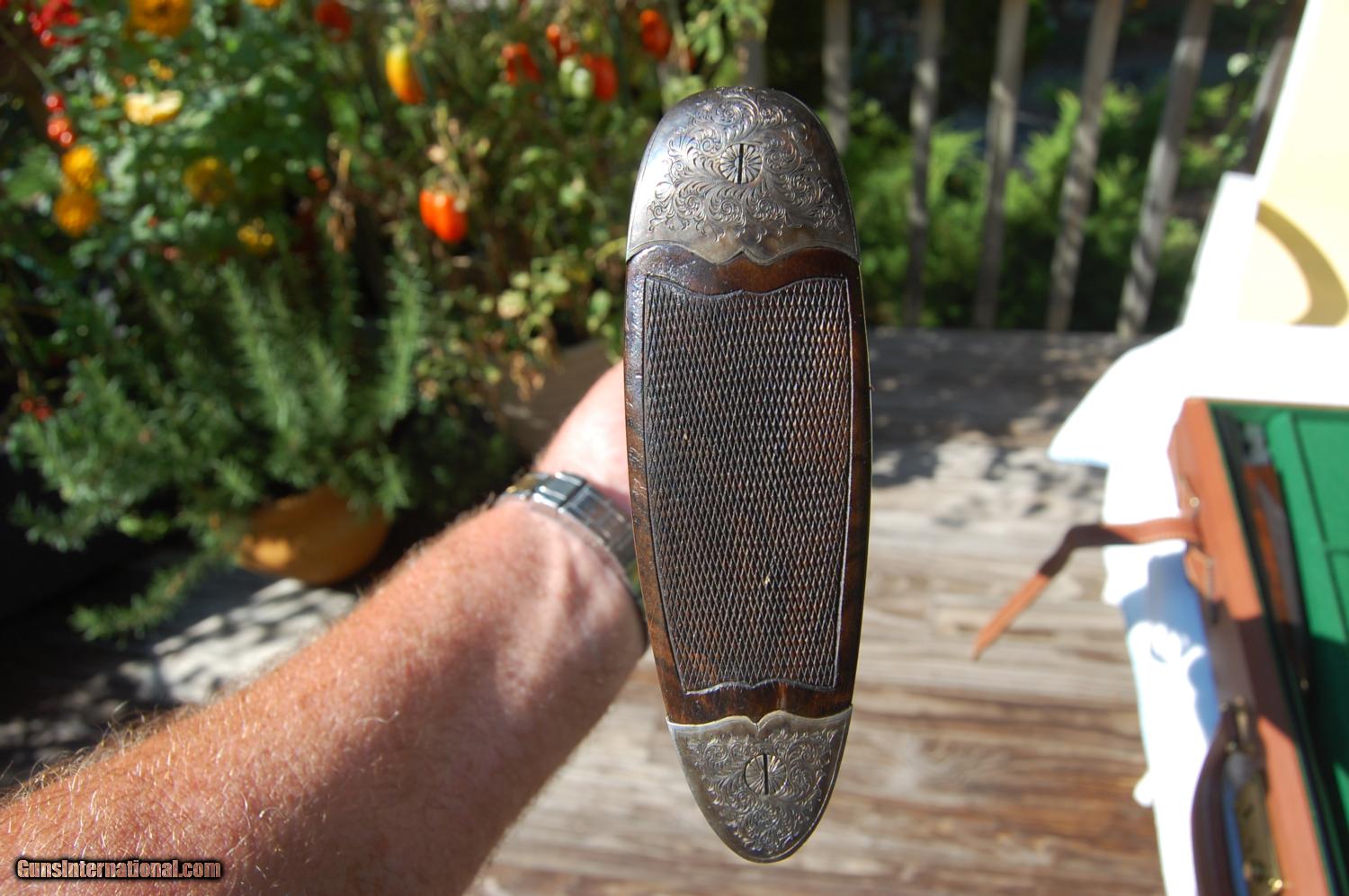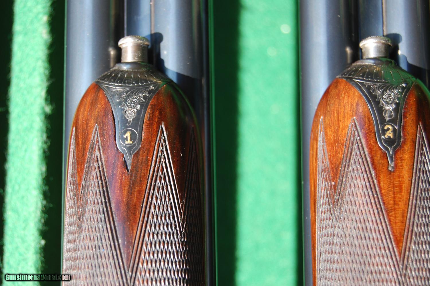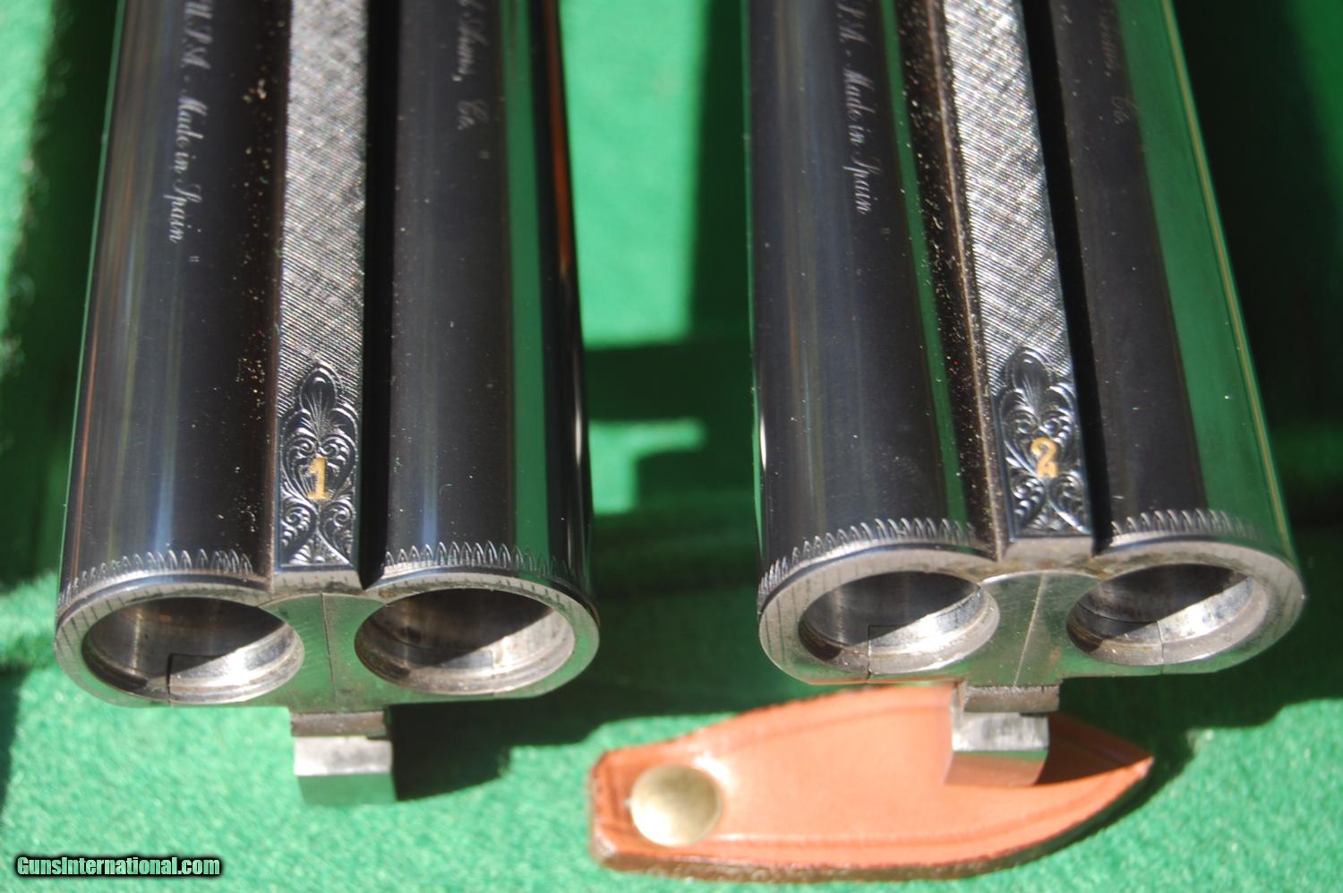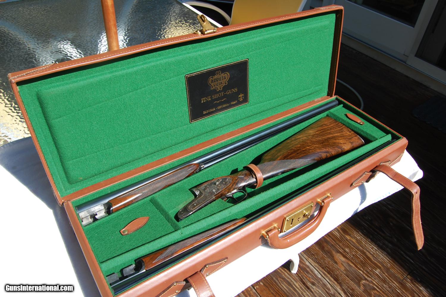 Description: PRICE REDUCED FOR THE LAST TIME - Arrieta Ligers 20ga. / 28ga. Two Barrel Set, both barrel sets are 28" and both sets are choked IC/M. Highly figured Walnut straight stock, perfect bluing and metal work, engraved toe and heel clips, leather Makers case. The measurements are: LOP - 14 1/2" DAC - 1 1/2" DAH - 2 1/4" Cast Off - 1/4" . Wt. with 20ga. barrels - 6lbs. 4oz. Wt. with 28ga. barrels - 6 lbs. 5oz. Excellent condition overall with minor handling marks. The perfect Upland Game gun SOLD |