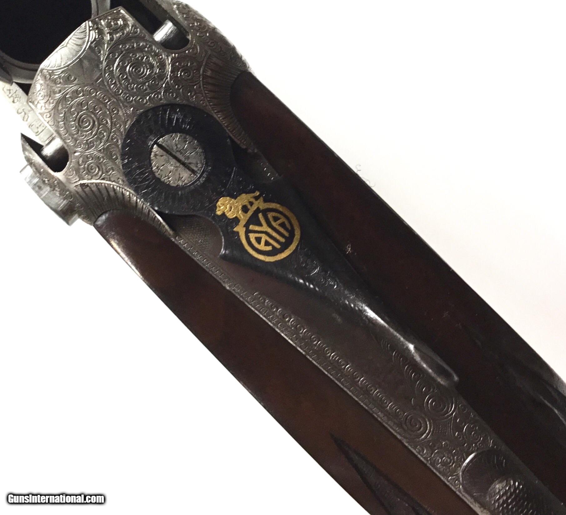Description: AYA Model 37A- Combo,12 Gauge, 29 5/8” two bbl set, 2 3/4” Chambers with ejectors, Highly figured semi-pistol grip Monte Carlo stock with cheek piece and bone grip cap, basket weave checkering, two piece forearm, Coin finished hand detachable Side-lock with game scene engraving on side-locks and fine scroll engraving on bottom plate and long tang trigger guard, Miller trigger convertible from pull/pull to release, entirely hand crafted in Spain. SN-46363, $6,995.00, HAMPELSGUNCO SOLD Manufacturer: AYA Model: 37A-Combo Serial Number: 46363 Chambers: 2 3/4” Ejectors: Yes Condition: Very Good Metal Condition: Very Good Wood Condition: Very Good Bore Condition: excellent Barrels: 2 bbl set Barrel Type: O/U Action: Side Lock Triggers: Single/Miller Gauge Info: 12 Stock: Semi-Pistol Grip Stock Comb: 1 9/16” Stock Heel: 2 1/8” Stock Cast: 0” Fore End: Two piece Butt Pad: Mershon White Line LOP: 14 1/8” Rib: Ventilated Finish: Gloss &Oil Weight: 8lbs. 11.1 oz. Sights: Front glow bead., mid ivory Choke Left: .035/.052 Choke Right: .016/.0;35 Engraving: Game Scene Case: Yes Item Location: Michigan |