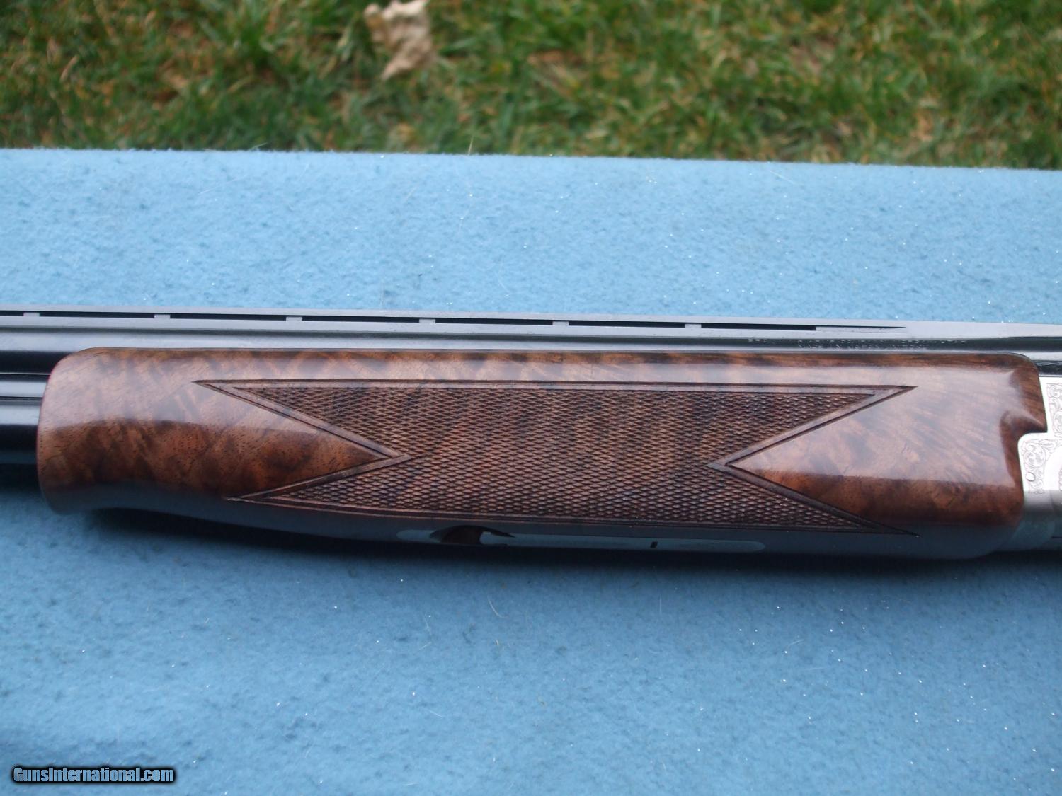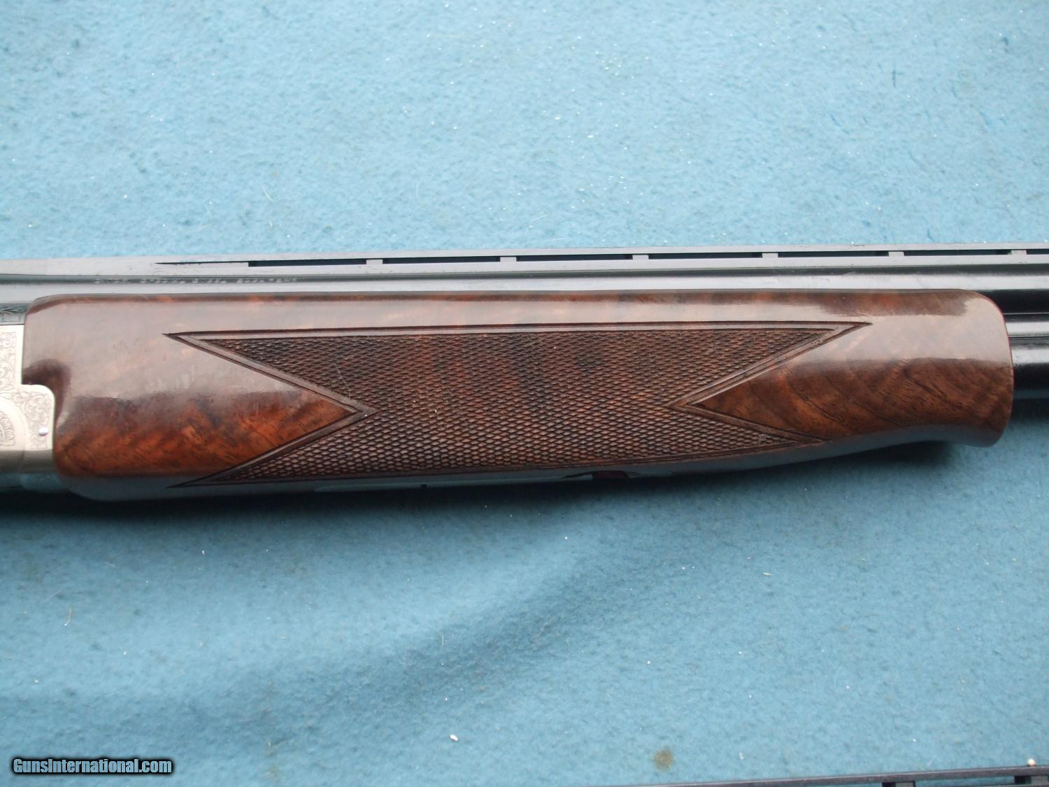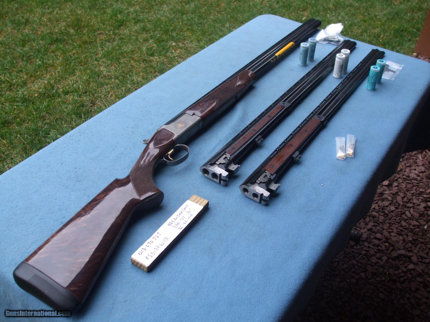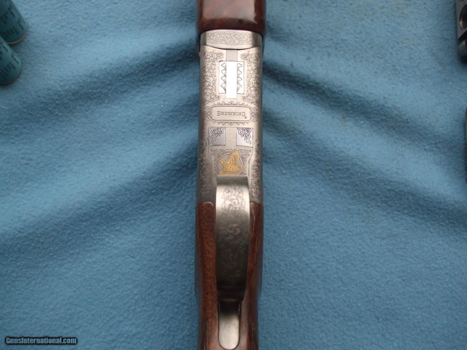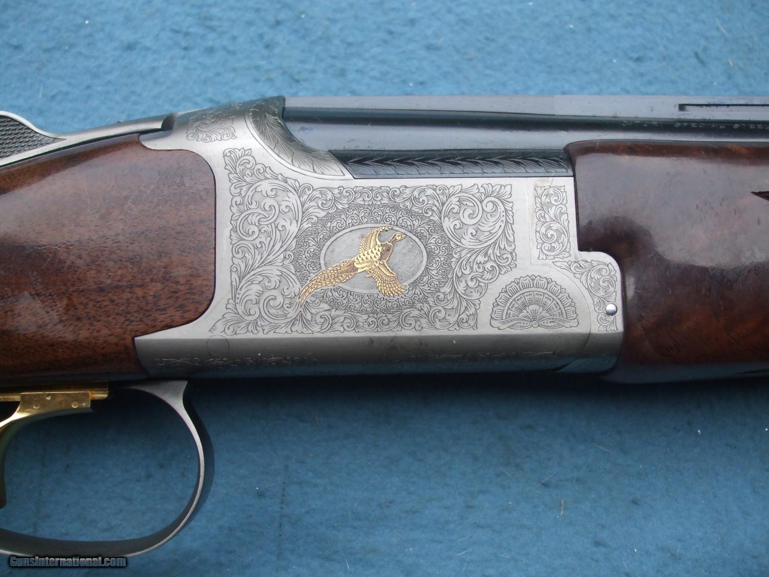 Description: Browning 425 Sporting American Sporter Gold custom order 3 barrel set 20-28-410. This is brand new gun part of large custom order for 2015. All barrels are 30" in length with flush factory screw in choke tubes. Fancy american walnut with gloss finish. 20 and 28 barrels have 425 10mm wide rib with white double beads. 410 barrel has 6mm rib with double white beads and 3" chamber for hunting loads. 20 gauge barrels are equipped with Browning invector plus chokes (4) 1- skeet 2-ic 1-mod. 410 and 28 barrels equipped with Browning invector chokes (4) 1-skeet 2-ic 1-mod with each barrel. Stock dimensions 1 1/2" drop at comb, 2 3/8" drop at heel and 14 3/4" LOP with Browning inflex technology pad. The American Sporter engraving pattern is an exclusive pattern with light scroll engraving featuring a pheasant on one side, duck on the other and quail on the bottom all in gold on this model. Full scroll coverage on the top of the receiver and forend iron. Browning 3 point adustable trigger system. The firearm is shipped with Browning canvas and leather 3 barrel case. Only 21 sets have ever been produced spread over 4 models. Truly unique opportunity to purchase a functional firearm that with the limited numbers produced will be great collectors item. SOLD Manufacturer: Browning Model: 425 American Sporter Gold Serial Number: 23139zw131 Chambers: 2 3/4" 410-3 Ejectors: yes Condition: new Metal Condition: new Wood Condition: new Bore Condition: new Barrels: 30 Barrel Type: o/u Action: citori Triggers: inertia Gauge Info: 20-28-410 Stock: high grade walnut Stock Comb: 1 1/2 Stock Heel: 2 3/8 Stock Cast: right hand Fore End: schnabel Butt Pad: inflex sporting LOP: 14 3/4 Rib: 10mm/6mm Finish: high gloss Weight: 7-7lbs 2oz Sights: double white Manufacture Date: 2015 Chokes: inv and inv+ Engraving: American sporter Case: yes |