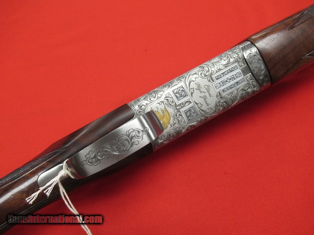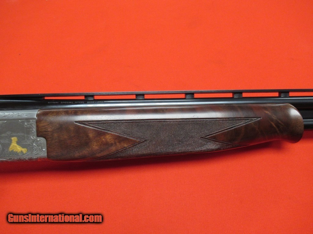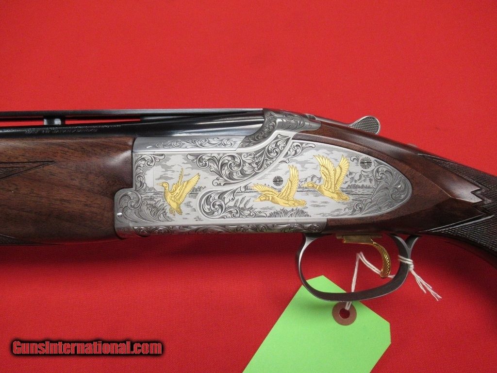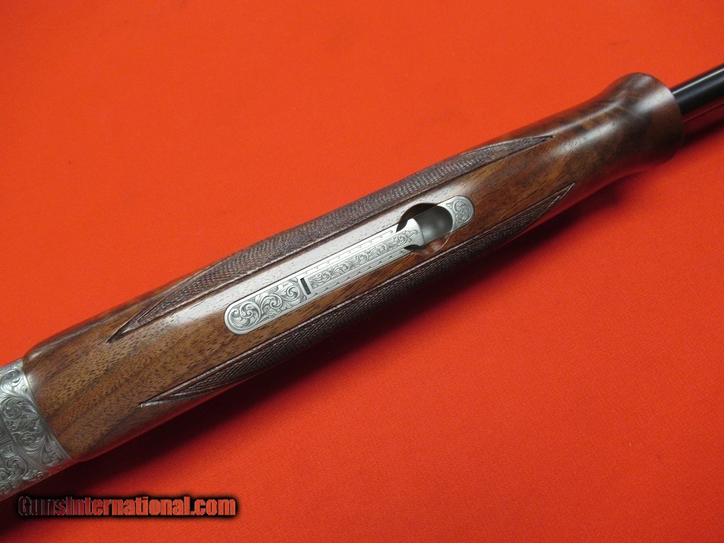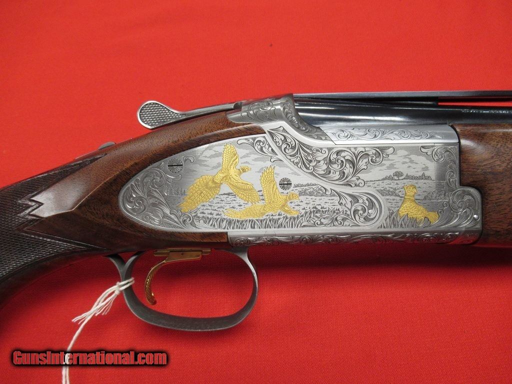 Description: Browning Citori High Grade 4bbl Set 12/20/28/410ga 30"(LNIC)-- Browning High Grade 4bbl Sporting set with full coverage gold game scene engraving in scroll. This gun has an extremely well-figured stock forend. All barrels are equipped with factory installed chokes tubes. This gun comes cased in a full leather case. This gun is reported to be unfired by the previous owner and we would agree. Stone mint and priced to move. SOLD |