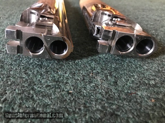 Description: Browning, Made in Belgium, over/under Superpose, Midas grade, 2 barrel set 28ga in 26" with 2 3/4" chamber Mod/Imp Cyl (this barrel has never been fired), 20ga is 28" 3" Full/Mod (this barrel has had less than 1 box fired through it), square knob, long tang, highly engraved, engraved by I. M. Debrus, comes with hard case and papers, 99.9% condition, for further information call John at 941-748-7318. SOLD |
