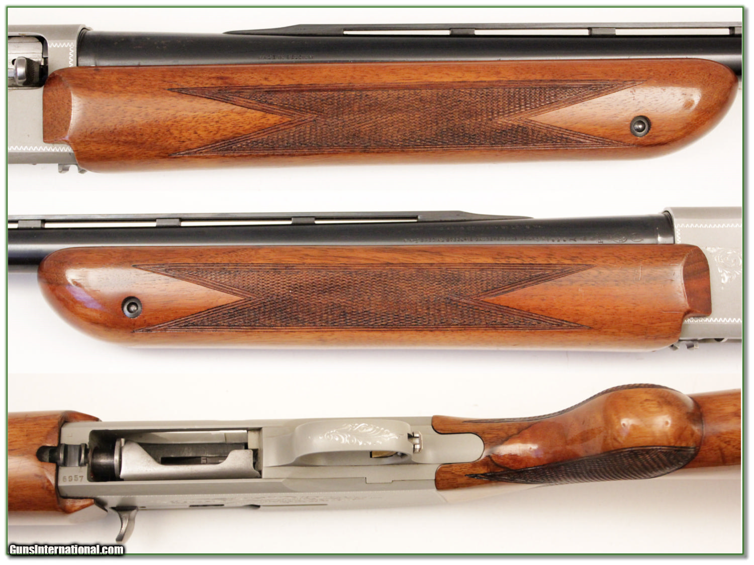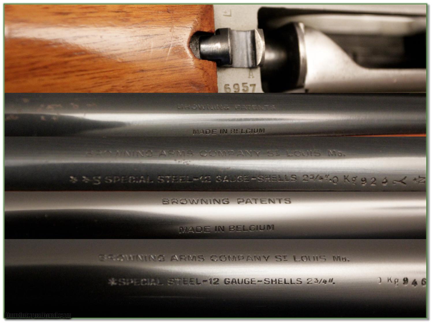 Description: Collectors, this is a 50’s St. Louis Browning Double Auto 12 gauge. It has the harder to find Silver receiver and is in excellent condition. It comes with 2 barrels. One is a 26in Vent Rib Skeet and the other a 30in full. 26 in barrel has only a couple minor freckles. Wood has a few storage marks on the toe and and forearm. LOP is just over 14.5 in. This set will make a nice addition to your collection. I am selling this one on consignment and as such lay-a-way can’t be used. It does of course have the standard 3 day inspection. Shipping and insurance is $30 or $18 more if you want it shipped in a new Plano hard case. Please email me with any questions or larger pictures. (I now consign quality firearms only 10%! Let me know if you have any you would like to sell!) [15-1287] Payment: Payment is by Money Order, Cashiers Check or Personal Check. I can now also accept MasterCard and Visa with a 3% convenience fee. PayPal can be used for some items but never firearms. Please let us know if you would like to pay via PayPal. Shipping: The shipping charge will be listed in each description. It is $30 for most guns. Some heavy guns or those insured for over $2000 may be higher. Shipments to Alaska and Hawaii are higher because air shipment is required. Most firearms are shipped within 5 days of receipt of payment. We prefer shipping at the beginning of the week to avoid firearms in transit over weekends. We package all shipments carefully and insure them for the full purchase price, rounded up to the next $100. In the unlikely event that damage occurs, it is important that you save all packaging material for the claims process. Optics are shipped Priority Mail and most other non-firearm shipments are shipped First Class. Returns: Our return policy is simple. If for any reason you are not pleased with your purchase, you may return your item for a refund. The only exception is ammunition, it cannot be returned. It is important to us that you are happy. Guns cannot be fired or dissembled before returning them and must be returned in the same condition as received. Notification of a return must occur with-in 3 days of receipt at your dealer. Shipping, convenience and dealer fees are not refundable and are the responsibility of the buyer. Lay-a-way: If needed, we offer a 60 day lay-a-way option on most firearms. It is 1/3 now, 1/3 in 30 days and 1/3 in 60 days. Lay-a-way firearm sales are final. Consigning your firearms with Shooting Investments: We will help you get top dollar for your firearms. While most local guns shops charge 20% or more, our fee is only 10% with a minimum of $50. At your local gun shop it might take months to sell. Selling on-line provides instant access to thousands of interested buyers. You won’t find any other on-line dealer willing to sell your firearms for only 10% or listing every gun on 4 separate s. Selling through an House typically costs the seller 15% and the buyer an addition 15% (so 30%) and you have to wait several months to sell and longer to receive funds. If properly priced, we will sell your firearms in a week or two. Send us an email or give us a call and we’ll explain how easy it is for you to get top dollar. Trading: We collect guns and usually just trade for guns we want to add to our collections. We often sell guns for others wanting to purchase one of ours. We find this the most fair to both of us. Our Commission is only 10% and we hold the gun you want until yours sells. Please contact us if you want to sell one of yours to buy one of ours. Help for California Buyers: We are happy to ship to California. It is the buyer’s responsibility to make sure any item you buy is legal in your state. We are also happy to help with your purchase of a firearm from someone other than us. If you see a gun you would like to buy but the seller can’t or won’t ship to California we can help. You buy the gun and have it shipped to us. We’ll then ship it to your California dealer. The cost for this service is only $30 + shipping. Let me know if we can help! SOLD |