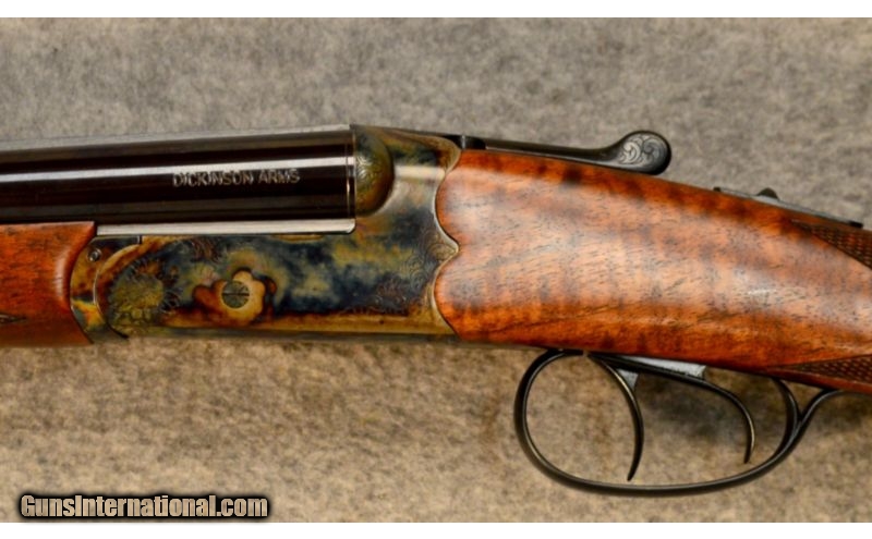 Description: This is a new Dickinson Estate 2 barrel set. SOLD Caliber Info: 28 Gauge & .410 Bore Chambers: 28 Gauge has 2 ¾ inch chambers, and the .410 has 3 inch. Metal Condition: New. Wood Condition: New. Bore Condition: New. Barrels: 28 inch Triggers: Double triggers. Stock: Checkered straight Turkish Walnut stock. Stock Dimensions: 1 ½ inch DOC ~ 2 ¼ inch DOH ~ 14 ¾ inch LOP ~ No Cast. Fore End: Checkered Turkish Walnut splinter forend. Butt Pad: Checkered Turkish Walnut. Weight: 5 ½ lbs. with the 28 Gauge barrel. Sights: Brass bead. Chokes: 28 Gauge has interchangeable chokes, and the .410 is choked Full & Full. Extras: New in box. Item Location: Glendale, AZ |