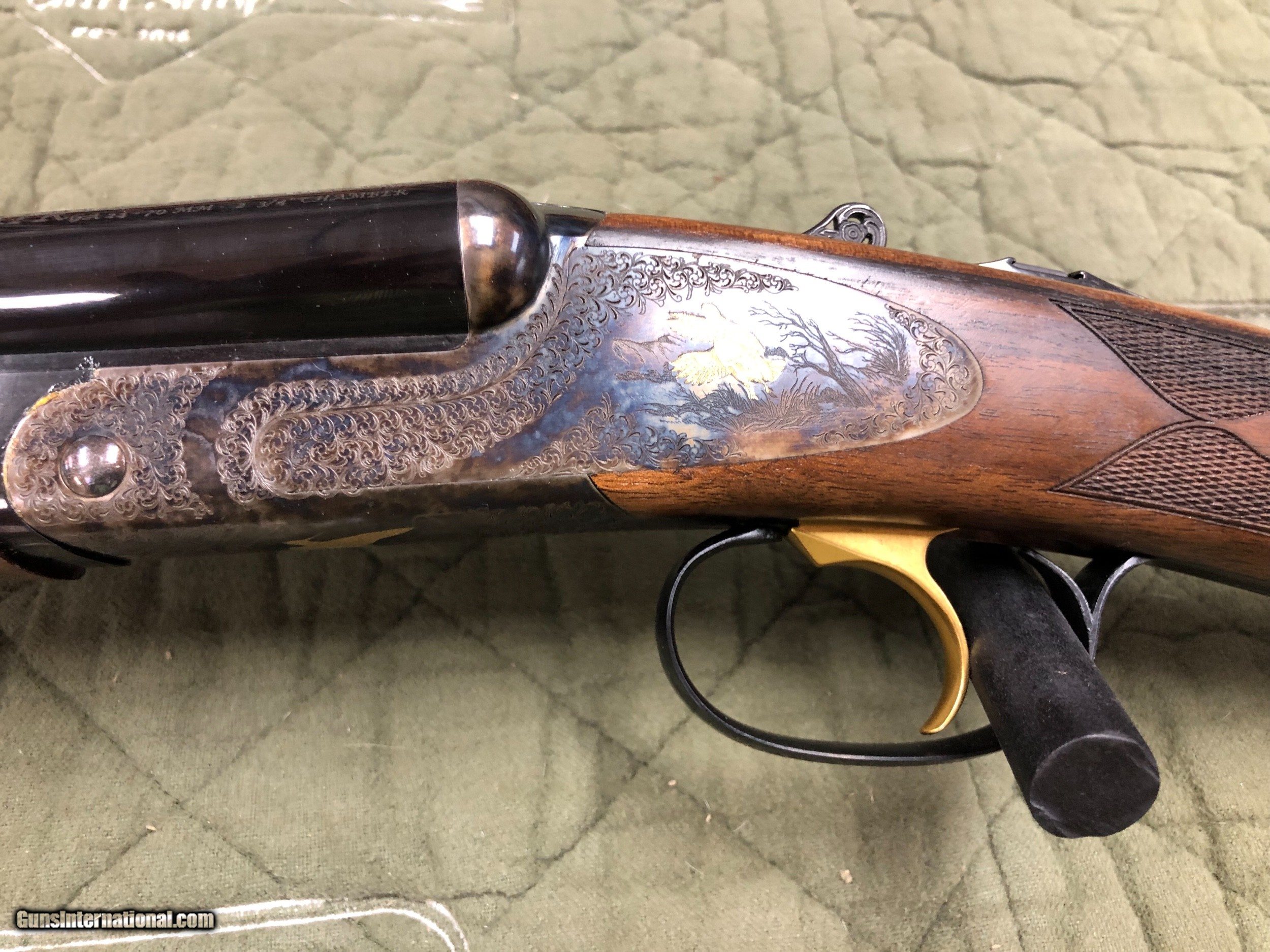 Description: Up for sale is a beautiful FAIR ( I.RIZZINI) Iside Prestige Tartaruga Gold. This fine game gun is a two-barrel set, one barrel is a 20 ga with a 3inch magnum chamber the other barrel chambered in 24 Ga. Both barrels are 28 inches long, the 24 ga barrels are fixed Ic/Mod chokes and the 20 ga has five screw in (Cyl, Imp Cyl, Mod, Imp Mod and Full) chokes. This was a custom order that I placed at SHOT show in January. They feature Hand cut checkering on the English stock and splinter forend, long tang trigger guard, single selective mechanical trigger, automatic ejectors, and upgraded wood. This is something different, this is the first time that FAIR has 24 ga guns on the American market I wanted to offer something out of the ordinary. This is an heirloom quality double in a chambering that you don’t see every day. Ammunition is easily obtained from Fiocchi USA or RST classic shotshell. I have about 14 cases on hand and one case of 250 rounds is included with the sale of each gun. The LOP is 15 5/8 The drop comb is 1 5/16 and the drop heel is 2 5/16. The stock is cast off. The gun comes in 5pounds 13 ounces with the 24 Ga barrel and 5 pounds 14.5 ounces with the 20 ga barrels and balances perfect. We stock many different models in the Iside line and will custom order you anything you desire. Buy the best and cry once. I love to sell fine guns; I am not a curator of a museum. I stock a vast array of Ceasar Guerini, Fabarm, Syren, Rizzini, Blaser,Merkel, NightHawk Custom, Cabot Gun and many more. It is impossible for me to list everything If you don’t see the exact model you desire feel free to call or email with any questions. Thanks for looking SOLD Manufacturer: FAIR (I. Rizzini) Model: Iside Prestige Tartaruga Gold Ejectors: yes Bore Condition: New Barrel Type: SxS Action: Box Lock Triggers: SST Gauge Info: 20/24 Ga Combo Set Stock: English Stock Stock Drop: 1 inch Stock Comb: 1 5/16 Stock Heel: 2 5/16 Stock Cast: Off Butt Pad: Wood But Plate LOP: 14 5/8 Rib: Field Rib Finish: Case Color Weight: 5 Pounds 13 ounces Sights: Single Bead Chokes: Fixed on 24 Ga 5 Screw In Chokes On The 20 ga Engraving: Game Scene/Scroll Extras: One Flat of 24 Ga Shells included Case: YES Item Location: Pennsylvania |