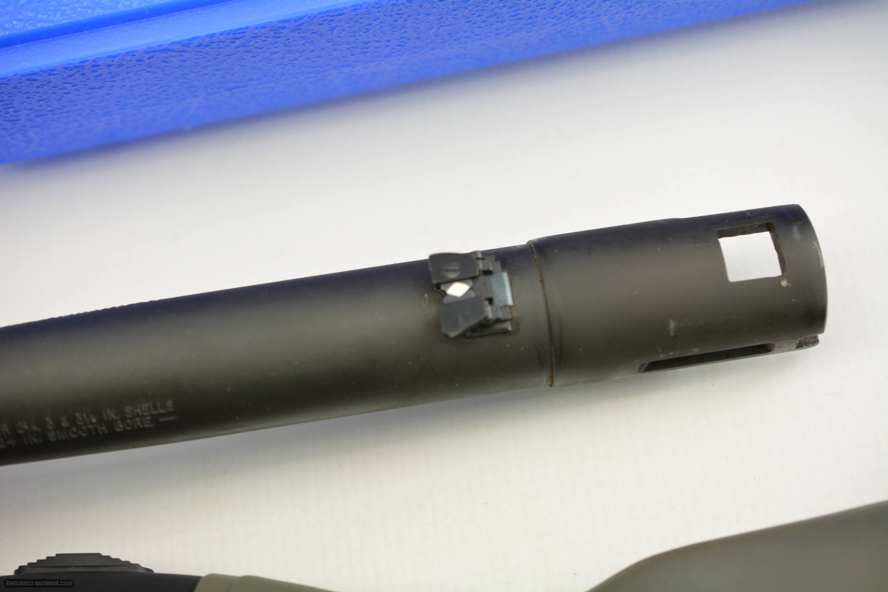 Description: Serial #UM357430, 12 Ga. (3 1/2"), 28" VR and 24" rifle sight barrels with fine, lightly streaked bores. This is a slightly used shotgun (no. 237 of 650) that features special NRA graphics on the right side of the frame. The gun and both barrels retain 97-98% of the original matte gray phosphate finish, and exhibits some freckling and minor surface oxidation on the VR barrel. The olive green plastic forend and buttstock are in excellent condition without any noticeable handling marks or blemishes. The gun is housed in the original blue plastic case with papers, and gunlock. FFL SOLD Manufacturer: Mossberg Model: 835 Caliber Info: 12ga Gauge Info: 12ga |