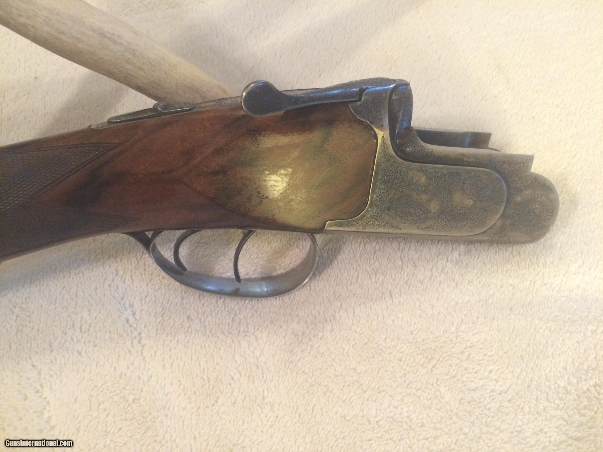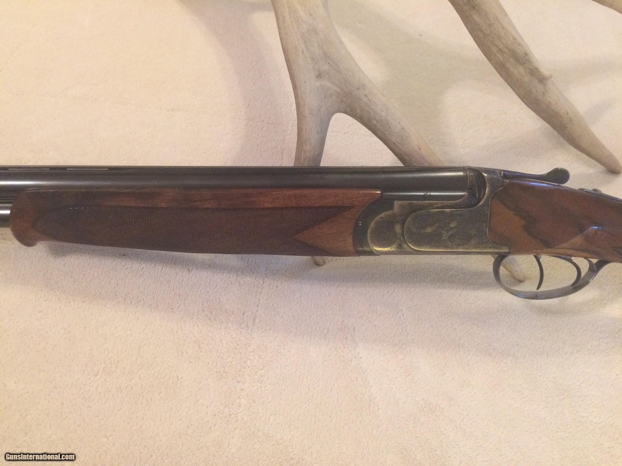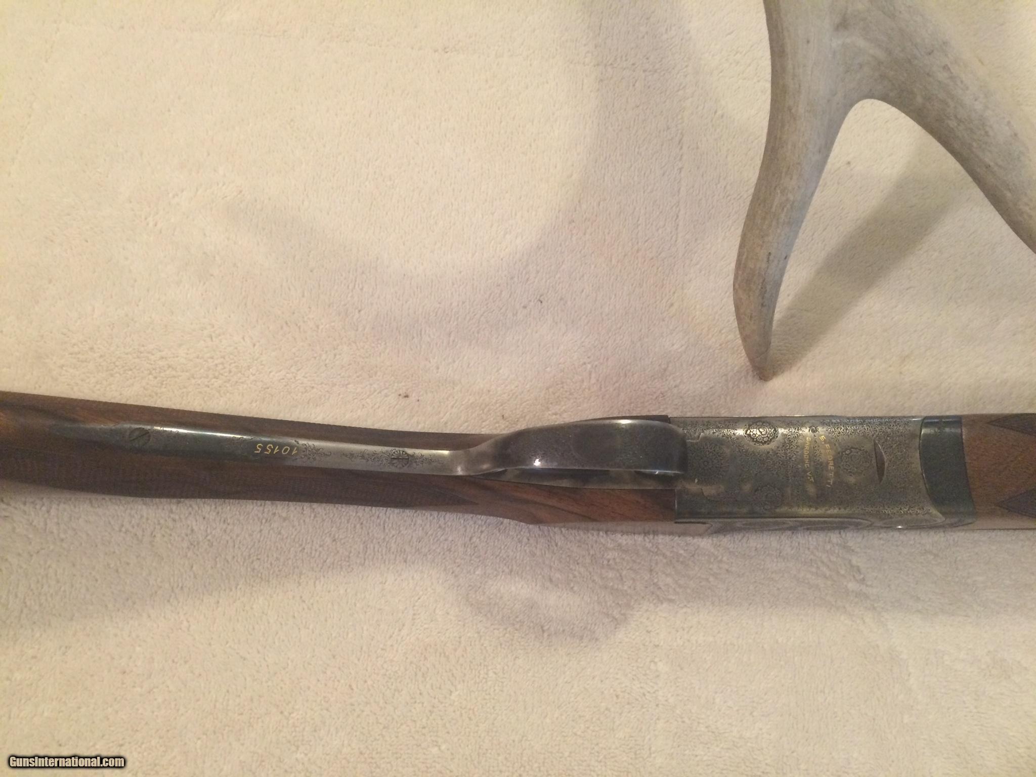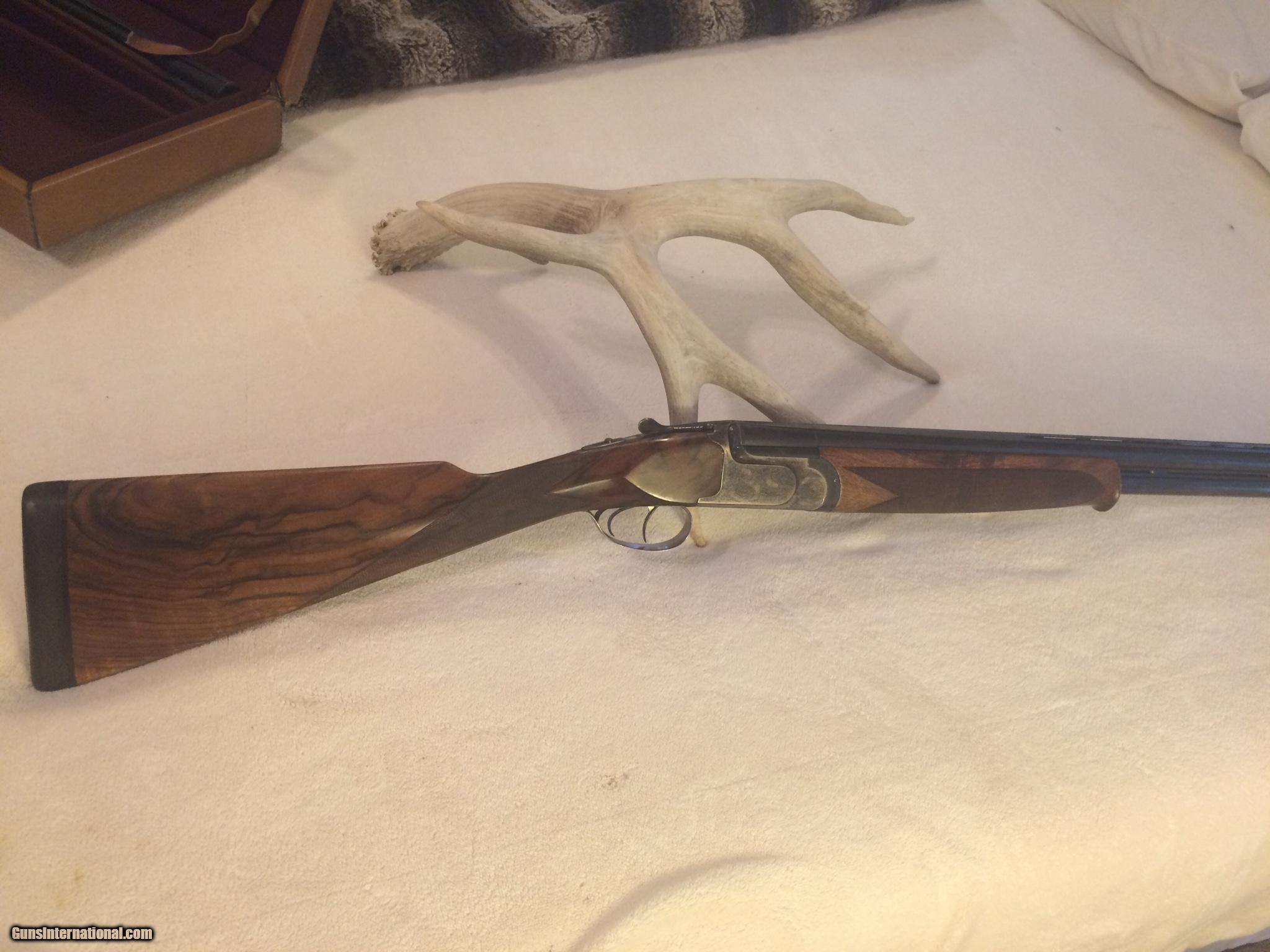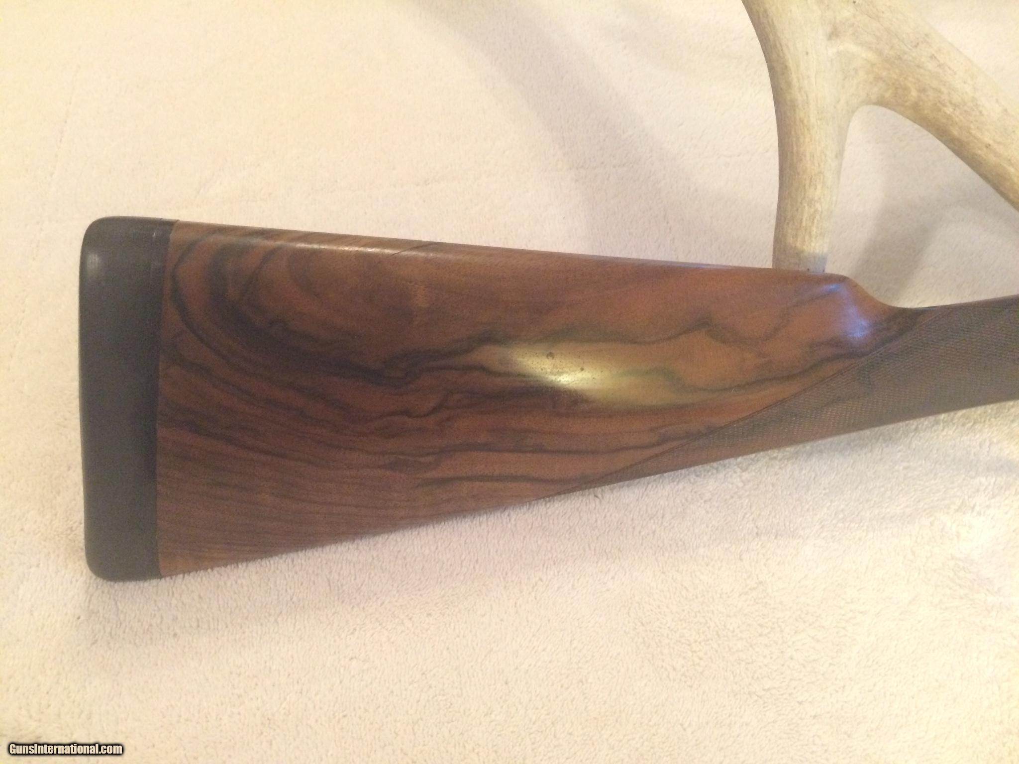Description: Beautiful two barrel set 20 ga. One set imp and mod. #2 set Mod and full. Beautiful Turkish walnut stock with case hardened receiver. This shotgun is made by hand in Brescia Italy. Same place Beretta is made only this is more gun for the money. You will have to get into the higher grade Beretta to come close to the workmanship here. Straight stock with double triggers. Leather covered pad. Patterns beautifully. Imp barrels are 26 inch and Mod barrels 28 inch. Comes with original makers case. Small, repaired crack in the forearm of the full and mod set. SOLD Manufacturer: Pedretti Model: Over/Under Caliber Info: 20 ga Ejectors: Yes Condition: 95% Metal Condition: 95% Wood Condition: 92% Bore Condition: 98% Action: Box lock Triggers: Double Gauge Info: 20 ga Stock: English Butt Pad: Leather covered LOP: 14 3/4' Rib: Vnt Finish: Oil Item Location: Gardendale, Tx |