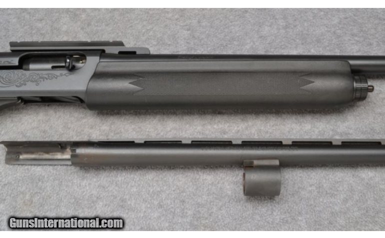 Description: Receiver blue shows faint edgewear. Barrels remain excellent with excellent bores. Synthetic stock shows only minor hunting scuffs. No box. SOLD Manufacturer: S/N R040XXXV Caliber Info: 12 GA Chambers: 2 3/4 Metal Condition: Very Good Bore Condition: Excellent Barrels: 28" Vent Rib with Modified Choke Tube Triggers: Factory Stock: Checkered Black Synthetic Stock Dimensions: 13 7/8" LOP Fore End: Checkered Black Syntehtic Butt Pad: Black Rubber Weight: 8 1/4 LB Sights: Single Front Bead - Cantilever Scope Mount Chokes: 24" Hastings Paradox Rifled Slug Item Location: Wheeling, WV |