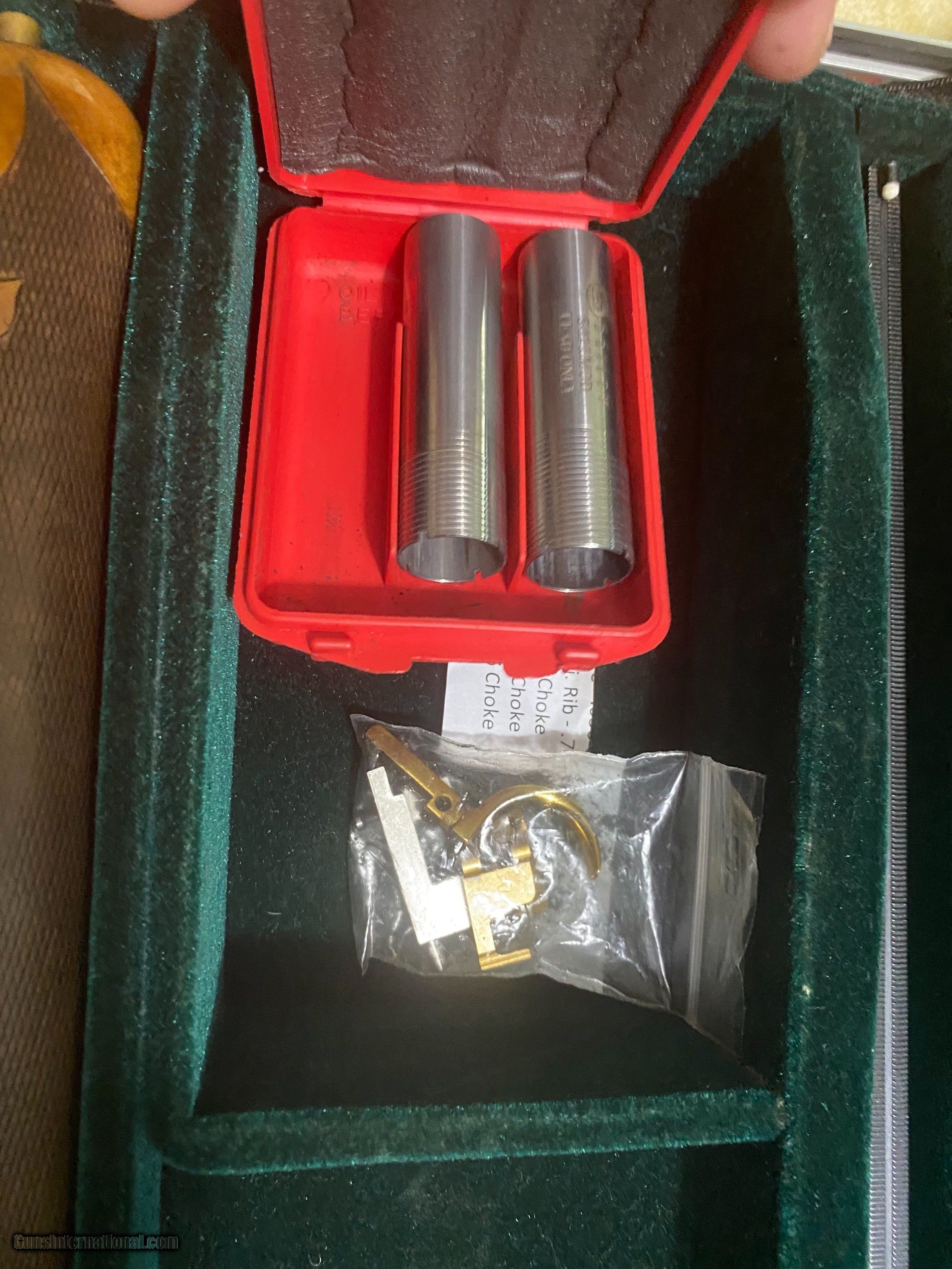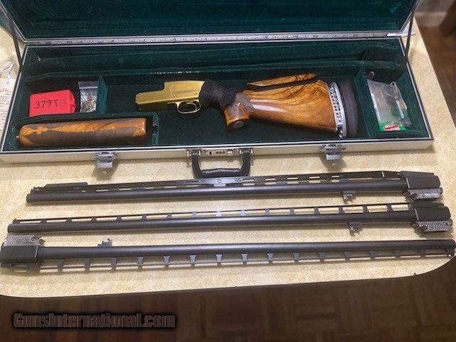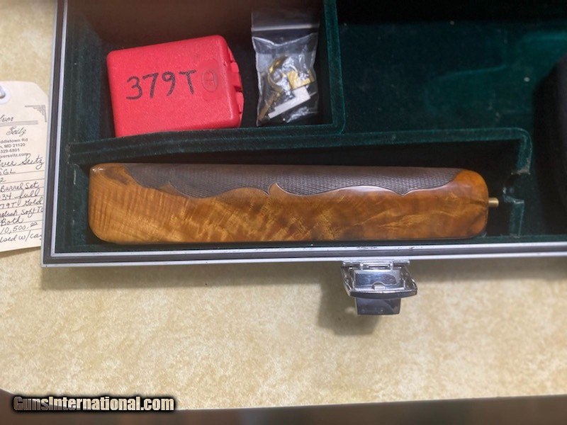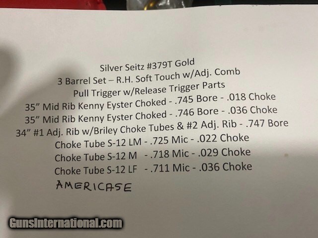 Description: This is a Silver Seitz #379 gold trap gun with a 34" adjustable rib barrel. The reciever is titanium and stock has a LOP 14 5/16. It has a soft touch and a adjustable comb. It comes with Briley chokes. It has 2 other barrels that come with the gun for free. They are both 35" barrels and are ported. It has a pull and a release trigger for it. Buyer pays shipping. SOLD Shotgun Gauge: 12 Gauge Manufacturer: Silver Seitz Model: Gold Barrel Length: 34” Condition: 95% LOP: 14 5/16 |