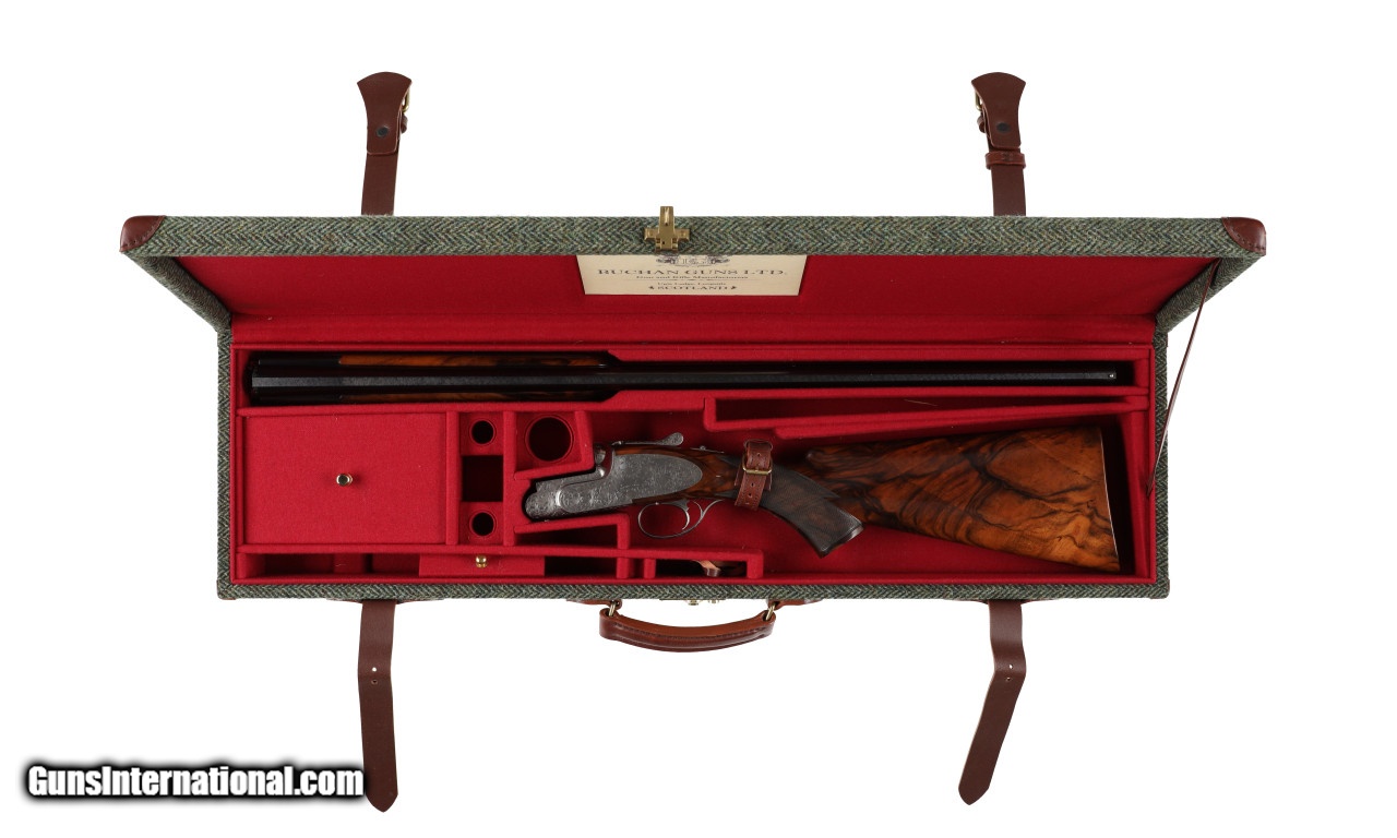 Description: Balmoral Sidelock, an O/U tour de force engraved exclusively by the Italian Master, Stefano Pedretti. The Balmoral embodies a classic look with coin-finished side-plates in any style. On request, we can also offer color case hardening. Only approx 8 Balmoral examples will be made per year, a very special limited bespoke sporting shotgun. The balance & dynamic handling can only be described as extraordinary, one truly must experience it first hand to comprehend the veracity of this claim. One-hundred-percent made in the Buchan facility in Aberdeenshire, Scotland, apart from the chopper lump barrels. Former President of G&H Guy Bignell visited the Buchan factory and confirms every single piece of machinery is there to make everything in-house, the quality is extraordinary. Buchan’s competitors inhabit the rarified universe of Fabbri, F.lli. Rizzini, Hartmann & Weiss, Purdey, Boss & Co, Holland & Holland and William & Son. SOLD Manufacturer: Buchan Model: Balmoral Caliber Info: 12 Gauge Chambers: 3 Ejectors: Yes Condition: New Metal Condition: New Barrels: 29 1/2 Action: Sidelock Triggers: Single Gauge Info: 12 Gauge Stock Comb: 1 1/2 Stock Heel: 2 3/8 Stock Cast: Off Fore End: Checkered LOP: 14 3/4 Rib: Solid Chokes: M/F Case: Maker's Hard Plastic |