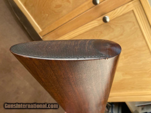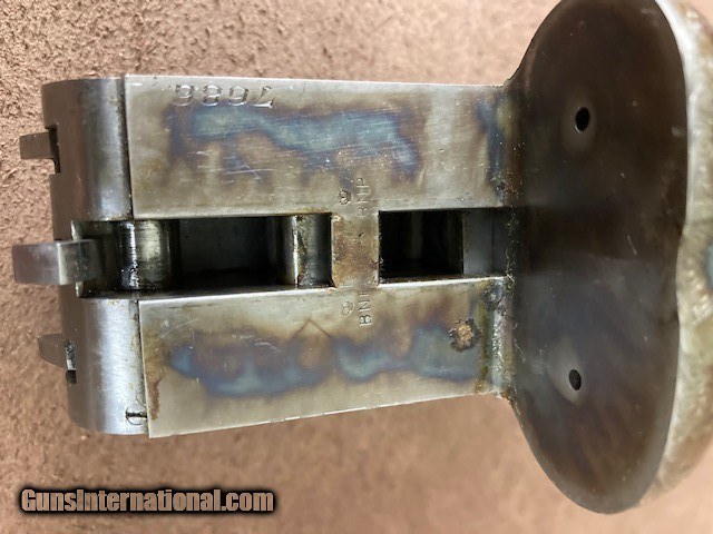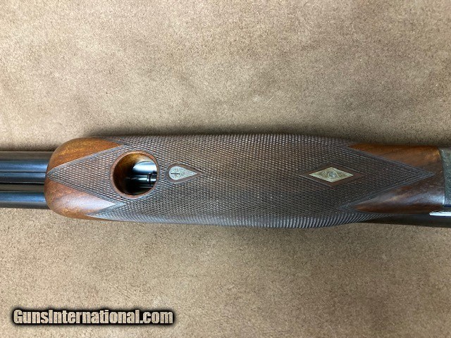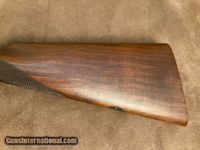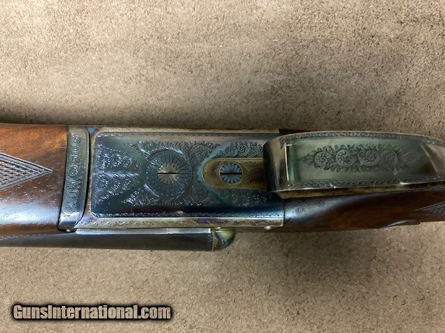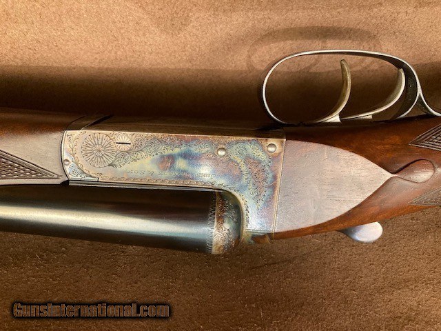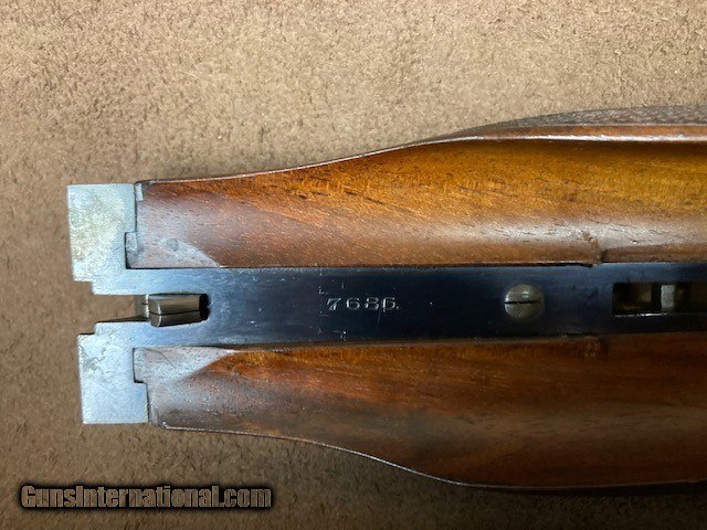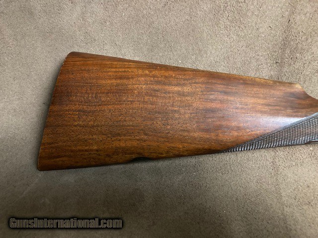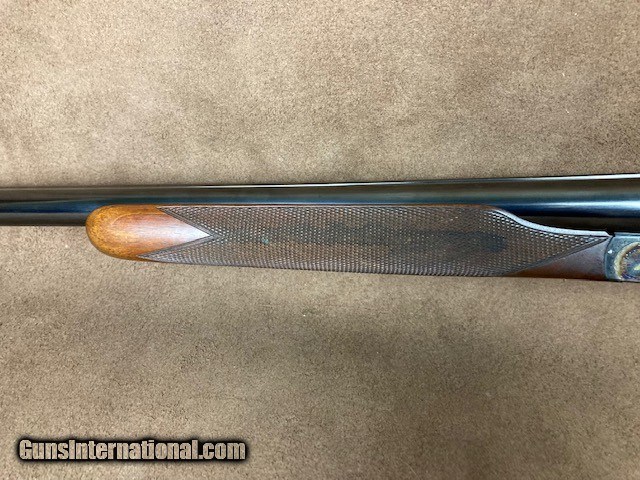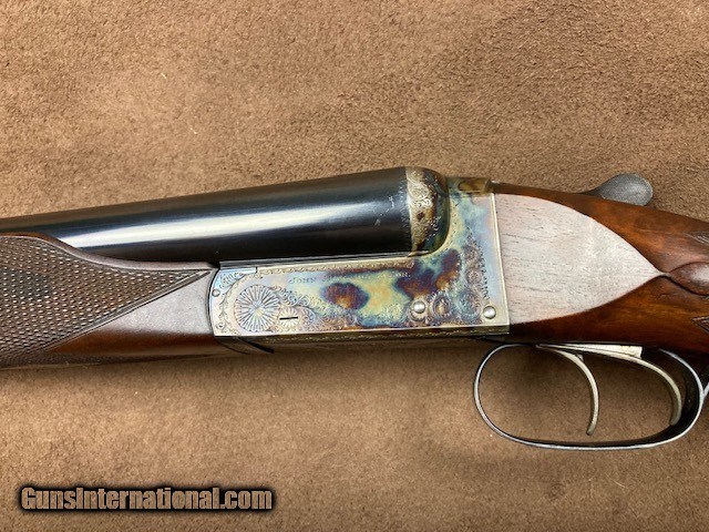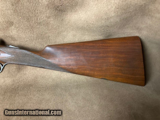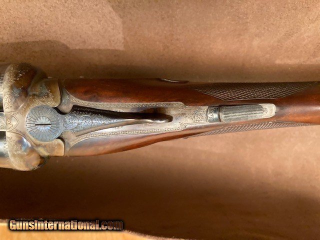Description: JOHN DICKSON & SON BISPOKE SCOTTISH BEST SIDE BY SIDE SHOTGUN 12 BORE. CASE HARDENED BOX LOCK WITH GOLD LEAF WASH INTERNALS, EJECTORS AND A UNIQUE BEAVER TAIL FOREGUARD. COPIES OF JOHN DICKSON & SON LEDGER WITH ORIGIONAL ORDER UPON REQUEST. FRONT TRIGGER IS 14 1/4 INCH LENGTH OF PULL REAR TRIGGER IS 13 1/4 INCH LENGTH OF PULL 1 3/4 DROP AT CHOME 2 1/4 DROP AT HEEL CHOKE ON LEFT BARREL IS .705 CHOKE ON RIGHT BARREL IS .720 OVERALL WEIGHT 7 LBS SOLD Shotgun Gauge: 12 Gauge Manufacturer: John Dickson & Son Model: Box Lock |