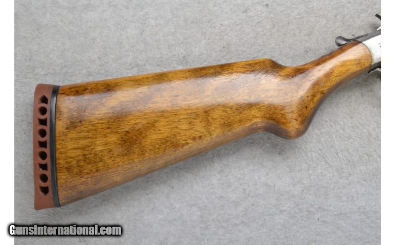 Description: This Newport Model WN is a right hand single-shot shotgun in 20 gauge. The 28 inch fixed modified choke barrel has a 2 3/4 inch chamber and a brass bead front sight. The forearm is smooth hardwood. The butt stock is a smooth grip hardwood pistol grip with a brown Redhead rubber butt pad. 20 Gauge SOLD Chambers: 2.75 inches Metal Condition: Good with handling marks and mild freckling Wood Condition: "Very good, possibly refinished Bore Condition: Good Barrels: 28 inches Stock Dimensions: LOP 14.75 inches Fore End: Smooth Hardwood Butt Pad: Brown Redhead rubber butt pad Weight: 6.5 lbs Sights: Brass bead front sight Chokes: Fixed modified choke Item Location: Richfield, WI |