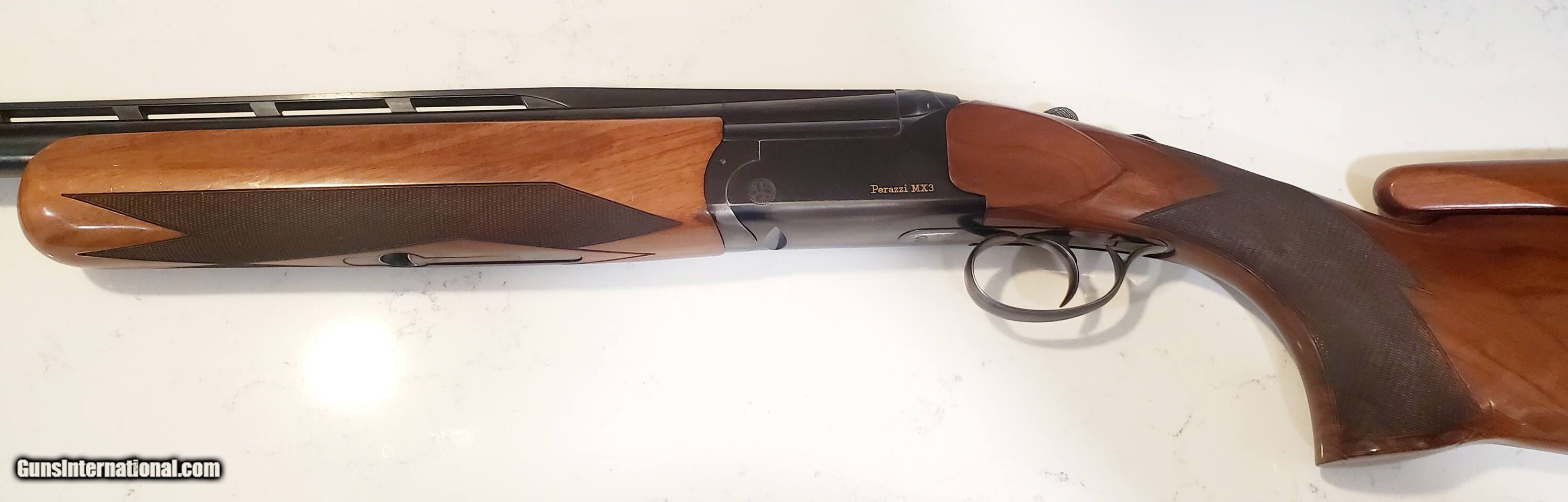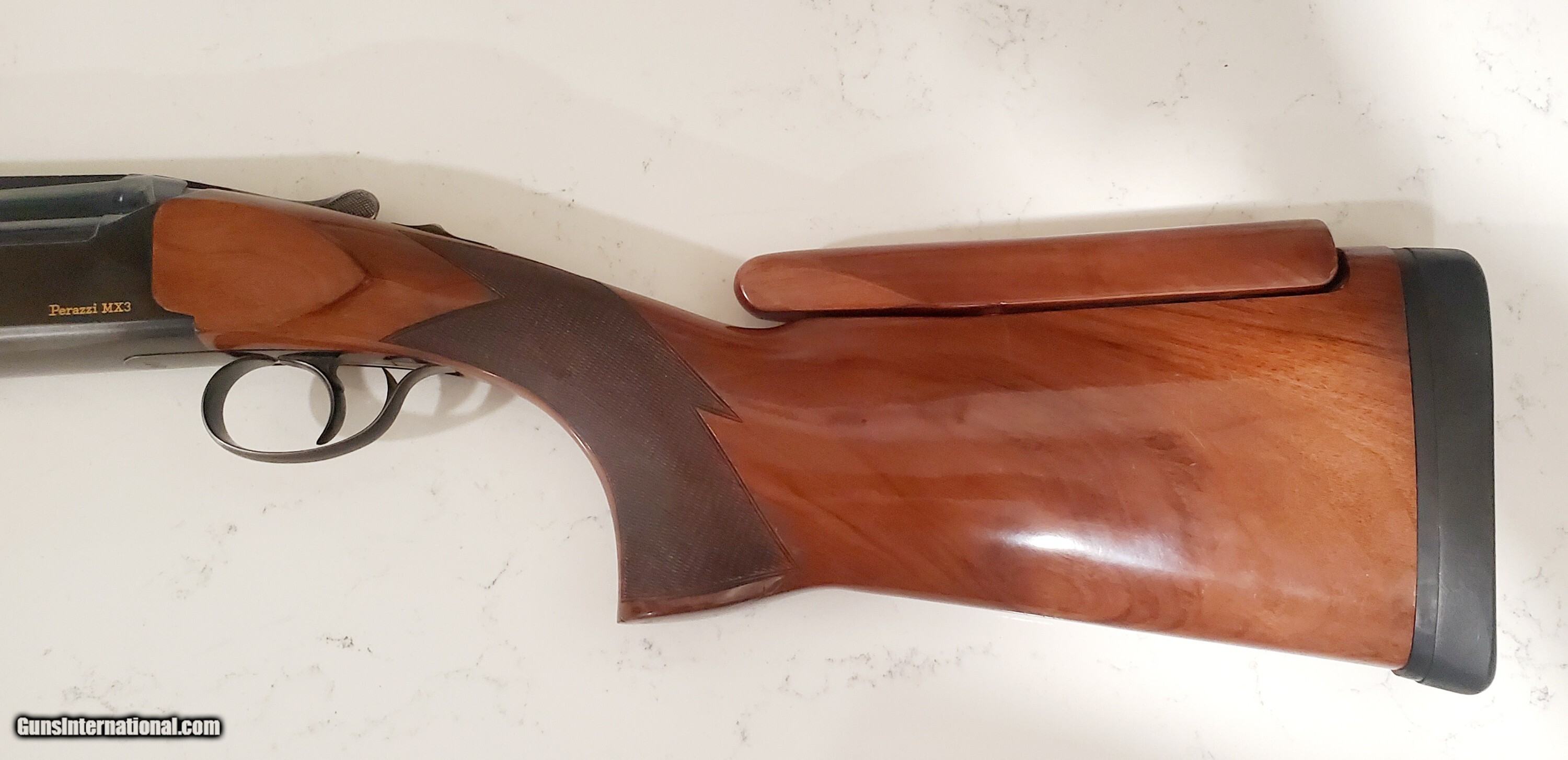 Description: EDIT: 32" O/U barrel has been sold. Selling a nice Perazzi MX3 with 34" top single barrel fixed full choke. All numbers match except the wood. Stock has a factory Perazzi 4 way adjustable comb and 14 1/4" LOP w/ 1" pad. Neutral cast and no palm swell. There will need a little relief removed in the stock to the right side of the top lever as the lever catches on the wood slightly of opened/closed overly gentle. Bluing wear under the receiver on the edge and bottom of trigger guard shows some wear. Pull/pull trigger top first. Top lever is far to the right and locks up tight indicating a recent locking block installation. Comes with a spare parts kit but is missing the springs for the firing pins. Ships in an aluminum combo case. Shotgun Gauge: 12 Gauge Manufacturer: Perazzi Model: MX3 Price: $3,000.00 Shipping: $75.00 Contact Seller |