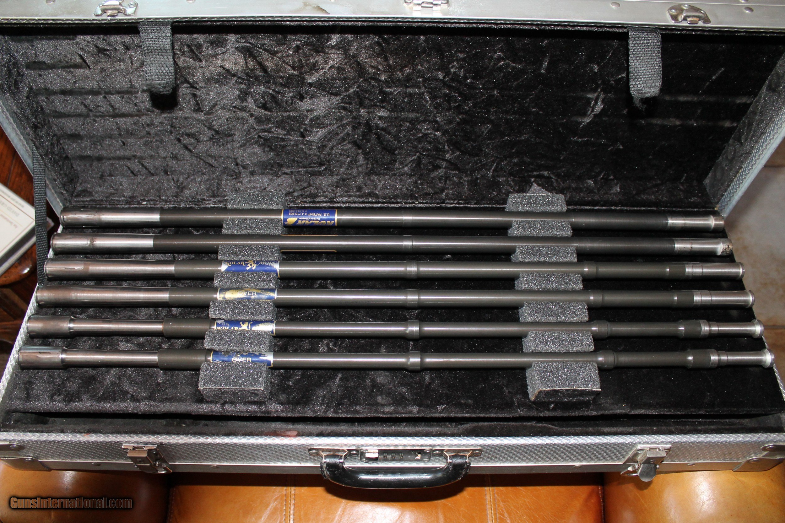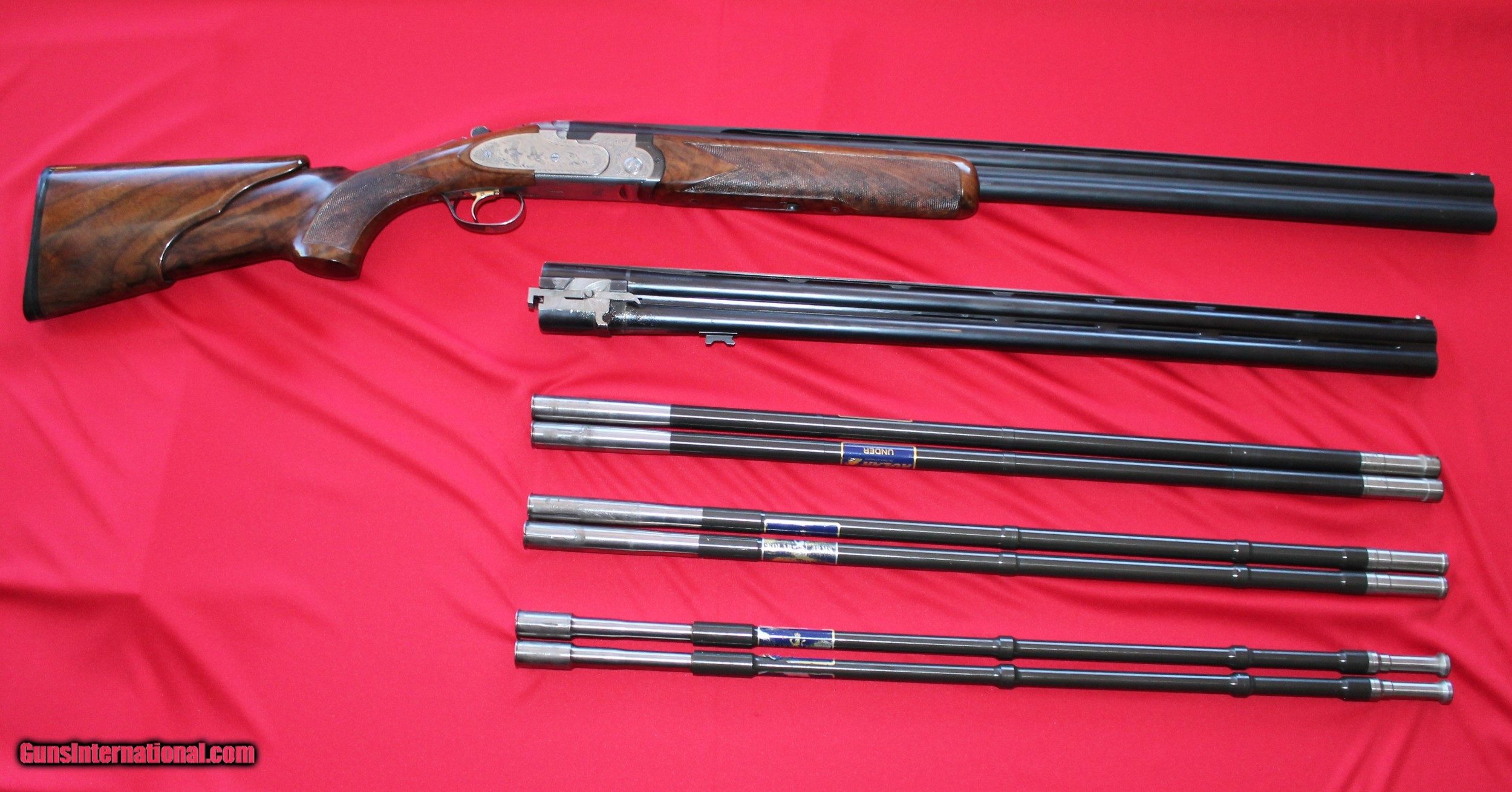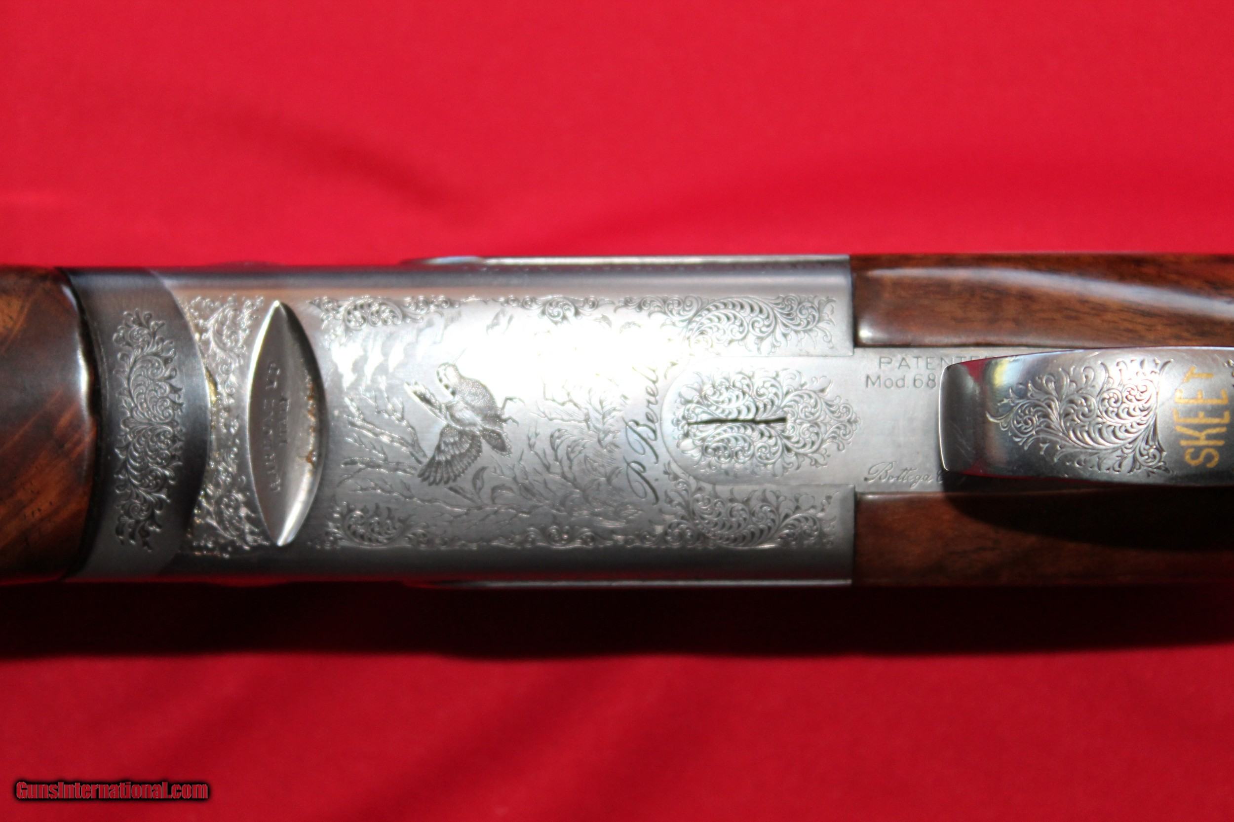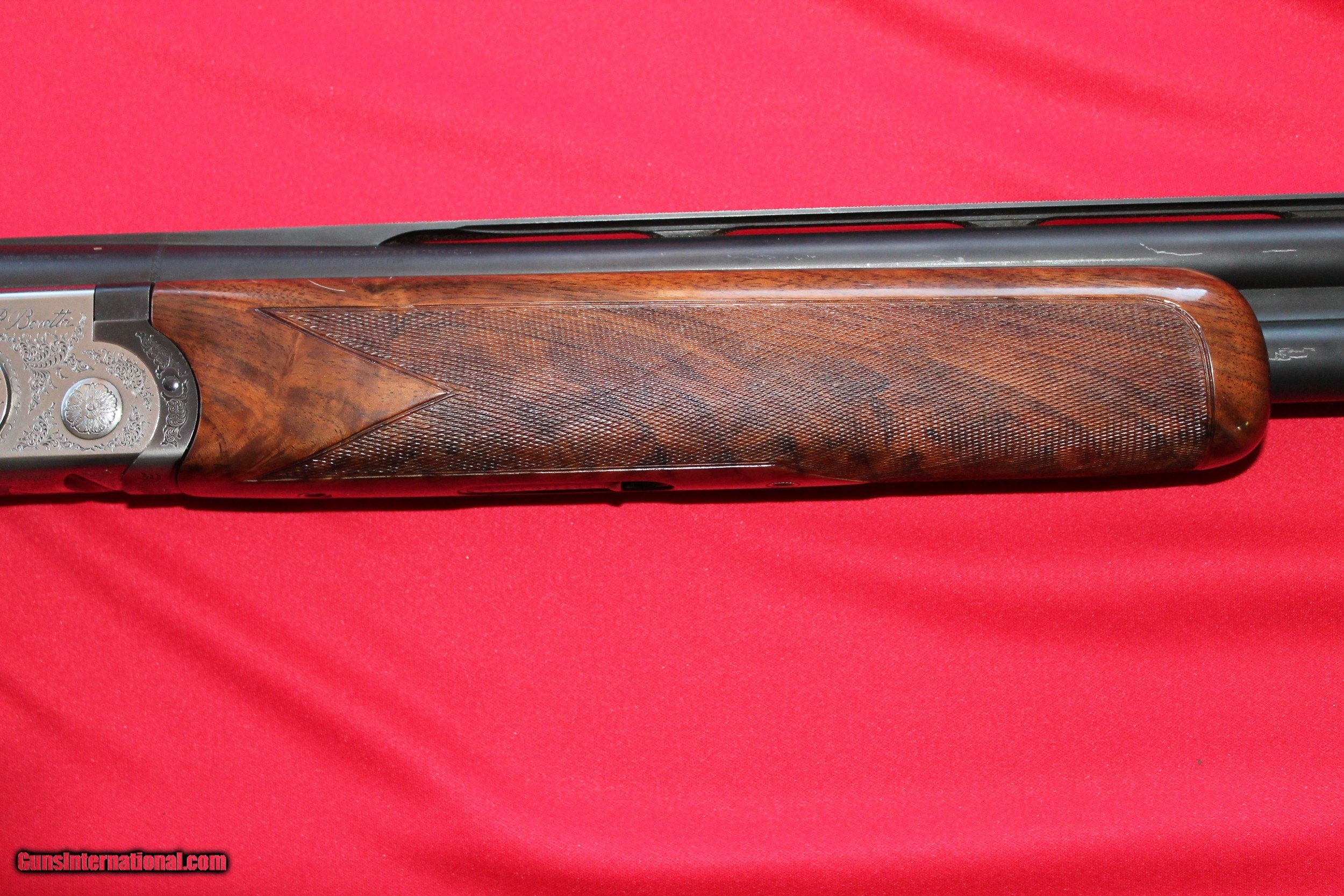 Description: Beretta 687 EELL: 30" sporting barrels with Briley chokes. 28" Skeet barrels with full set of Kolar tuber (20/28/410). Skeet chokes are fixed. Includes Americase for skeet barrels and tubes. Gun is excellent condtion both mechanically and in appearance. Stock is is made by JS Aircushion in Azuza, CA. Demension are LOP: 14 3/8" (adjustable), Drop at comb: 1 7/16", Drop at heel 2 1/4". Top lever is to the right of center. SOLD |