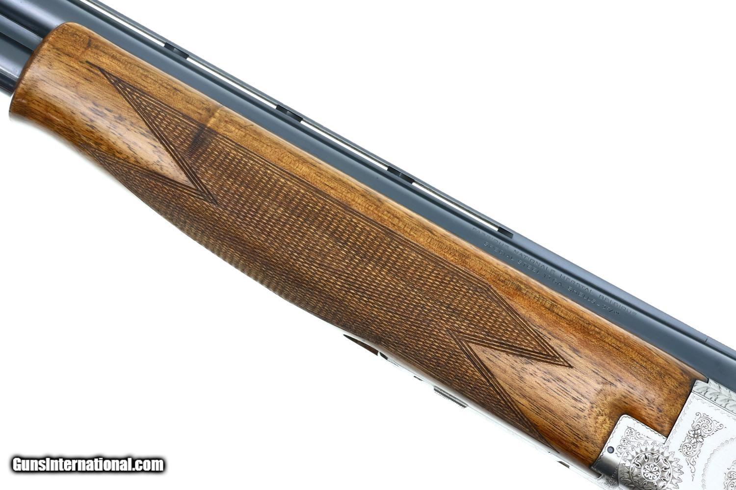 Attractive, Factory Engraved Fabrique Nationale B25 12 gauge Superposed Shotgun F/M with Coin Finish, B1 Pattern Rosettes, Schnabel forend and "Perch Belly" straight grip buttstock. A very high quality shotgun with just enough wear to take on your next hunt!