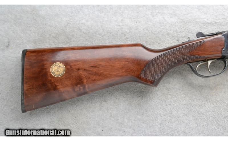 Description: This Amantino Model Uplander is a side by side shotgun in 12 Ga. It has 28 inch barrel with extractors and a solid rib. A brass bead front sight. With 3 inch chambers it has fixed Full and Modified chokes. Double Triggers. The butt stock is a checkered grip walnut pistol grip. The forearm is a checkered grip walnut beavertail. 12 Gauge SOLD Chambers: 3 inch. Metal Condition: Good. Wood Condition: Good. Some light handling marks. Bore Condition: "Clean, bright and shiny. Barrels: 28 inch barrel with extractors and a solid rib. Triggers: Double. Stock Dimensions: LOP 14 1/2 inches. Fore End: Checkered grip walnut beavertail. Butt Pad: Grooved black plate. Weight: 6 lb. 14 oz. Sights: Brass bead front. Chokes: Fixed Full and Modified chokes. Item Location: Richfield, WI |