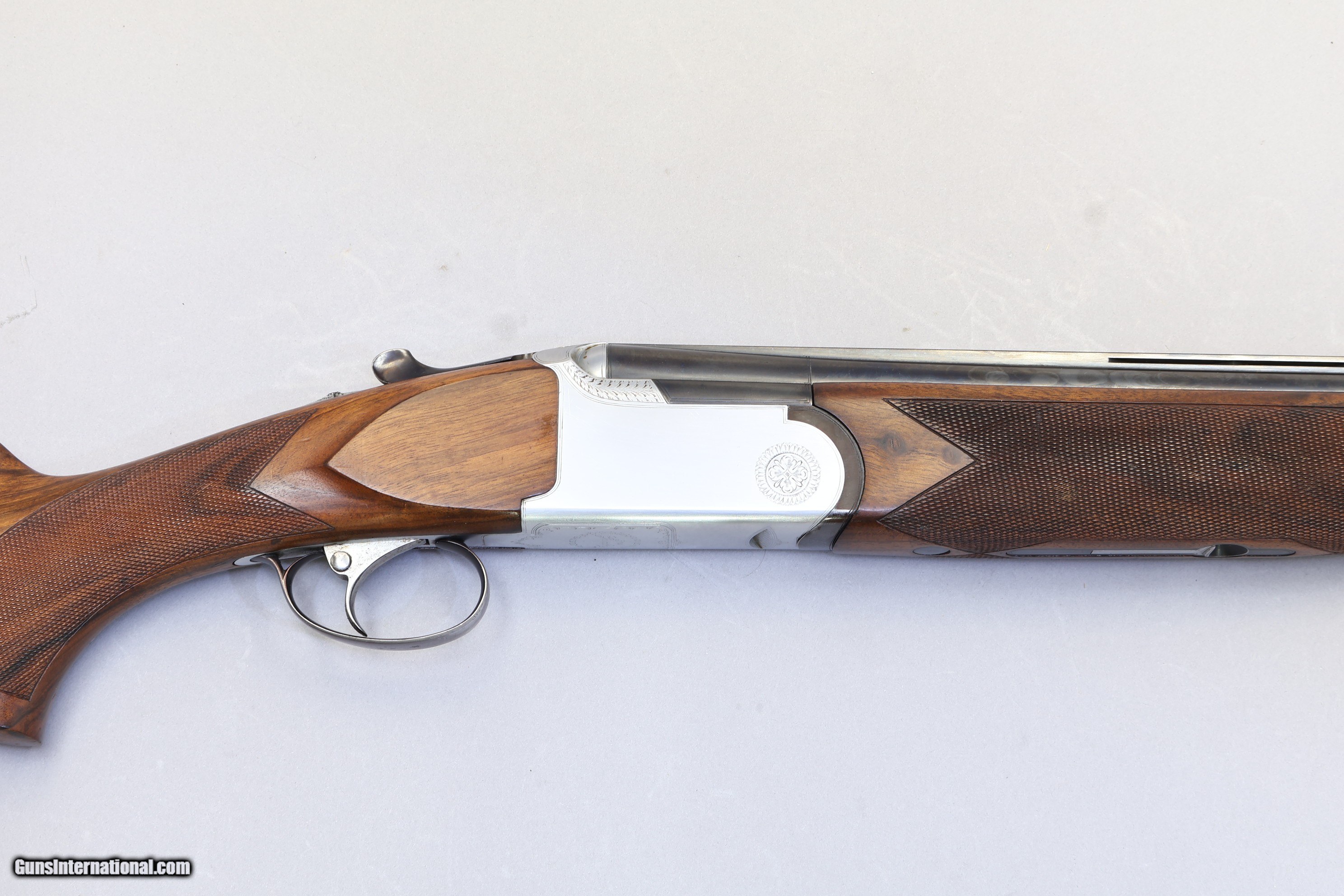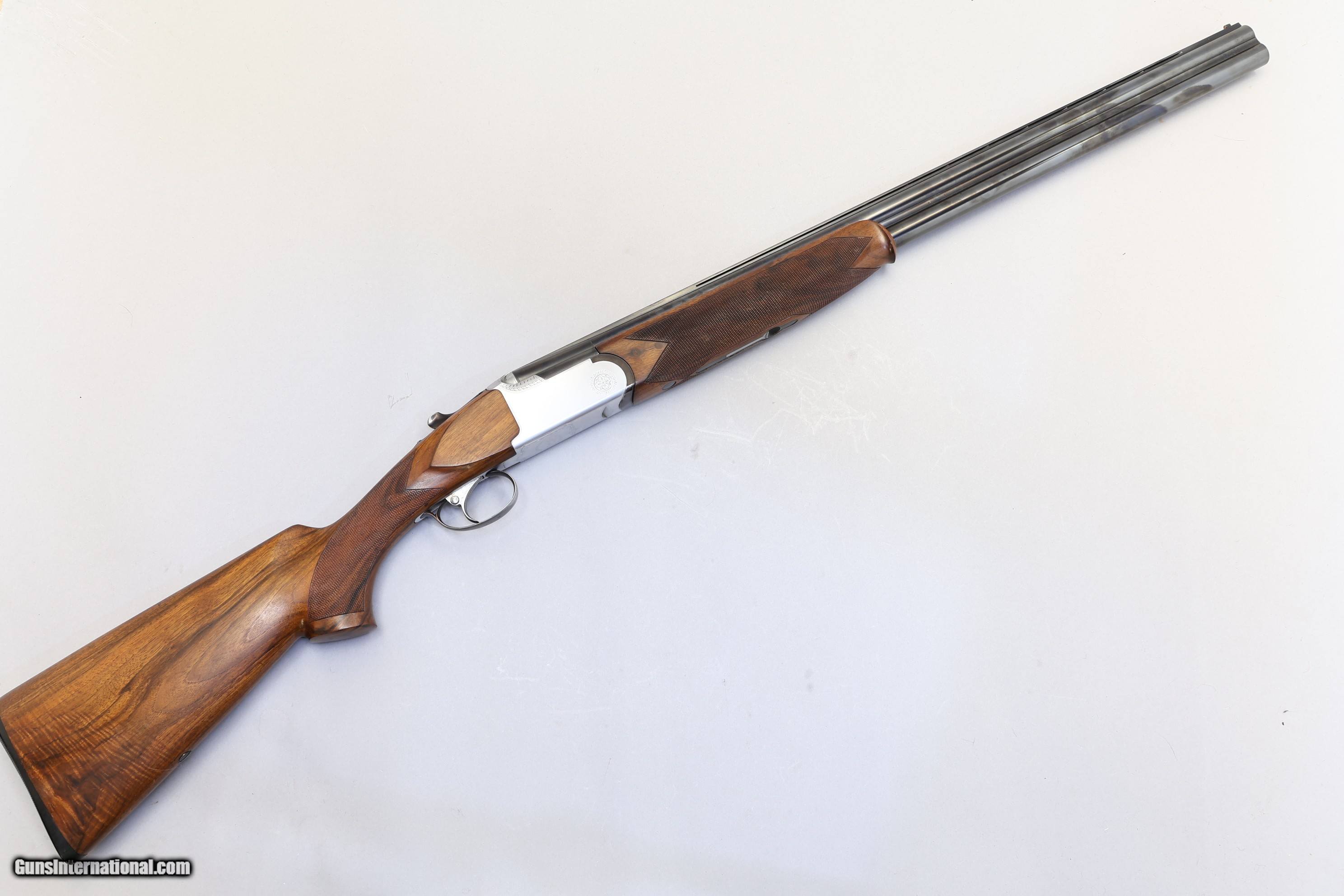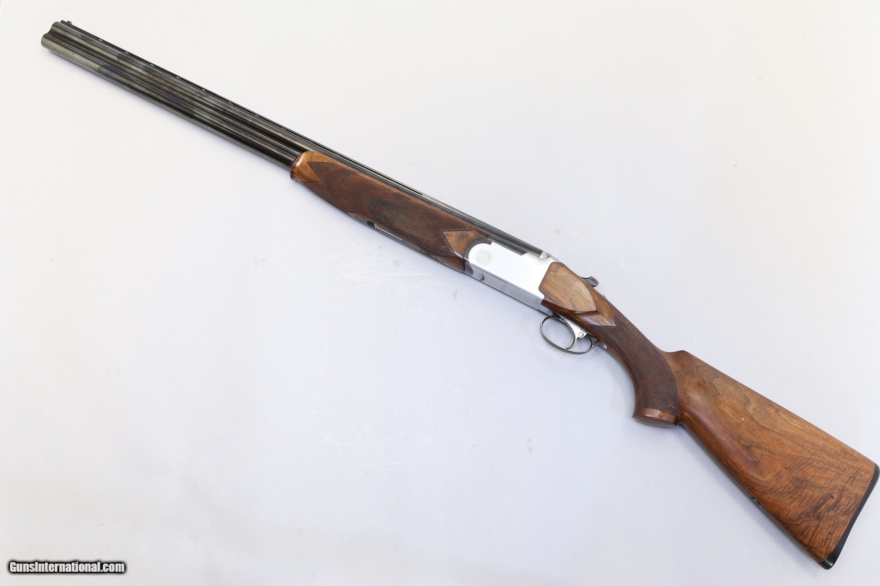 Description: F.lli Gamba Game Deluxe Over/Under Boxlock Ejector, 12 Ga, 28" Barrels 2 ¾" Chambers | Fixed choke B: SK / U: Mod | Overall Length 45 1/4" | Excellent Condition | No Case F.lli Gamba Game Deluxe Over/Under Boxlock Ejector, 12 Ga, 28" Barrels is a classic Italian-made field gun built around a robust Over/Under boxlock action with ejectors and a ventilated rib. It features a wooden stock with a pistol grip and a right-hand cast, with a trigger-integrated barrel selector for precise control in the field. The fixed choke arrangement on the two barrels provides versatility for a range of field conditions. This specific example, produced in 1983 in Italy, demonstrates exceptional condition with amber-gold wood and only a few surface marks and light dents; checkering remains sharp. It includes the original F.lli Gamba factory butt plate which retains its sharp lines for grip. The barrels are near pristine and equipped with a red fiber optic bead sight. The receiver is clean and simple, and the break action is smooth with ejectors firing reliably. LOP 14 1/8", LOP to Wood 13 3/8", Cast Right; DAC 1 1/2", DAH 2 1/4", Stock: Pistol Grip, Palm Swell: No. Country of Make: Italy; Year of Make: 1983; Weight 7 2/5 lbs; License Needed: FFL.