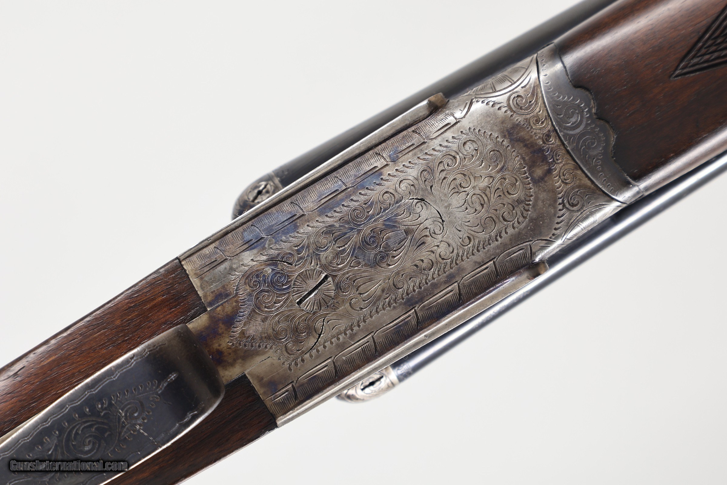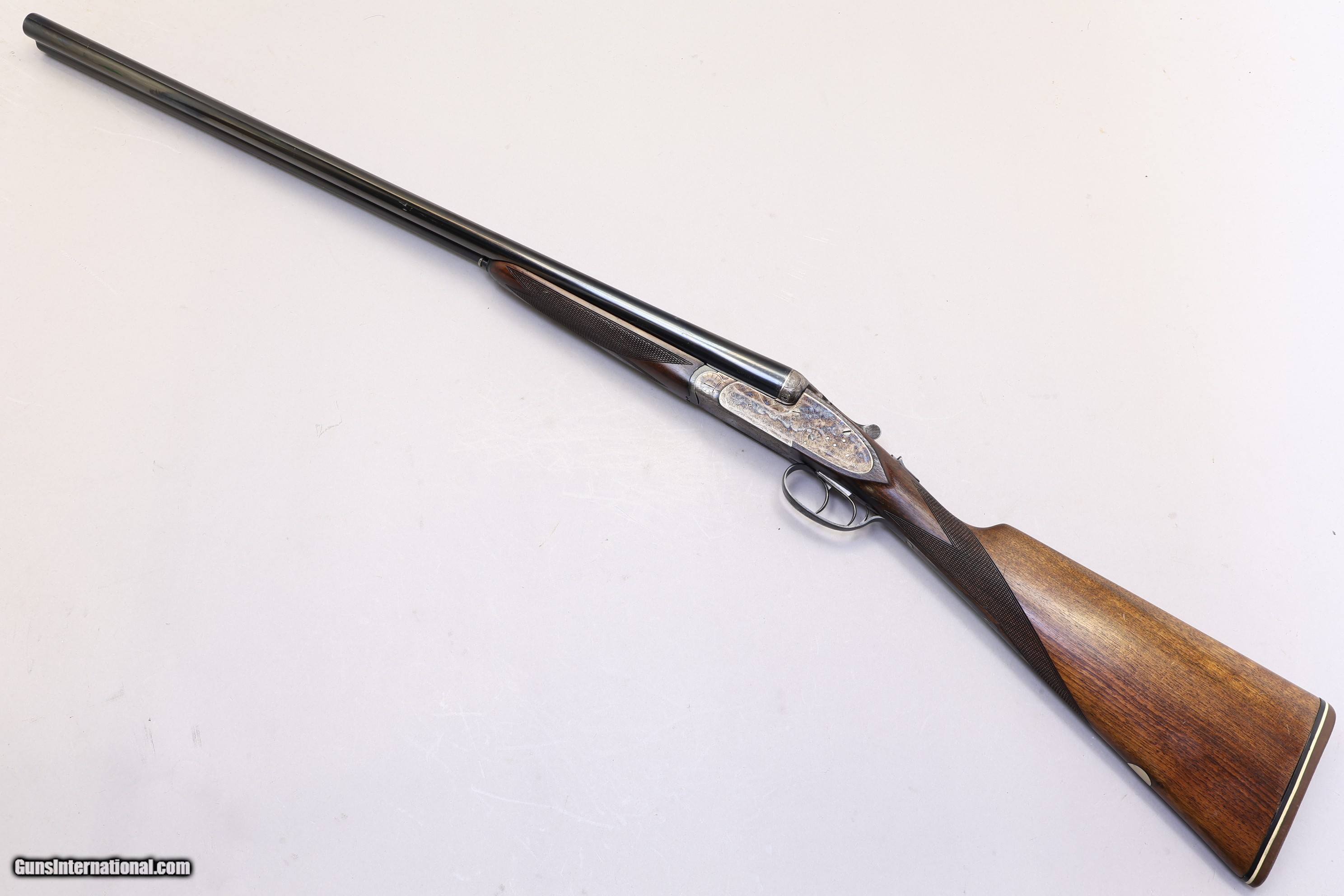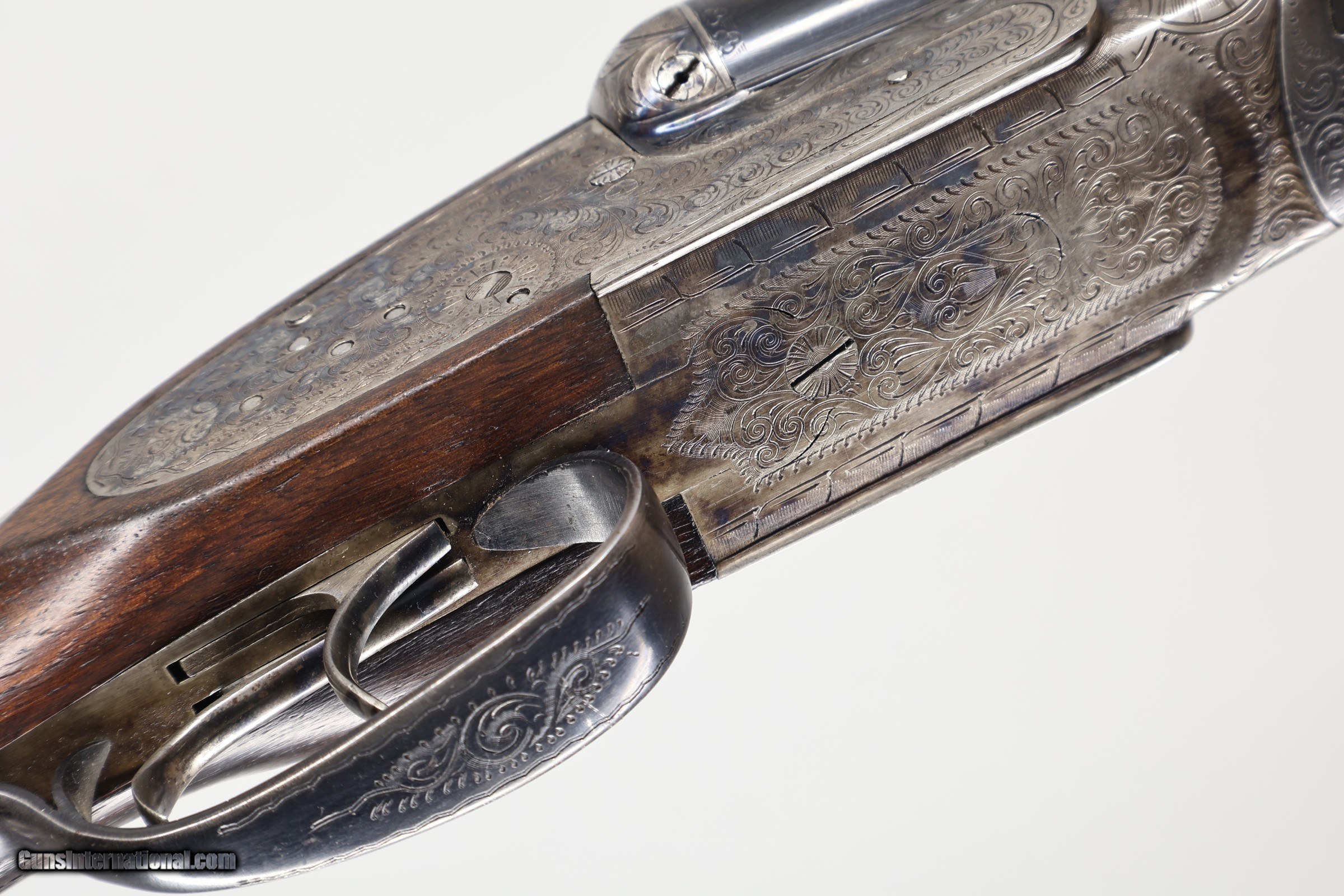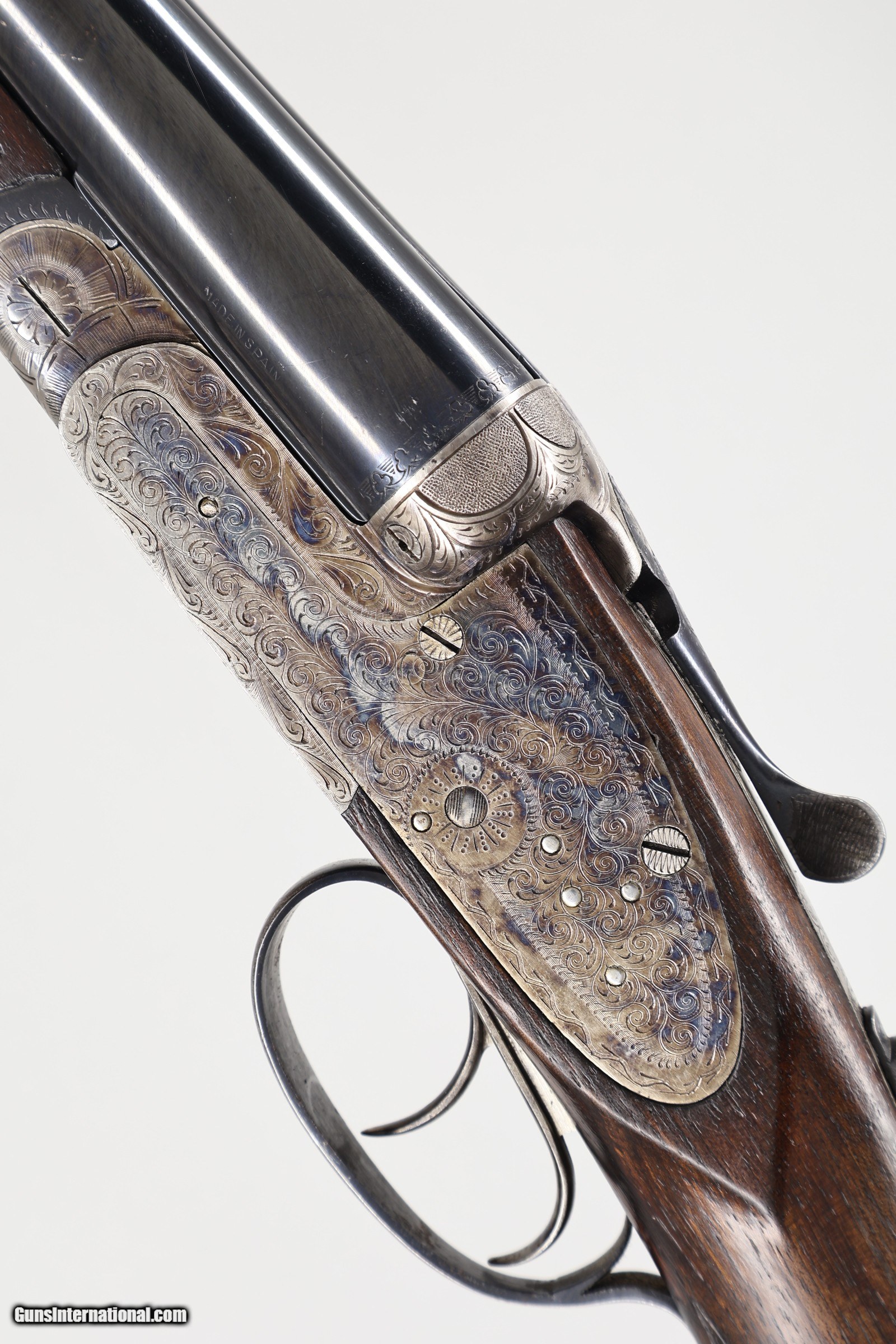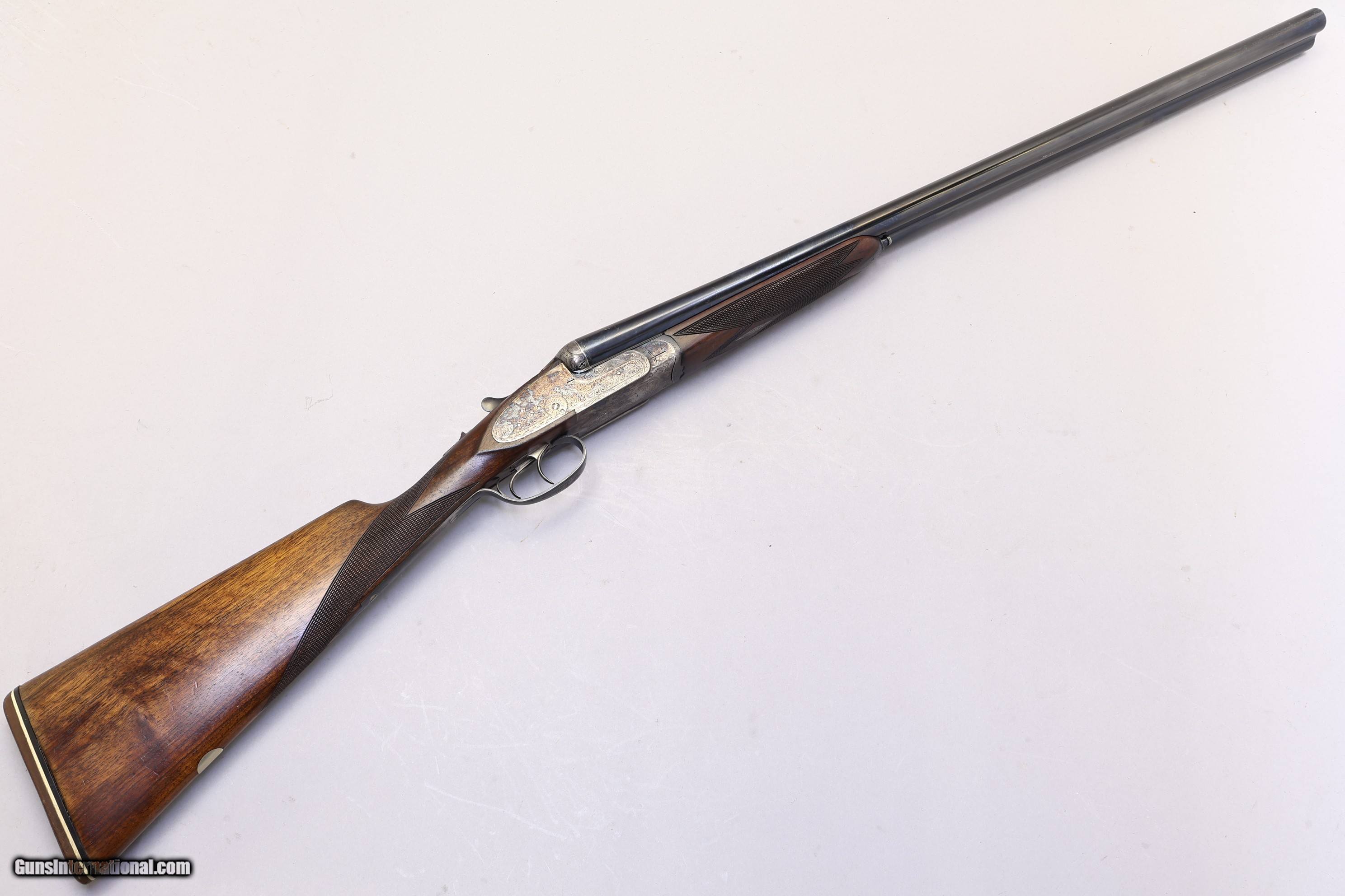 Description: 2 3/4" Chambers | Fixed IM & Full | Very Good Condition This Sideplate Side by Side in 12 Ga is a Spanish-made shotgun built with solid craftsmanship and a classic profile. It has a wood Straight English stock and a smoothbore barrel setup designed for reliable performance. The solid rib gives a steady sighting plane with a brass bead for a clear view. This example is in very good condition with a receiver that keeps strong case colors and clean engraving. The wood shows only light handling marks, and the barrels hold good bluing with a few small spots of faint corrosion. The action opens a bit stiff but the ejectors work with strong force. Made in 1966 in Spain, it has a neutral cast with comfortable stock dimensions and comes with a fixed choke layout suited for steady shooting.