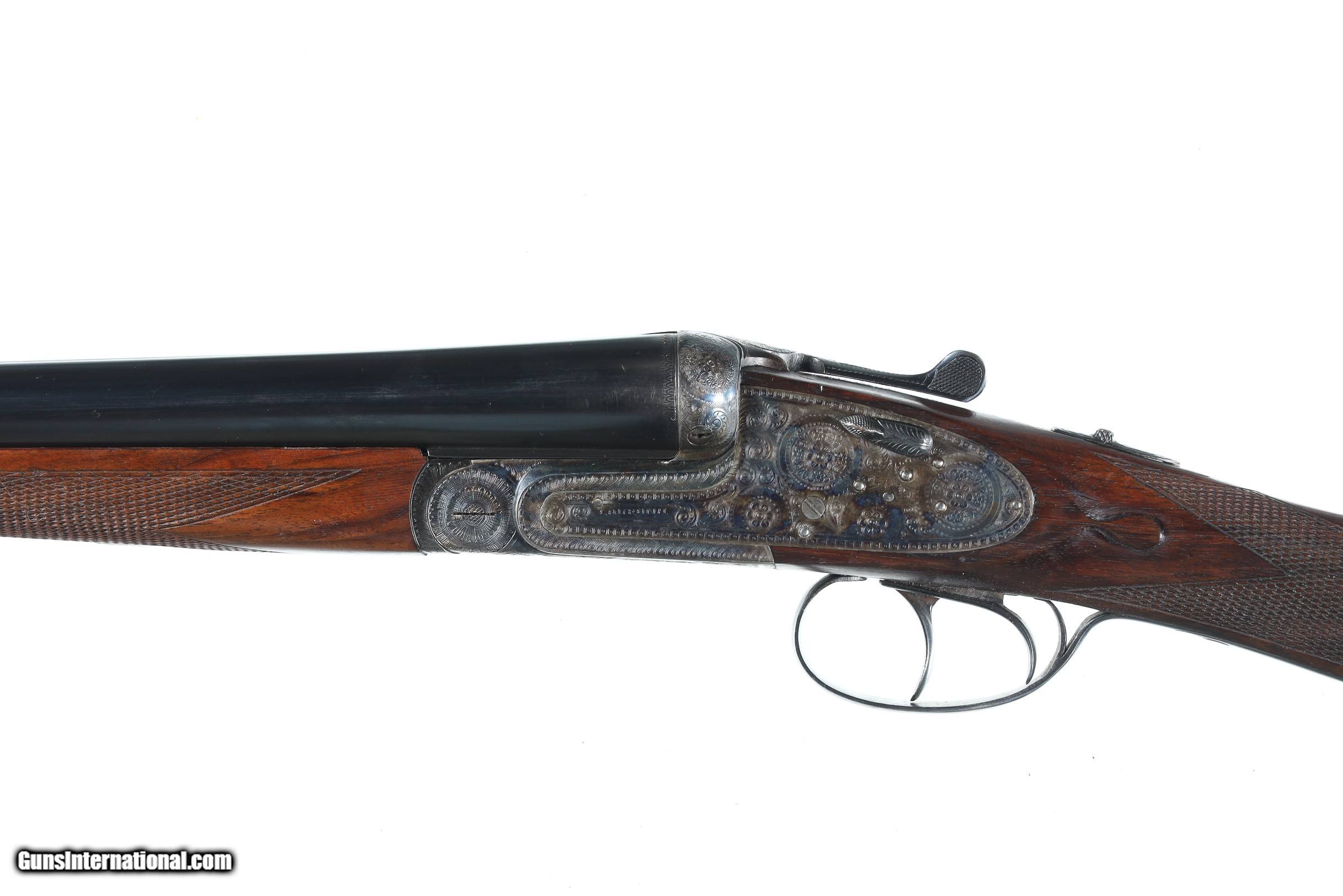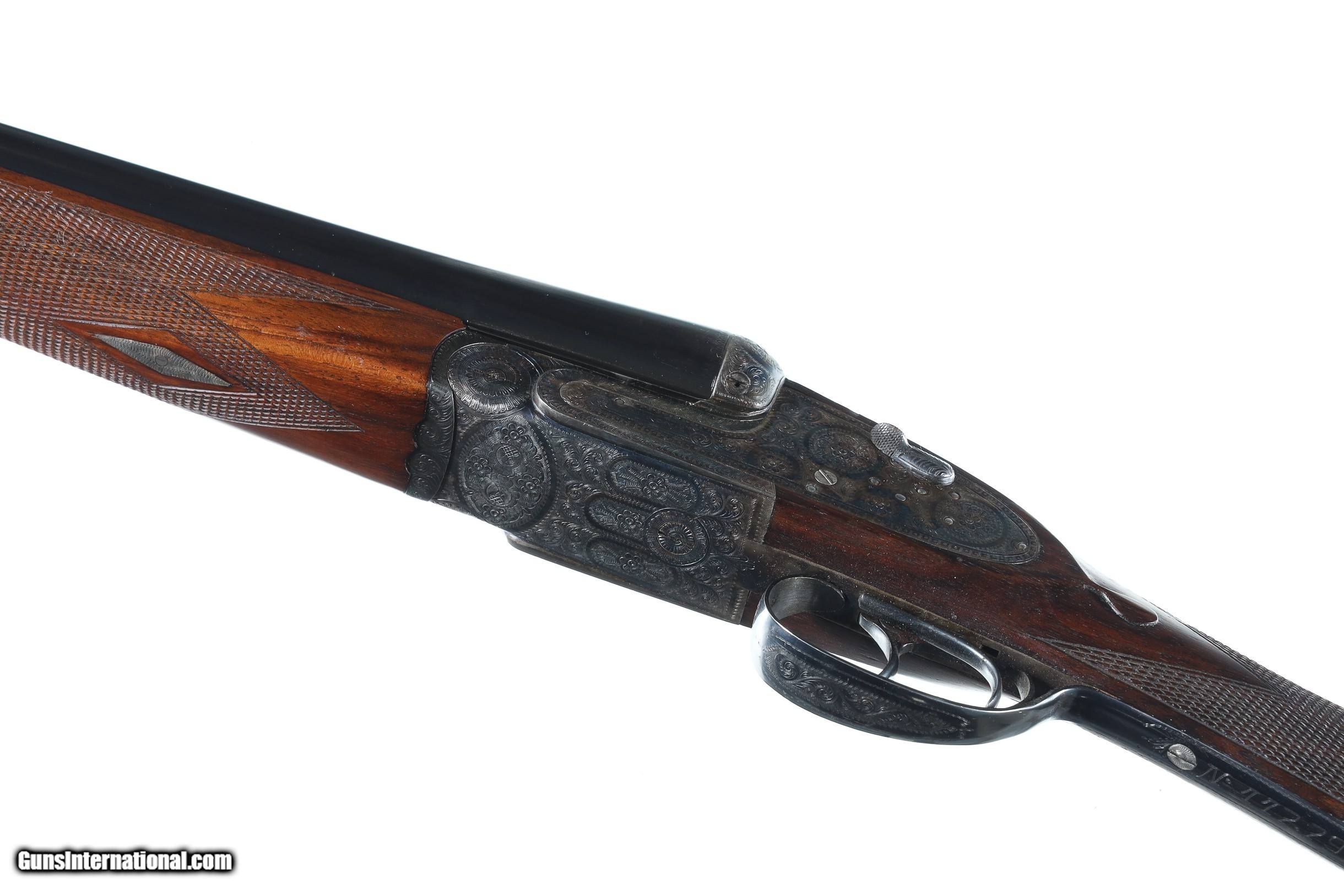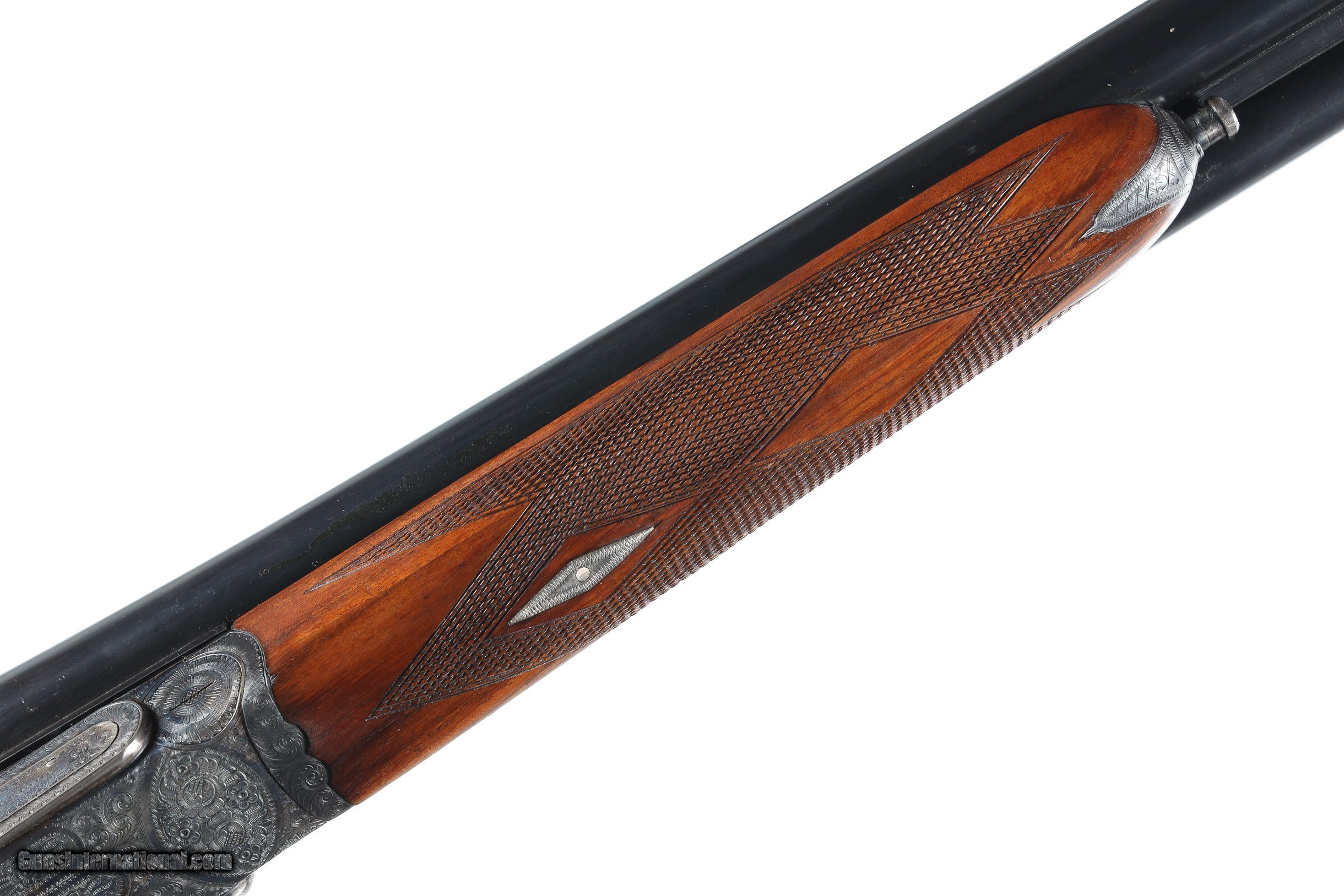 Description: Laurona Detachable sidelock 12 ga double with 3" chambers choked Full & Mod. Vividly case colored 7-pin side locks with quick detachable lever. Oil-finished straight stock with 15 1/2" LOP 2 1/2" DAC 2 1/4" DAH 6 lbs 5oz. Condition: Excellent with 98% blue finish and retaining most all vivid case colors. Stocks are excellent with a few minor impressions. Mechanically excellent. • Free Shipping, No Credit Card Fees. • Lay-a-way available for this firearm. • 1/3 Down, a 1/3 in 30 Days 1/3 in 60 Days. SOLD Curio/Relic: Yes Shotgun Gauge: 12 Gauge Manufacturer: Laurona Model: Sidelock Ejector Serial Number: 117795 Barrel Length: 27 5/8 |