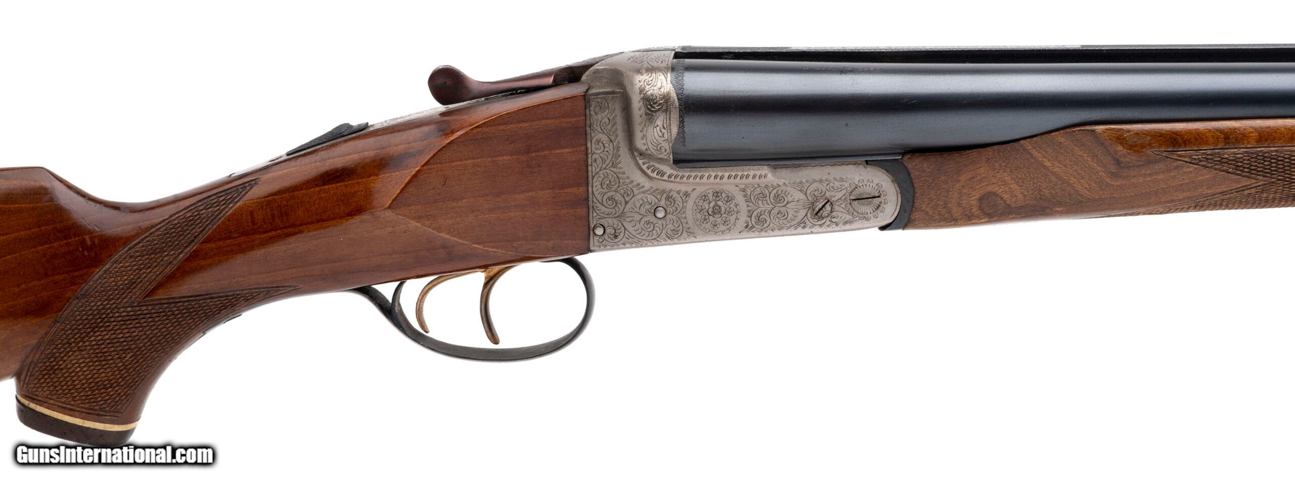 Description: "SN: 77116 made in Spain by Zabala Hermanos. 10 gauge side by side shotgun with 32" barrels, 3 ½" chambers and fixed chokes both barrels Extra Full. Blued barrels, engraved receiver, beavertail forend with inlet bone diamonds and checkered walnut stock with a 14 ½" LOP to the original recoil pad. Overall in very good condition with some light wear and handling marks. Bores are excellent and barrels are tight and on face. Price: $1,195.00 Contact Seller |