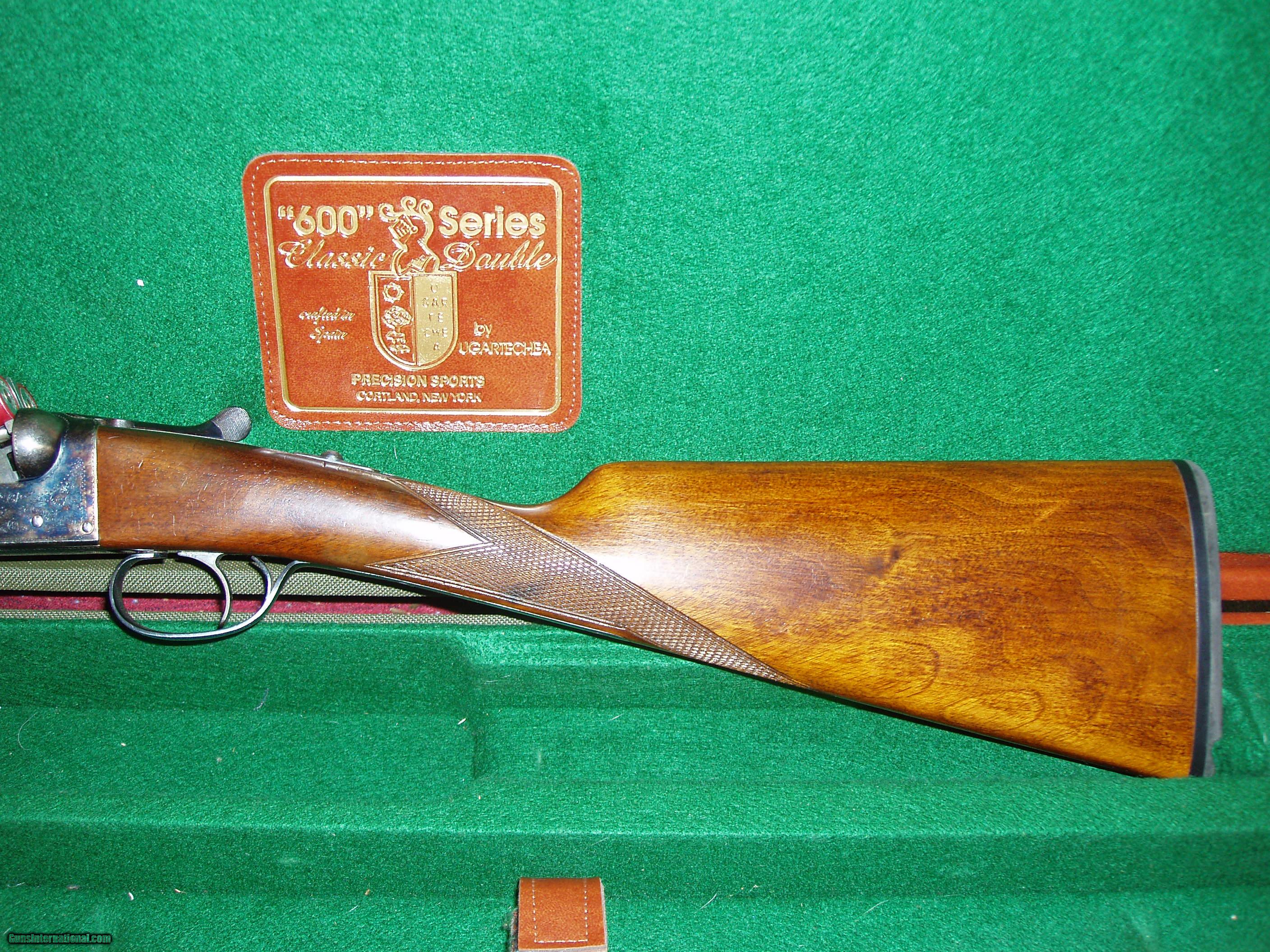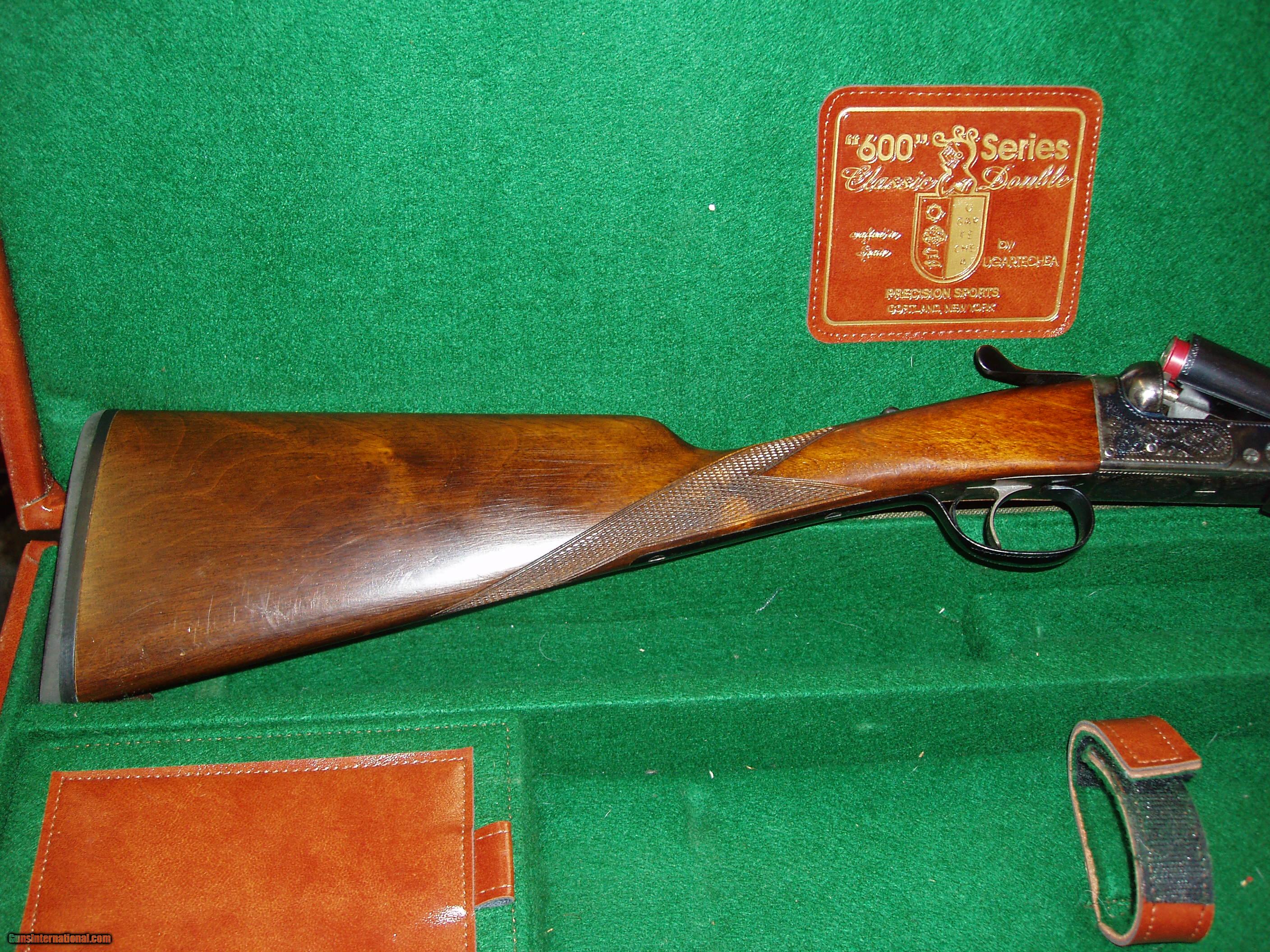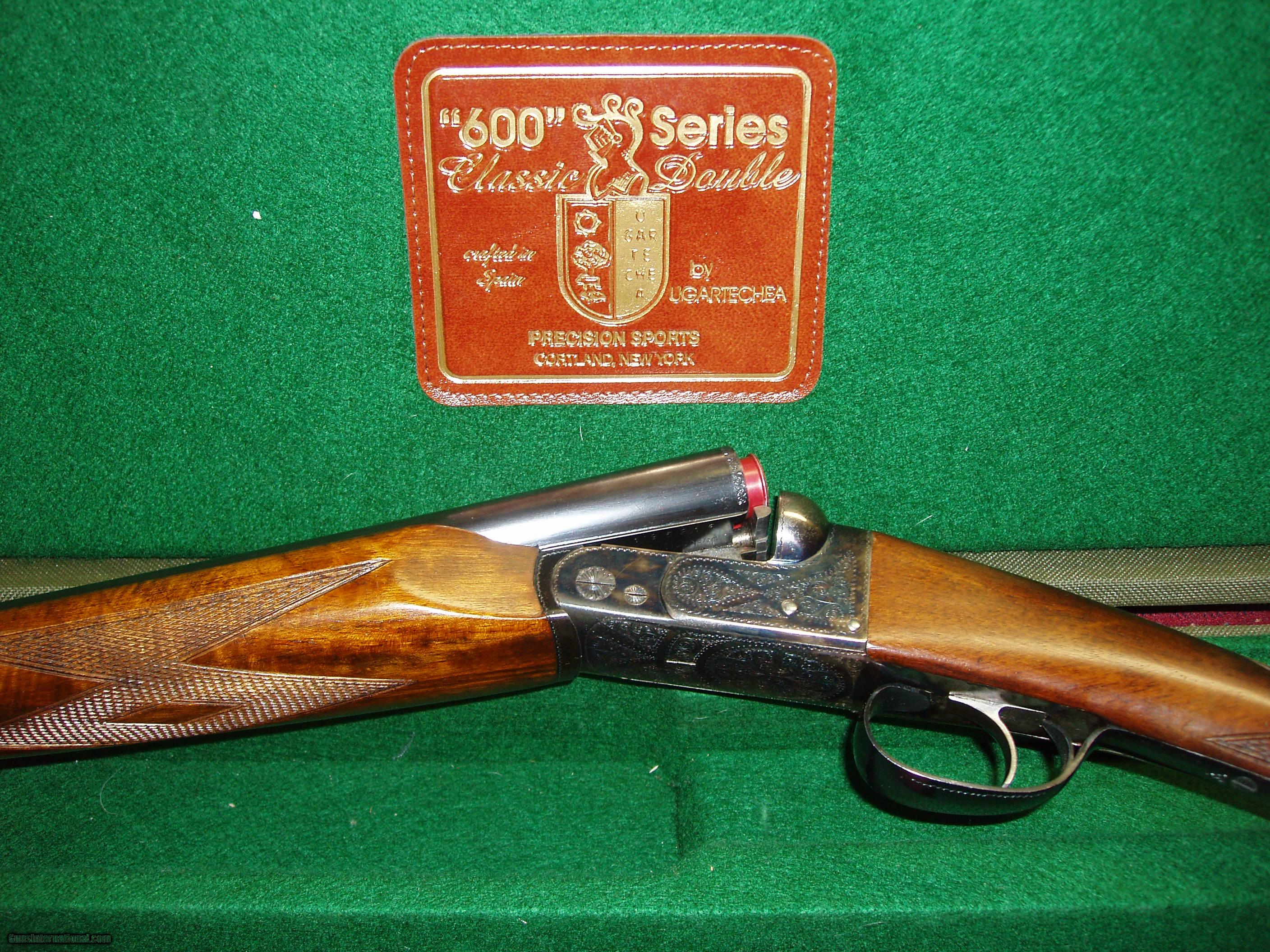 Description: **SALE PENDING:Hard to find 20 ga. Original Bill Hanus Bird Gun in great condition! Very sought after model with straight grip, semi beavertail forearm, Deluxe model with SINGLE TRIGGER and EJECTORS ! This Churchell Ribbed 26" barrels choked SK 1 & SK 2es in the original hard case and is a wonderful shooter . Easy carrying makes an ideal all around upland gun! This gun has been hunted, but has been well cared for.14 1/2" LOPwith thin rubber pad. Part of a family collection that I am selling to settle an estate. There vere very few of these made in 20 ga. and they are seldom encountered. You won't be disappointed! No Trades Thank You. SOLD Manufacturer: Ugartechea Model: Bill Hanus Bird Gun Classic 600 Series Bore: 20 ga. Chambers: 2/34 Ejectors: Yes Condition: Excellent Metal Condition: Excellint Wood Condition: Very Good Bore Condition: excellent Barrels: 26 Barrel Type: Double Action: S X S Triggers: Single Gauge Info: 20 ga Stock: Walnut Stock Dimensions: straight Stock Comb: 1 1/2 Stock Cast: Neutral Fore End: Semi Beavertail Butt Pad: Rubber LOP: 14 1/2 Rib: Churchill Finish: satin Weight: 6 lbs Sights: bead Chokes: Open Choke Left: SK 2 Choke Right: Sk 1 Engraving: light Case: Factory Item Location: NY State |