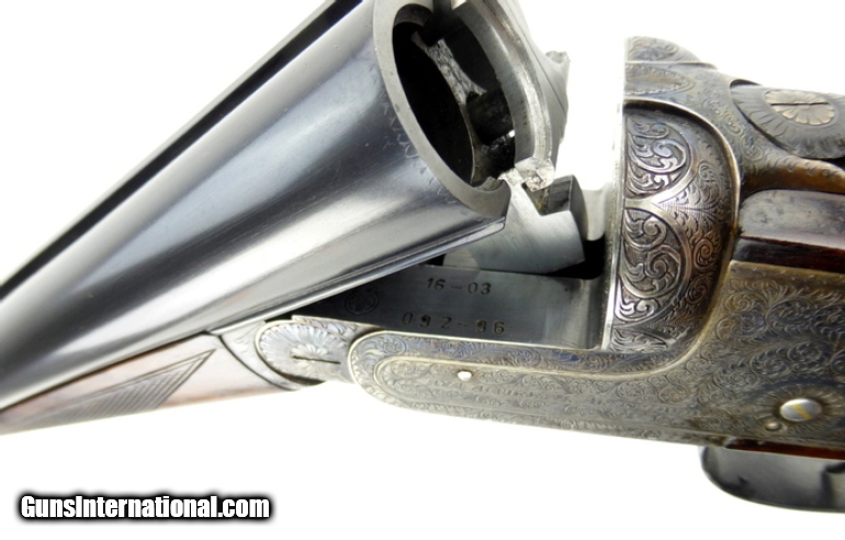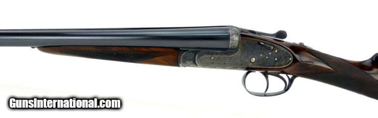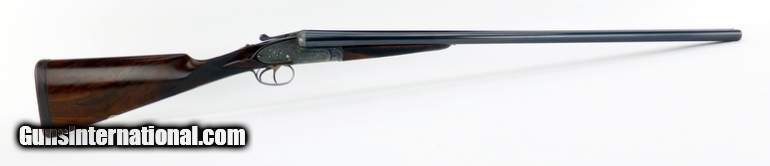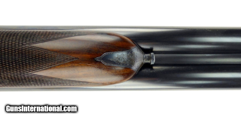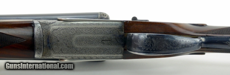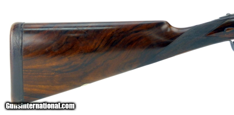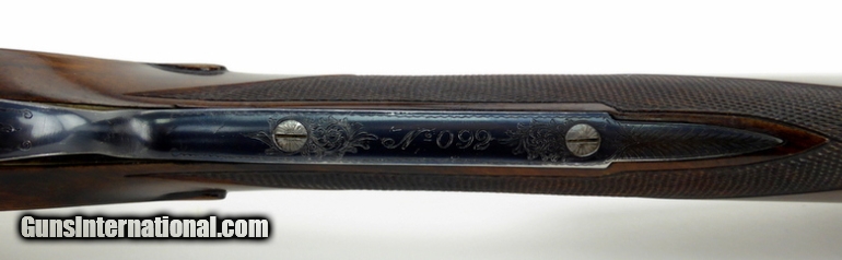 Description: Aguirre & Aranzabal No. 2 12 Gauge shotgun. Spanish made double with scroll engraved hand detachable sidelocks. Has 30” full/modified improved barrels, double trigger with articulating front trigger, cocking indicators and auto ejectors. The straight stock and splinter forend are of nicely figured deluxe walnut, with a leather covered pad. LOP is 15½”. The gun has seen some hunting use, overall very good condition. SOLD |