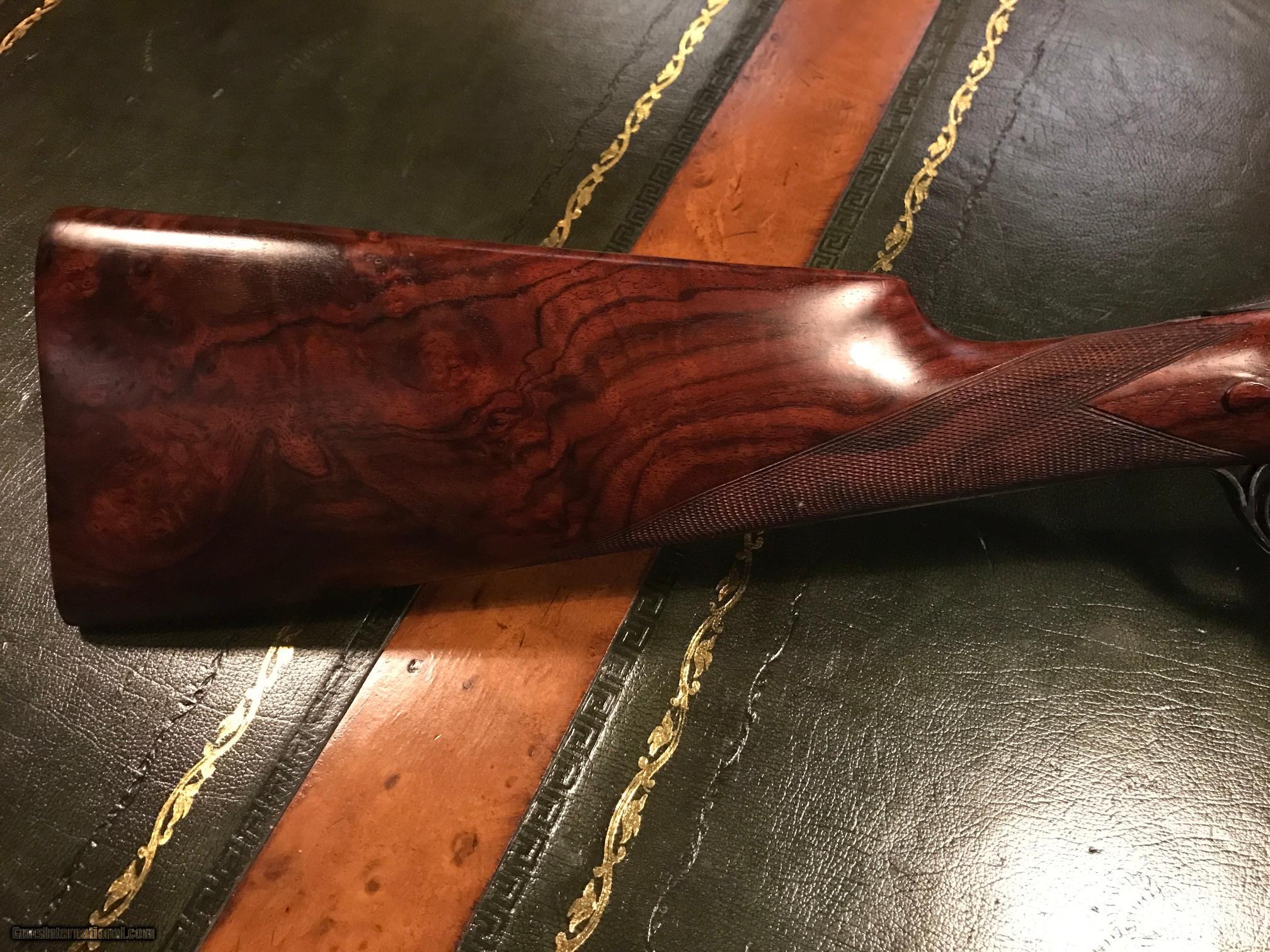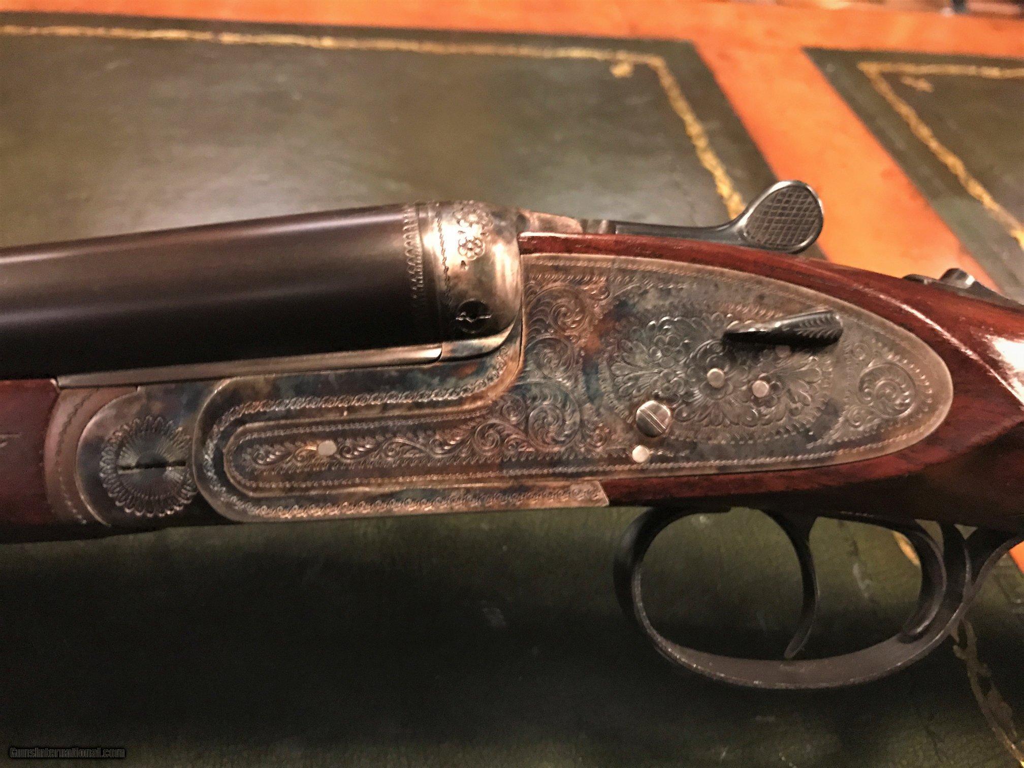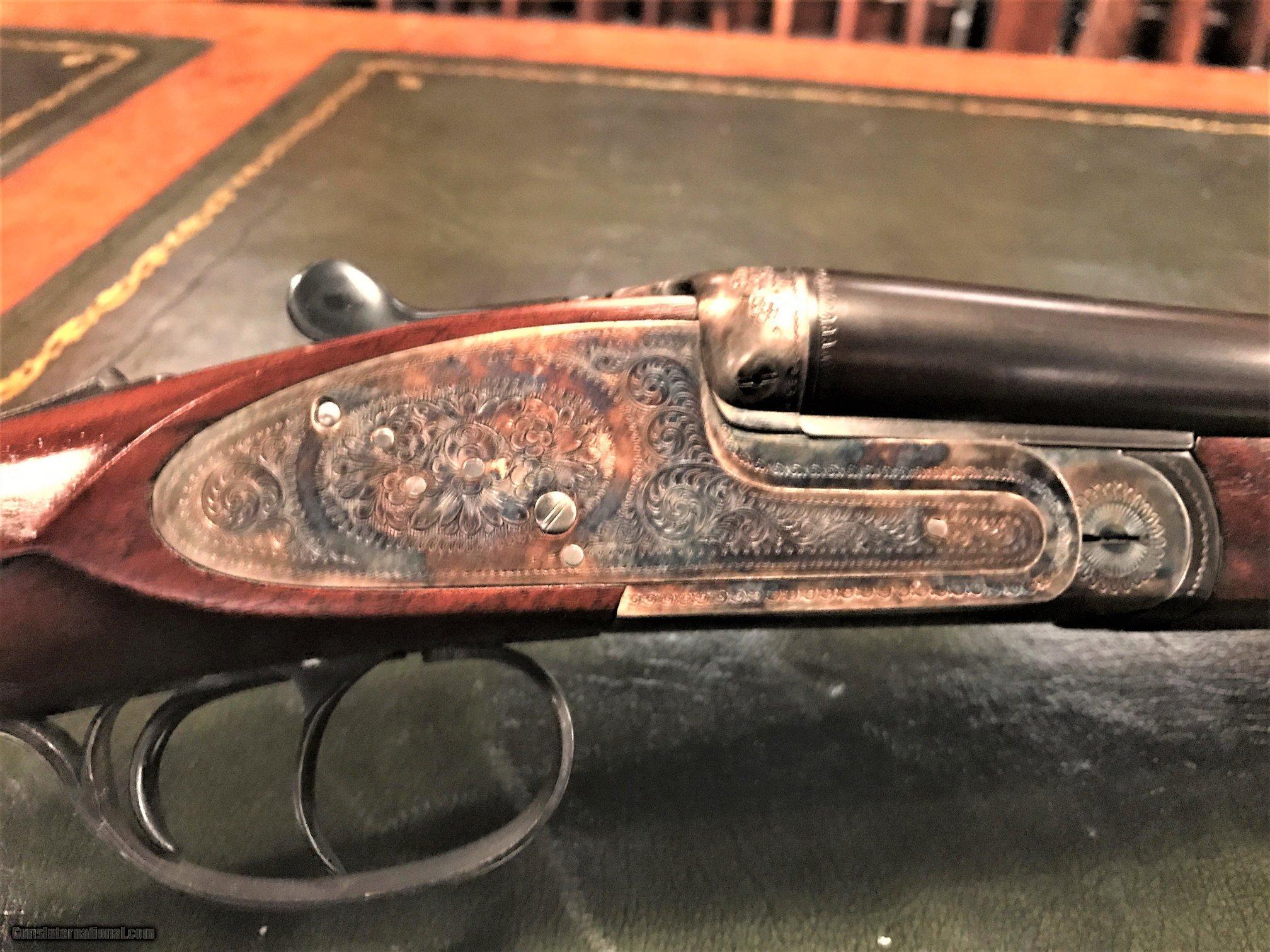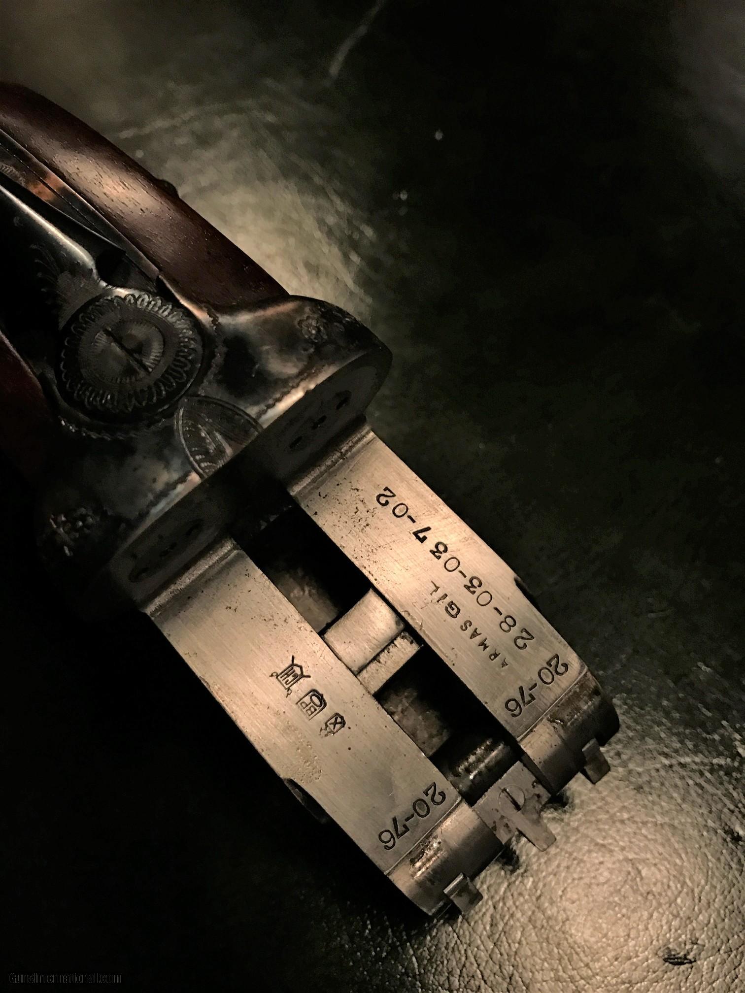 Description: For sale is a Spanish made Antonio Gil 20ga. This shotgun has Holland and Holland style hand detaching sidelocks. The beautiful case colored sidelocks are engraved with foliate arabesque scroll. It has 3" chambers with ejectors. The barrels are 28" long and are choked Improved modified and Cylinder. LOP to the checkered butt is 14 1/2" from front trigger and 13 5/8" from back trigger. The Drop Comb is 1 7/16" and Drop Heel is 2 5/16". Gun weighs 6lbs 7oz. This fine Spanish shotgun is in great condition and looks to have been fired very little. Please call or email me with any questions. Thanks! Shipping & Insurance - $100 SOLD |