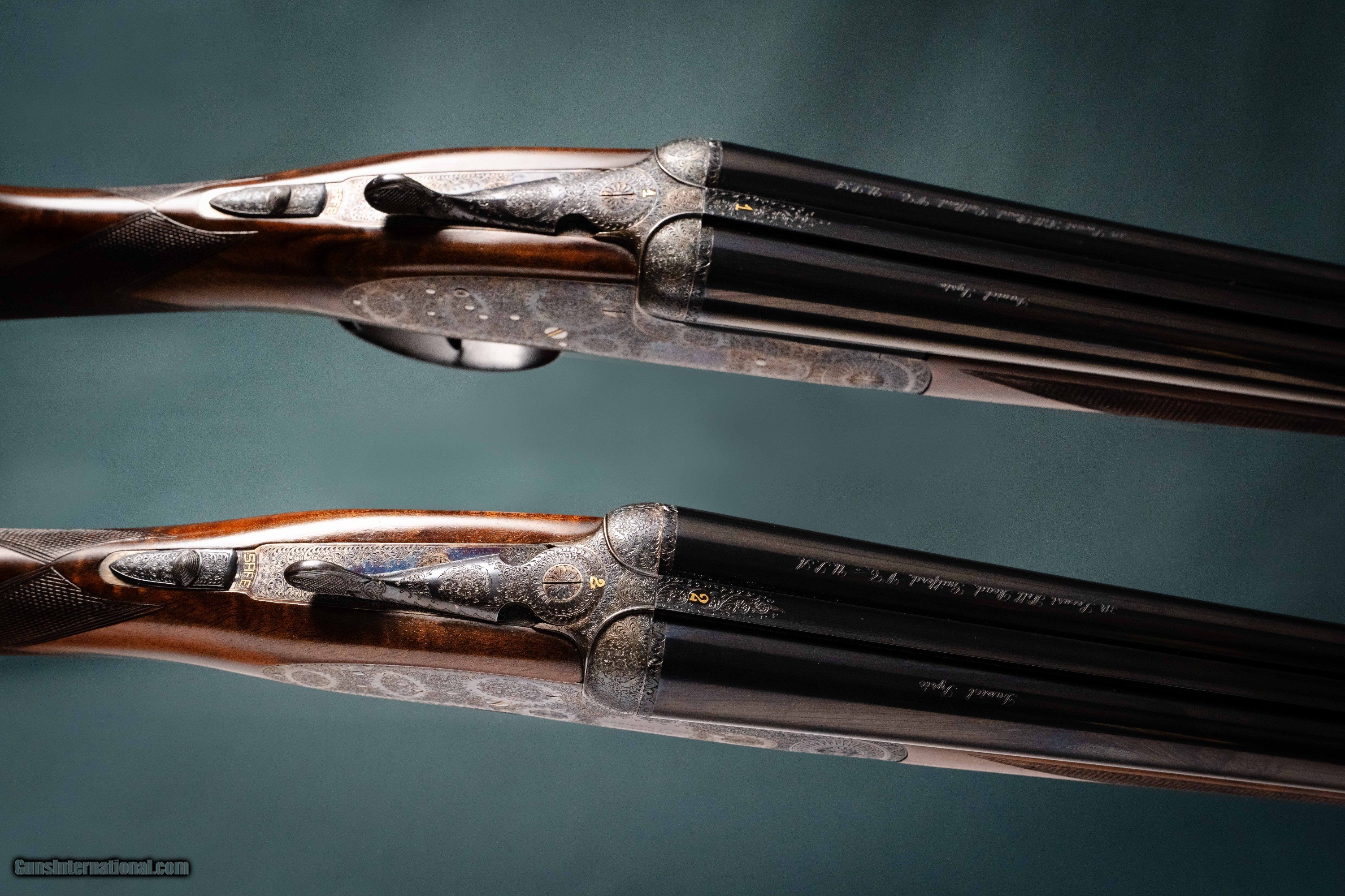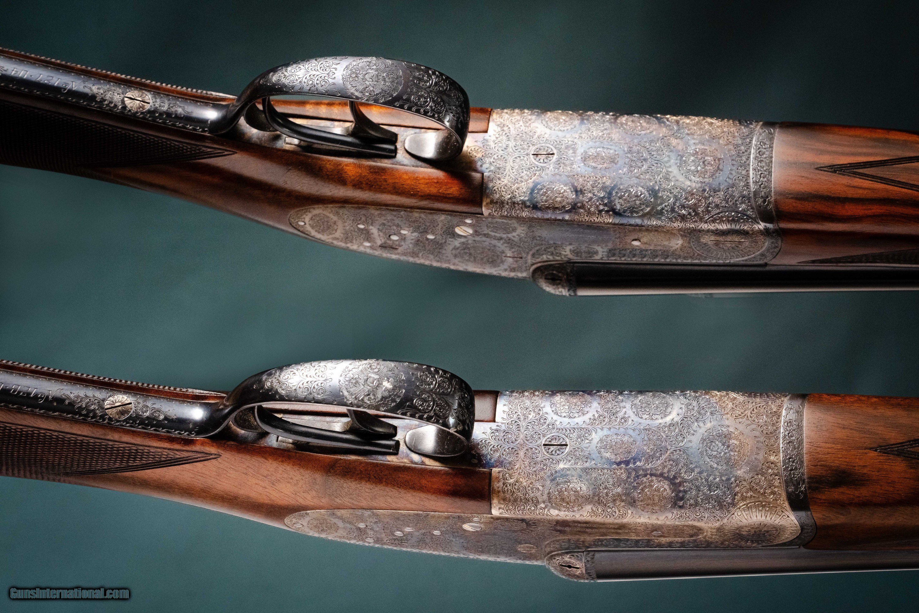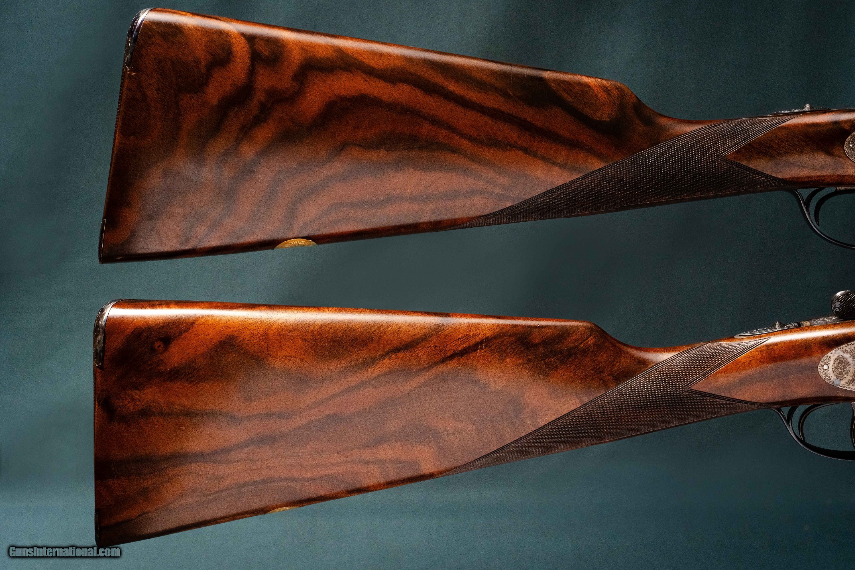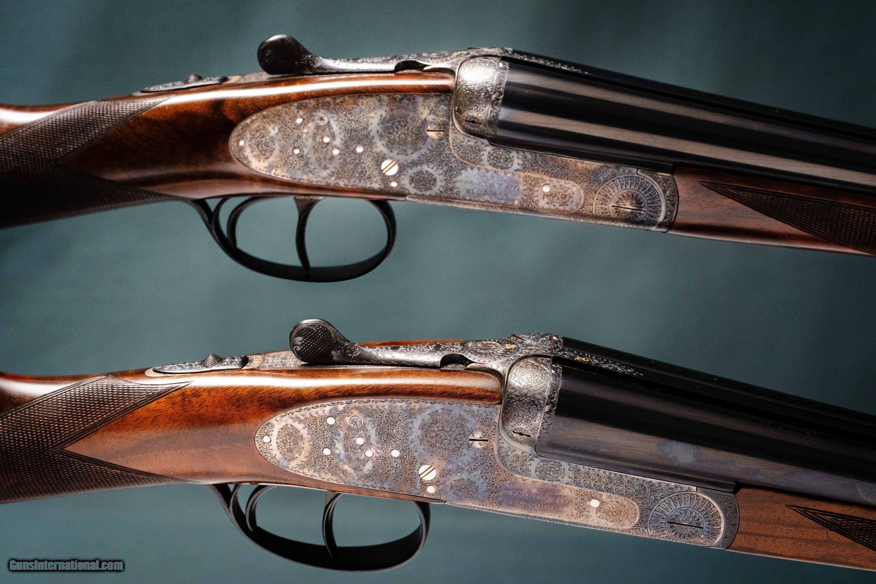 Description: A Pre-owned Pair of Arretta 28 gauge 871 Model side by side shotguns Action Calibre: 28 gauge Action: Round Action Sidelock Ejector Triggers: Double with front articulated Safety: Automatic Barrels Barrel Length: 28 inches Chamber: 2 3/4 inch Rib: Game concaved Chokes: Right : Skeet - Left : 1/2 Stock Type: Deluxe Length: 14 3/4 inches Grip: Classic straight Grip Butt End Finish: Chequred with Steel engraved heel & toe caps Forend: Splinter Style Forend Engraving Description: Fine Rose & Scroll Finish: Case Colour finsh Other Information Weight: 6 lbs - 6 oz Case: Double leather case Price: $27,500.00 Contact Seller |