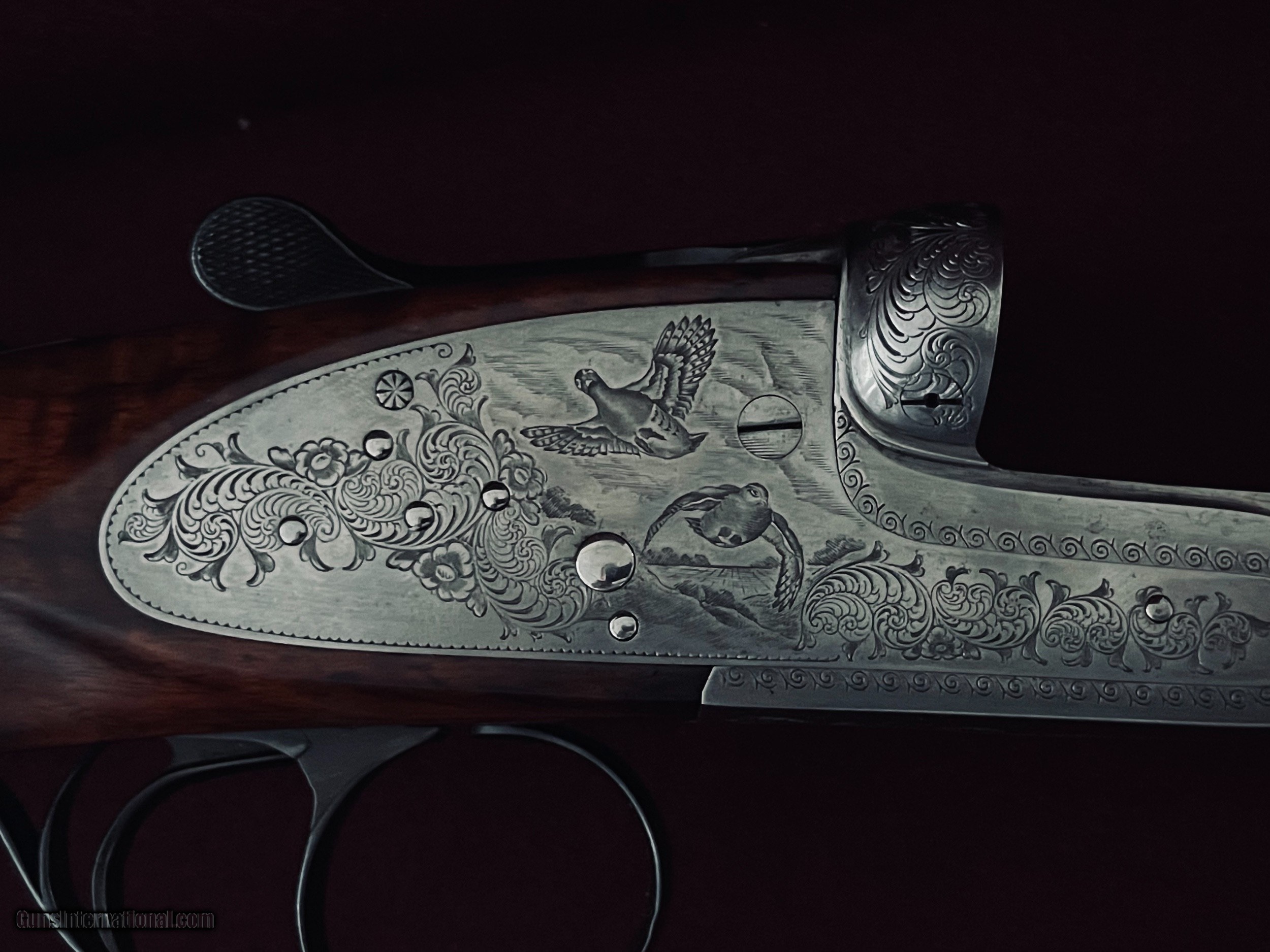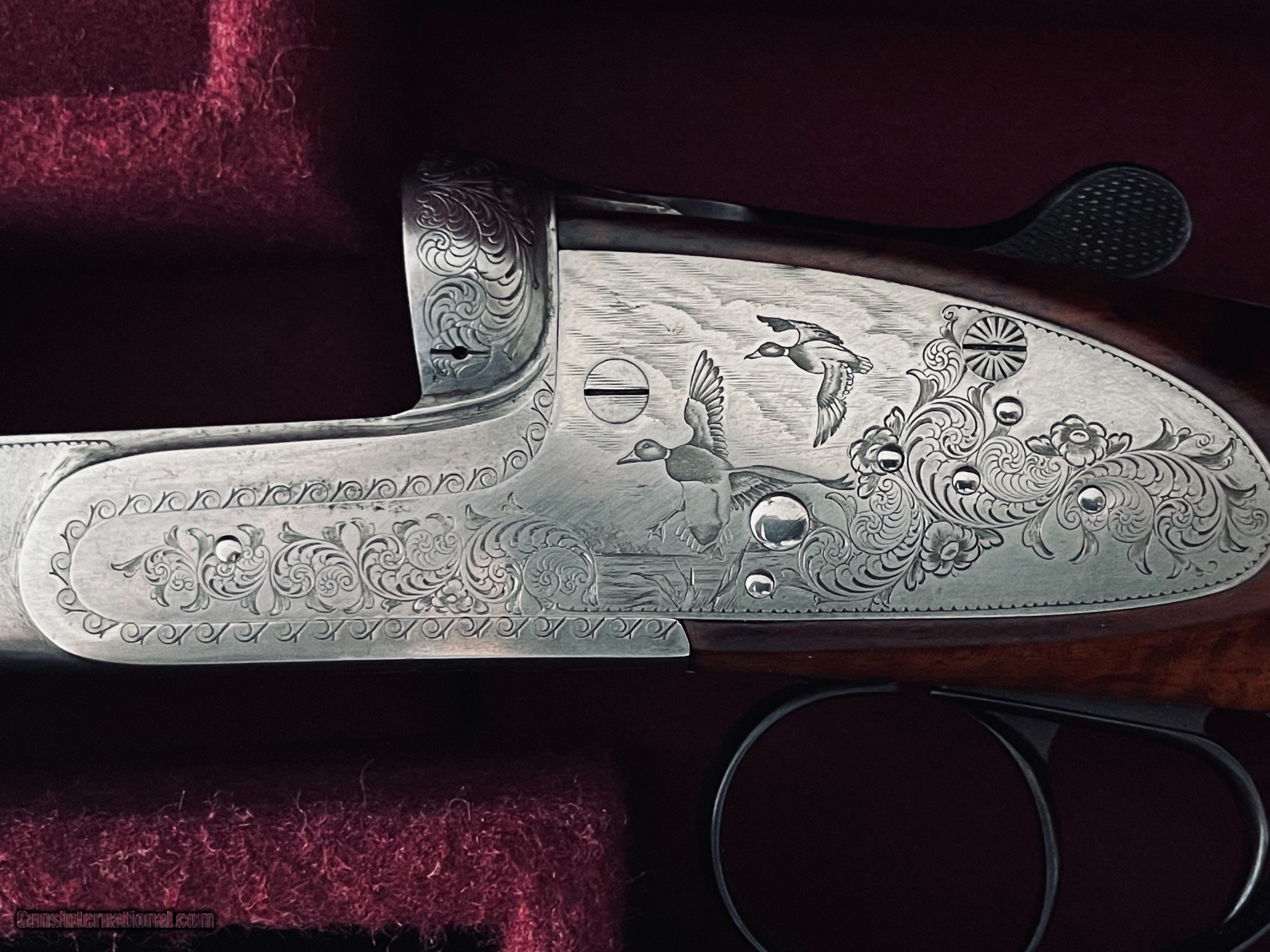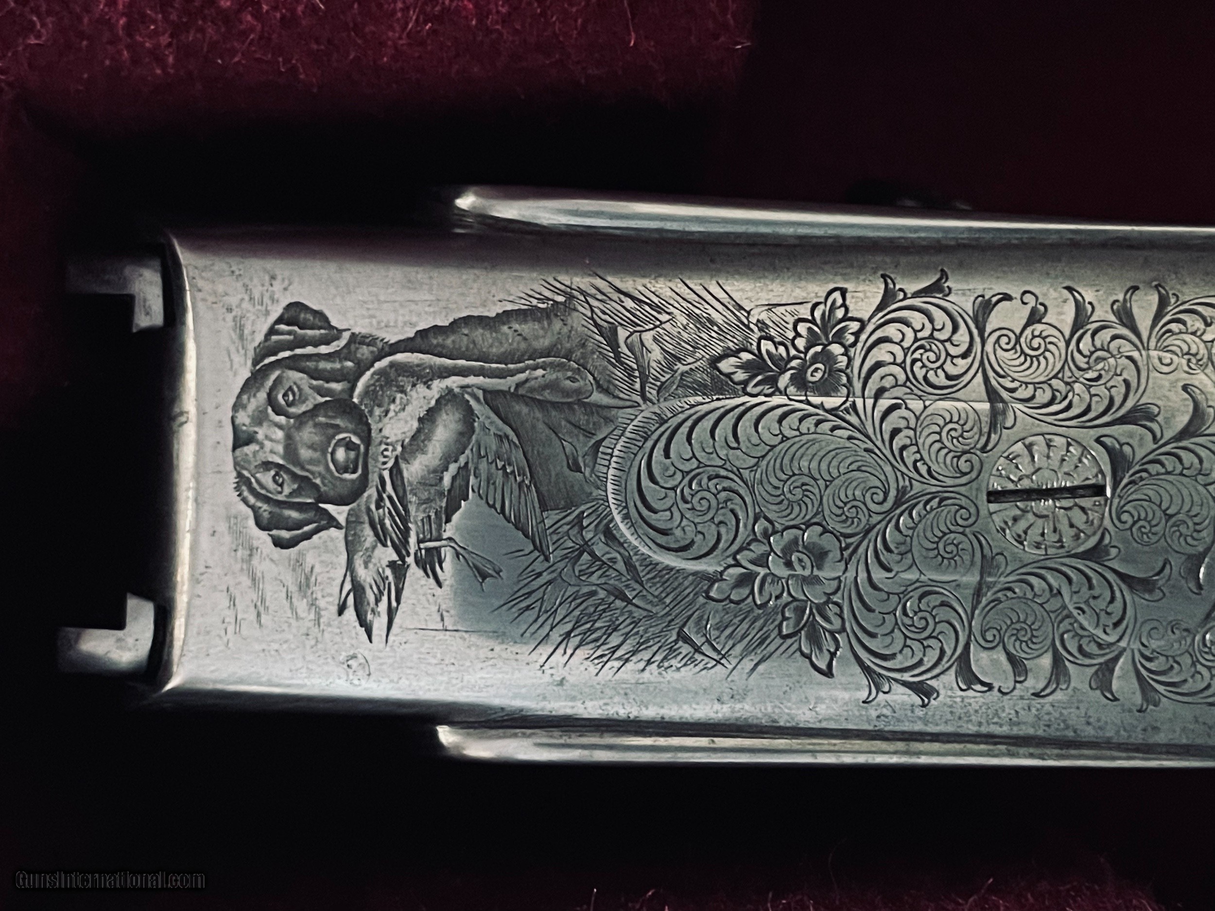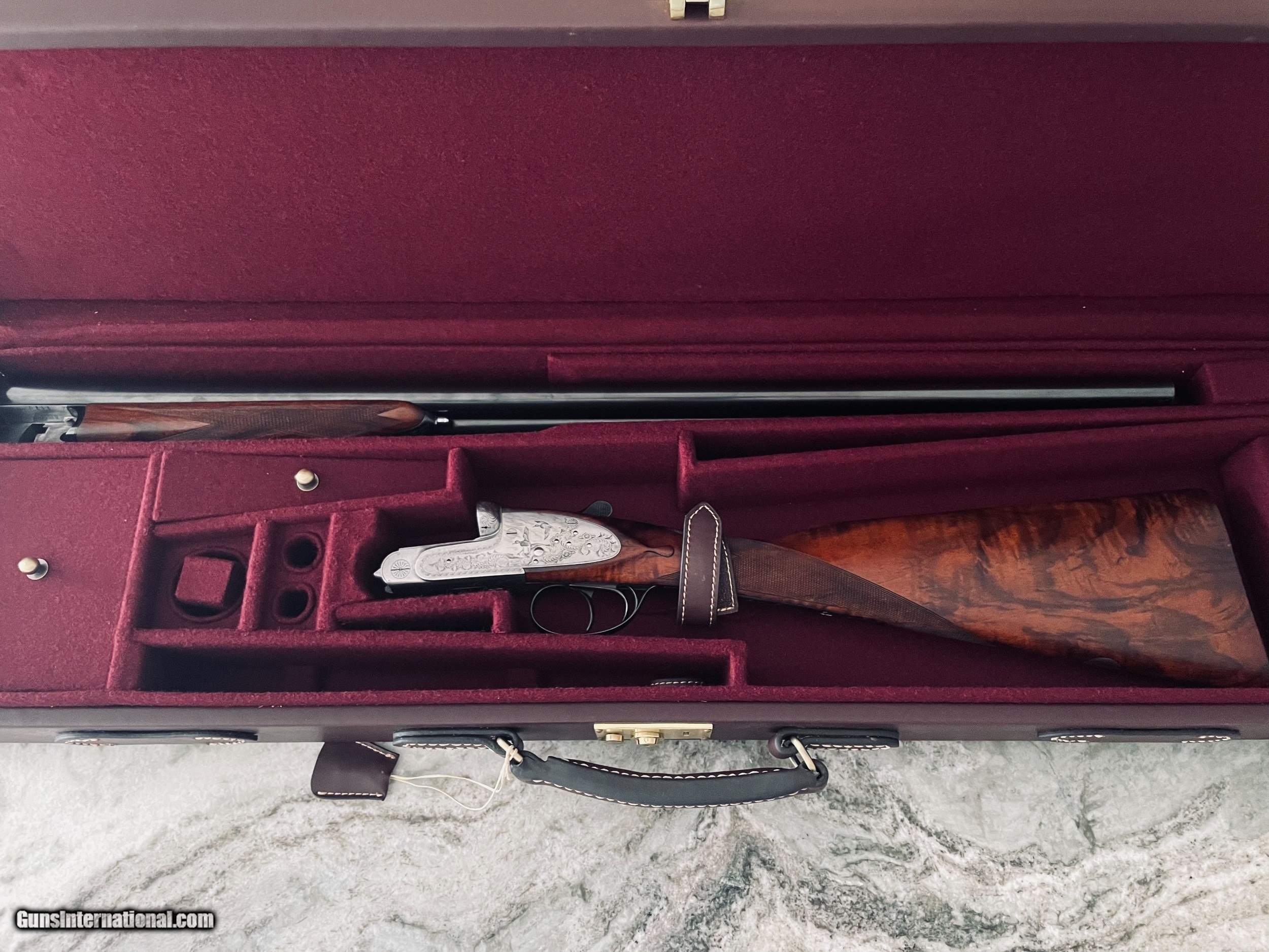 Description: One of a kind Arrieta sidelock 20 gauge assisted opener. Engraved and signed by the world renowned Bottega Giovanelli. Grade V wood. Excellent condition. No scratches dents or dings. Great dimensions for the average sized shooter. Cost $12,000 new. Comes with leather motor case. Call 786-375-1709 for any additional information. 28" barrels 14 3/4 LOP 1 1/2 DAC 2 1/4 DAH Very slight right hand cast Choked IC/M Ejectors SOLD |