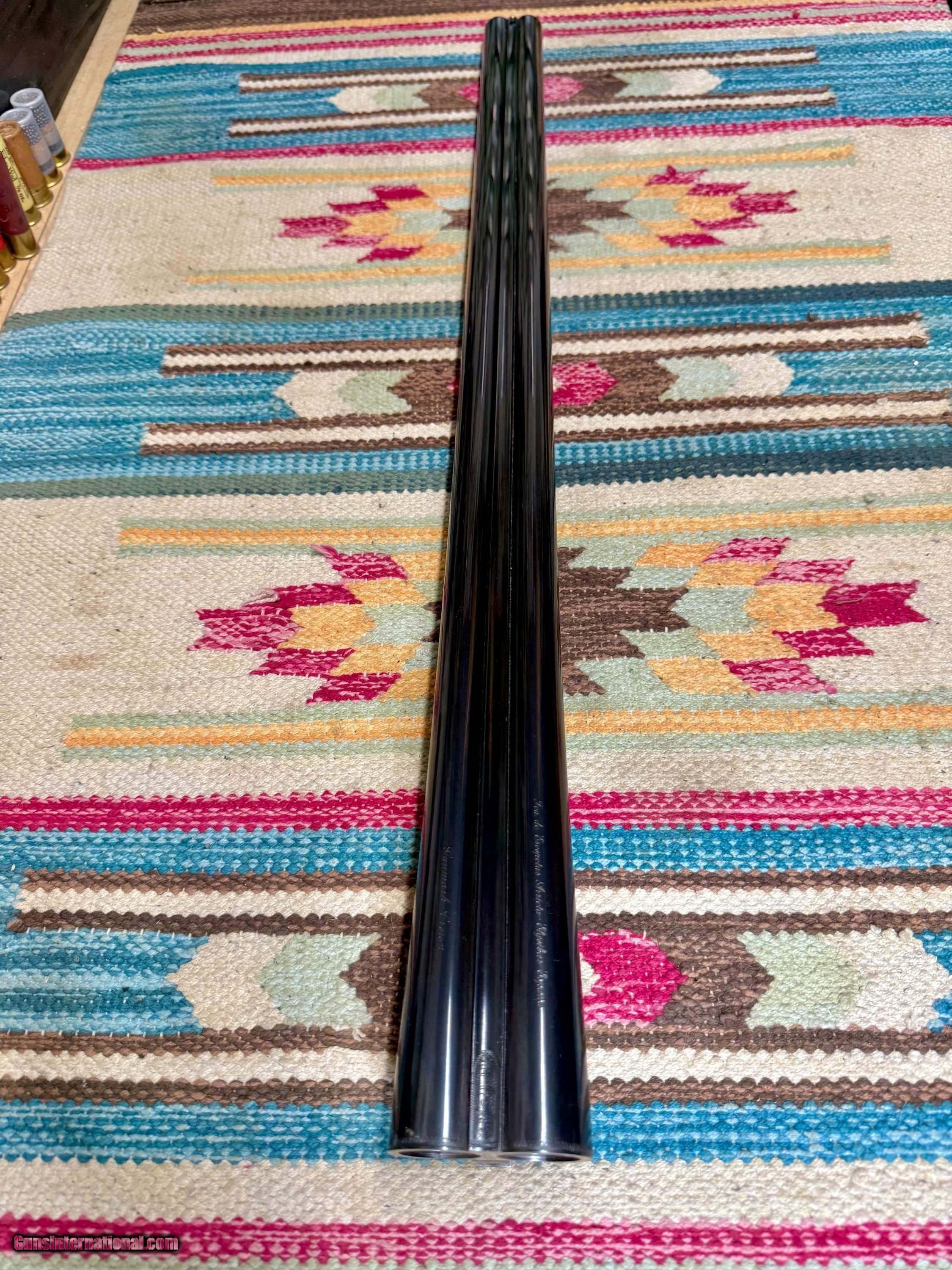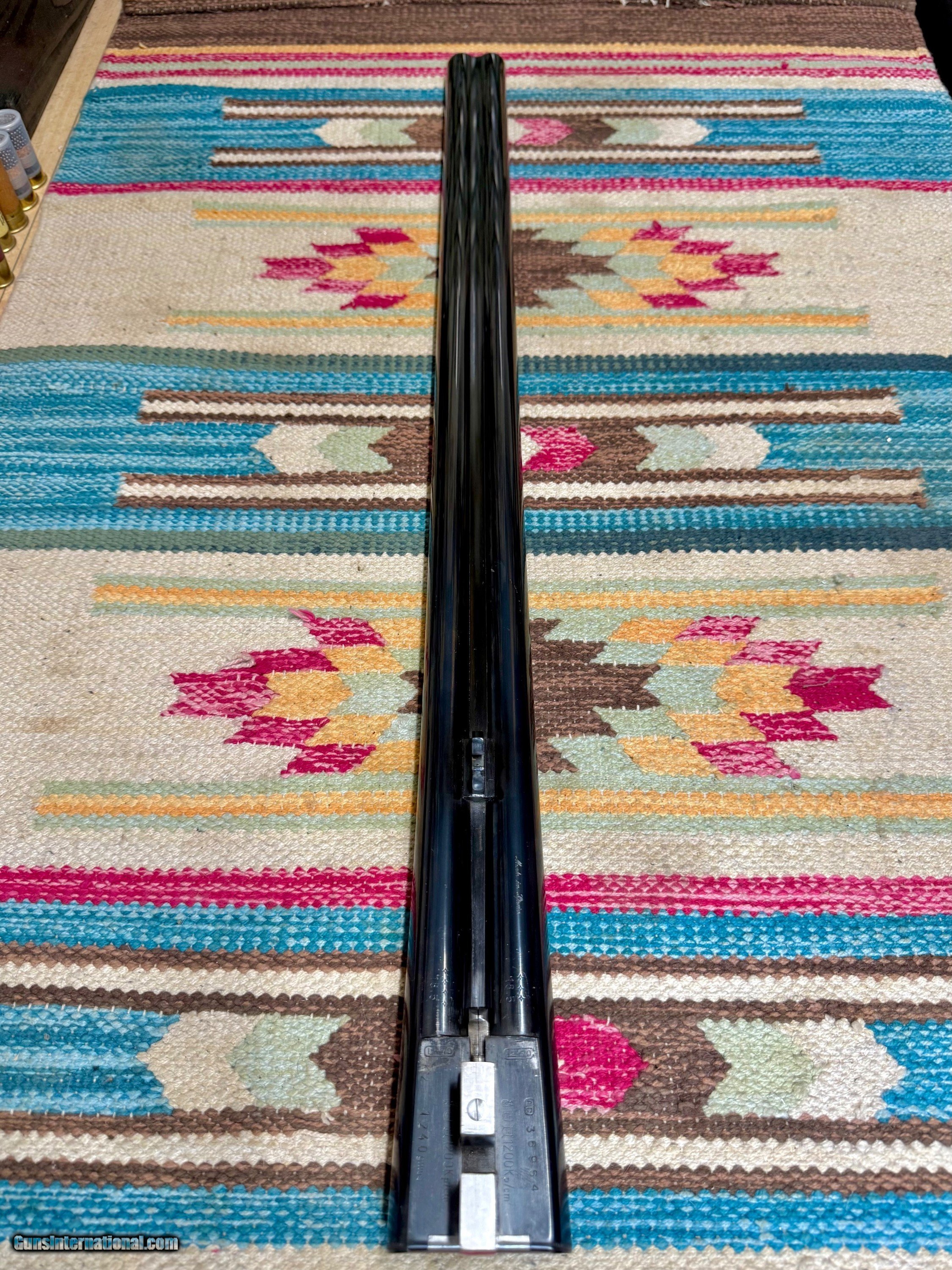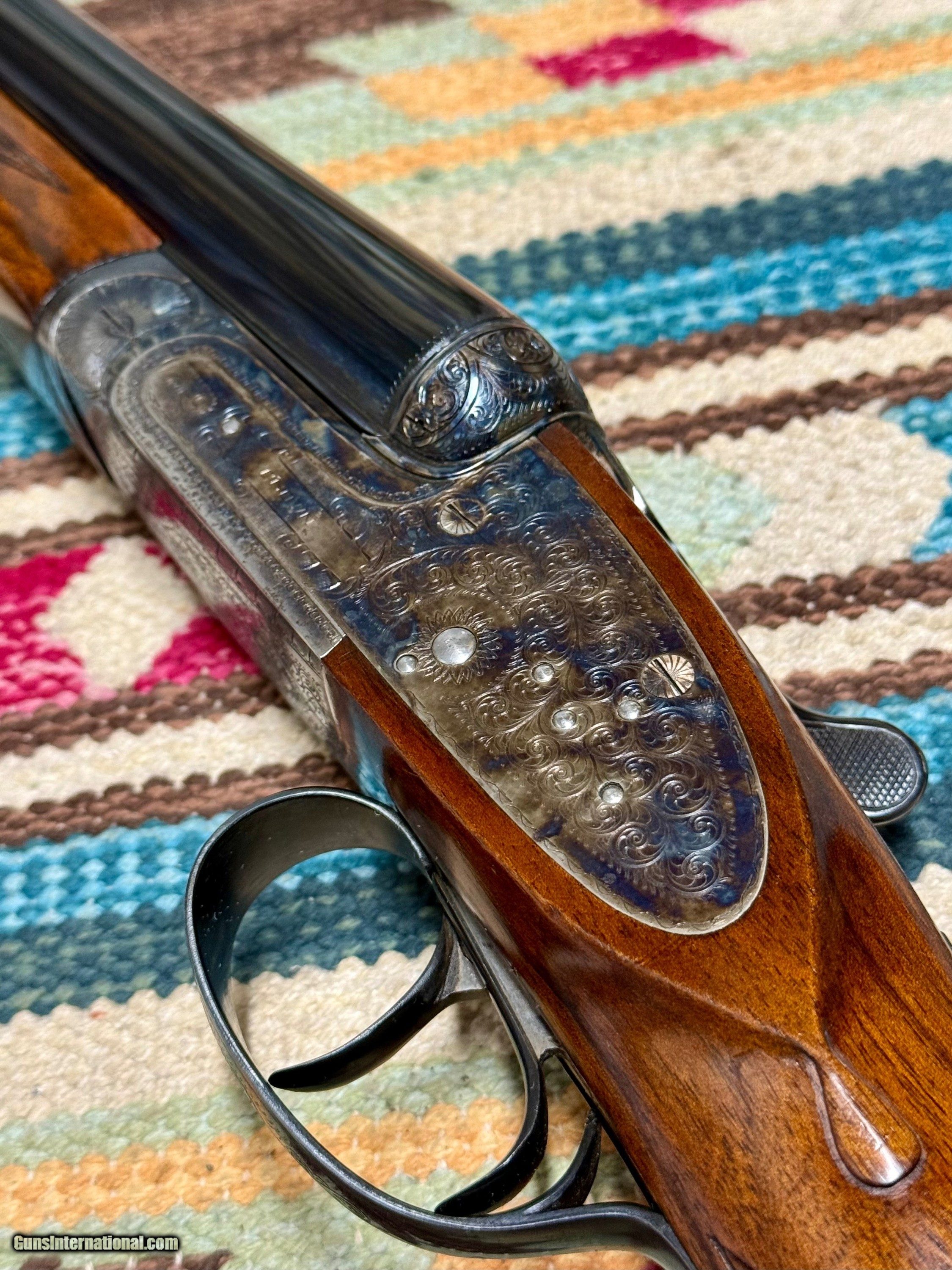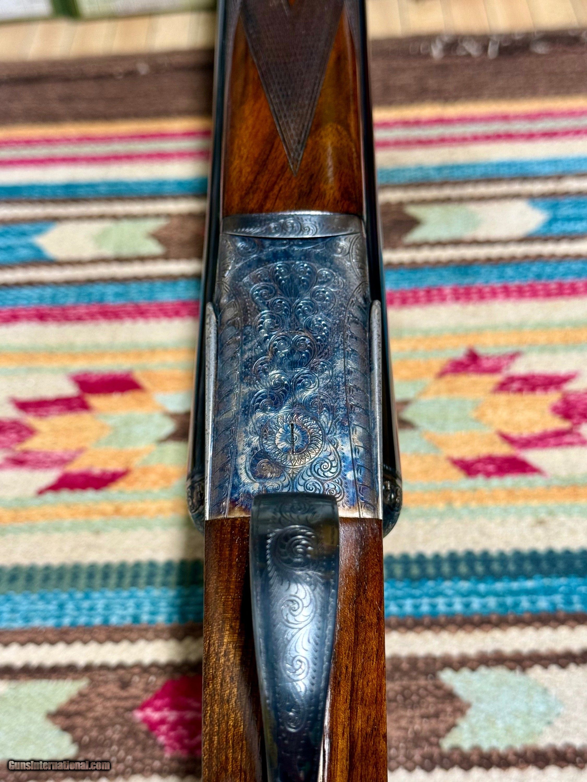 Description: Arrieta 12 gauge sidelock built in 1991 by one of Spain’s better gunmakers. This gun was a Gunmark import, Crown model similar to the 557. The gun is in excellent condition, double triggers, automatic safety, ejectors, 27" barrels choked IC, M. Features articulated front trigger, gas escape ports, bushed firing pins, vacant gold oval and screws are in excellent condition. Lock up is tight and barrels ring like church bells. Wood is in good condition with some handling marks from normal use, no cracks or chips. Straight grip stock and splinter forend, checkering is fine and crisp. European walnut with nice figure. 15 1/4” x 1 1/2" x 2 1/8” slight cast off for RH shooter. Receiver is in very good condition, excellent engraving, bright case colors with few handling marks from normal use. Barrels show a few handling marks, blue is excellent and bores are clean and bright. Gun comes with a leather take down case and briley snap caps as shown. Excellent double from one of Spain’s best gunmakers. $2250 Shotgun Gauge: 12 Gauge Manufacturer: Arrieta Model: Sidelock Ejector Barrel Length: 27” Chambers: 2 3/4” Ejectors: Yes Condition: Very Good Metal Condition: Very Good Wood Condition: Very Good Bore Condition: Bright Barrel Type: SxS Action: Sidelock Triggers: Double Stock: Straight Stock Dimensions: 15 1/4” x 1 1/2” x 2 1/8 Stock Cast: Slight Cast Off Fore End: Splinter Butt Pad: Grooved Plate LOP: 15 1/4” Weight: 6 3/4 lbs Manufacture Date: 1991 Choke Left: M Choke Right: IC Extras: Case, Snap Caps Case: Leather Takedown Price: $2,250.00 Contact Seller |