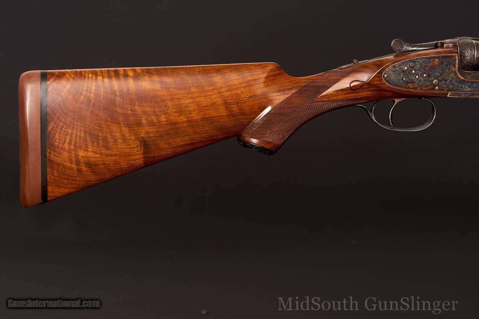 Description: Presented for sale, you will find a Arrizabalaga-Ebar Sidelock Ejector chambered for 12 gauge ammunition. This Arrizabalaga-Ebar is fitted with 28 inch barrels choked improved cylinder and full. This is #2 of a two gun set. The other is also listed. Check “Seller’s Other Listings”. You could have a nice set for very little money. We ill sell both guns for $800 each if both are sold to the same buyer. This Arrizabalaga-Ebar Sidelock Ejector warrants an NRA rating of Very Good. The images will illustrate the condition of this shotgun better than I can describe. This shotgun will ship to the lower 48 via FedEx Ground for $35. Our phones are answered 24/7 by a human that speaks English. Thank you for looking SOLD Shotgun Gauge: 12 Gauge Serial Number: 4050 Barrel Length: 28 Ejectors: Yes Condition: NRA Very Good Metal Condition: See Images Wood Condition: See Images Bore Condition: Excellent Action: Side Lock Triggers: Single Selective Stock Drop: 1 1/2 Stock Comb: 1 1/2 Stock Heel: 2 Stock Cast: 1/4 Right Hand Butt Pad: OEM LOP: 14 Rib: Yes Finish: Blue Choke Left: Full Choke Right: Improved Cylinder Engraving: See Images Item Location: Little Rock, Arkansas |