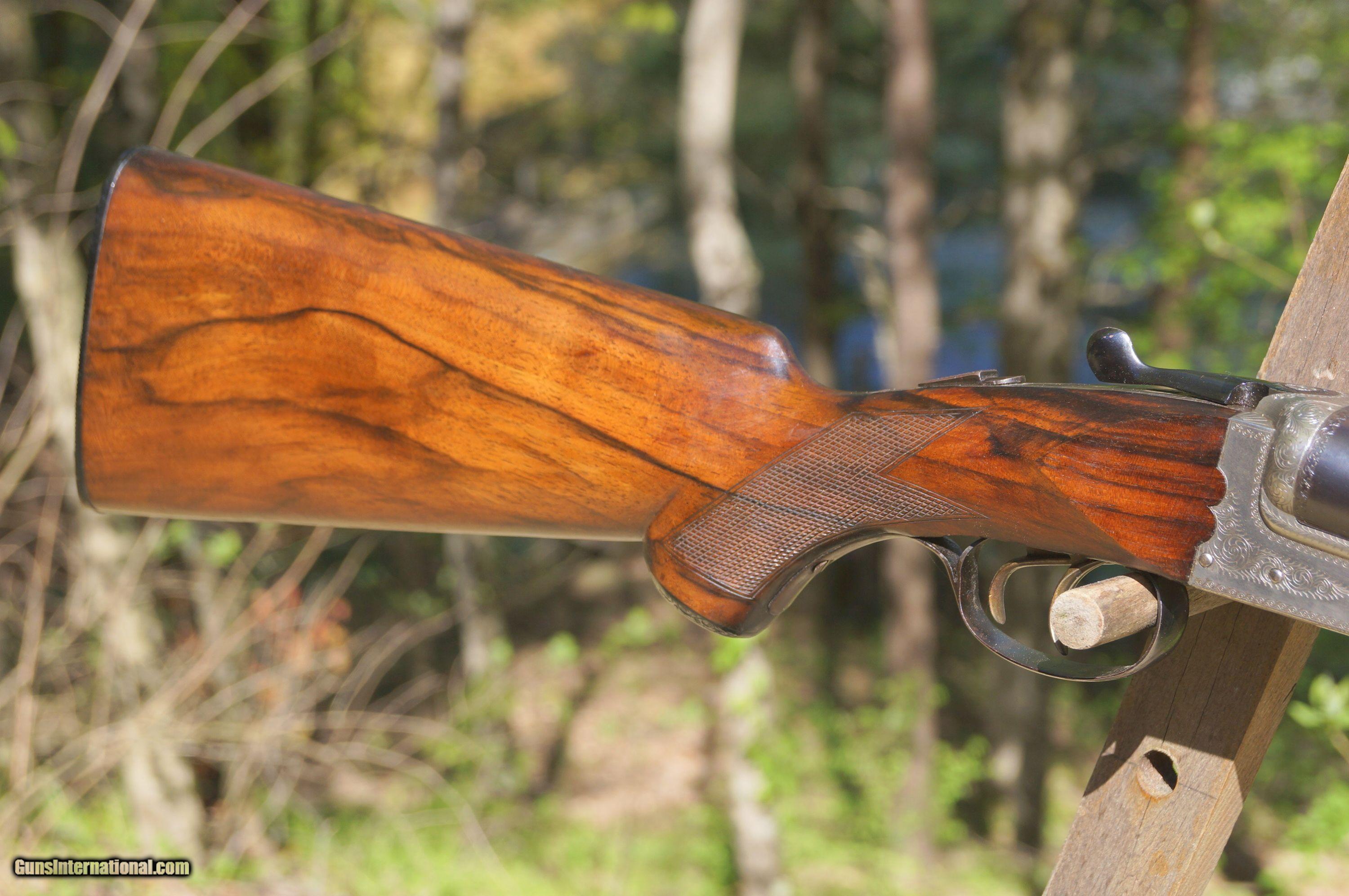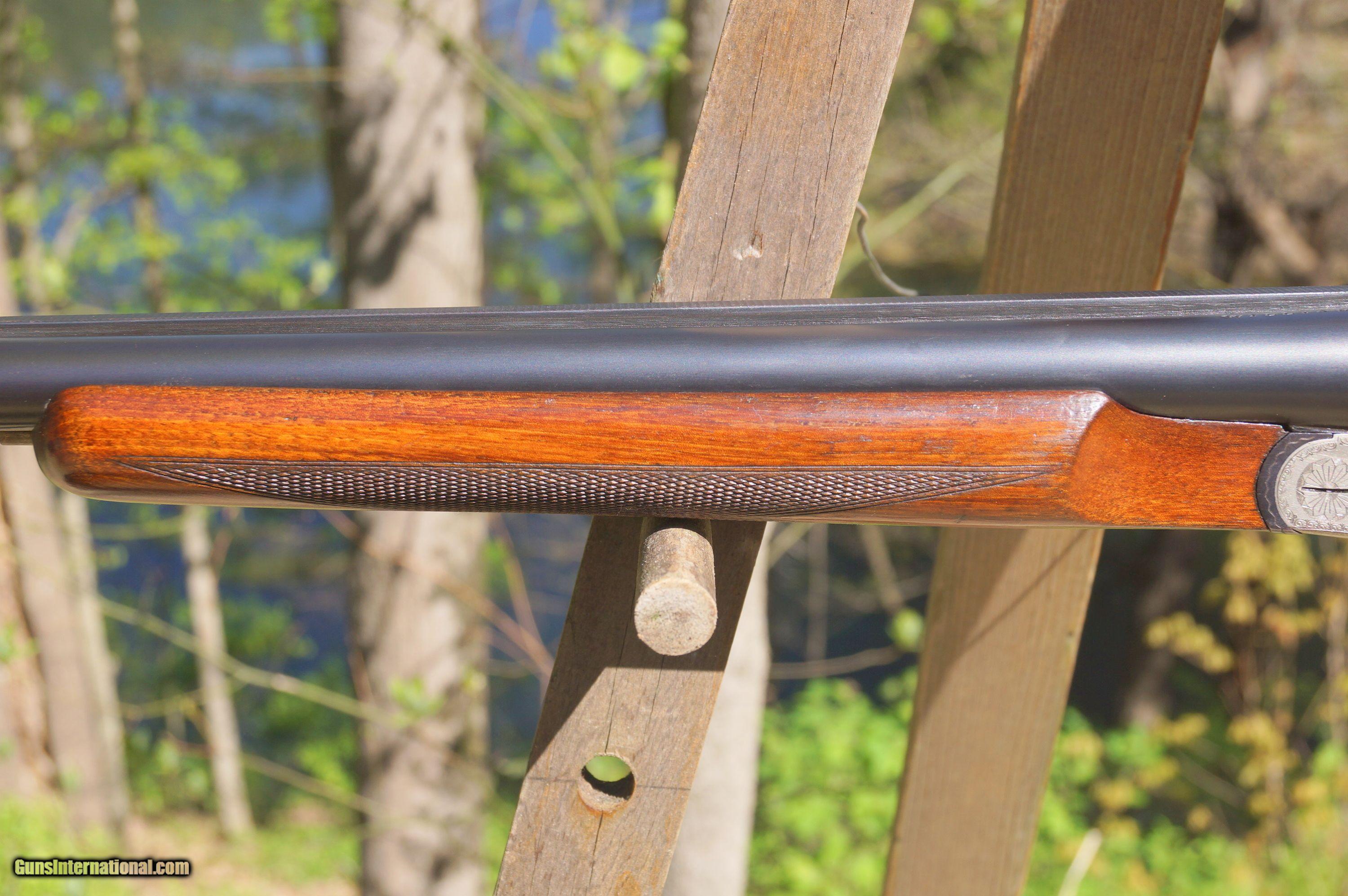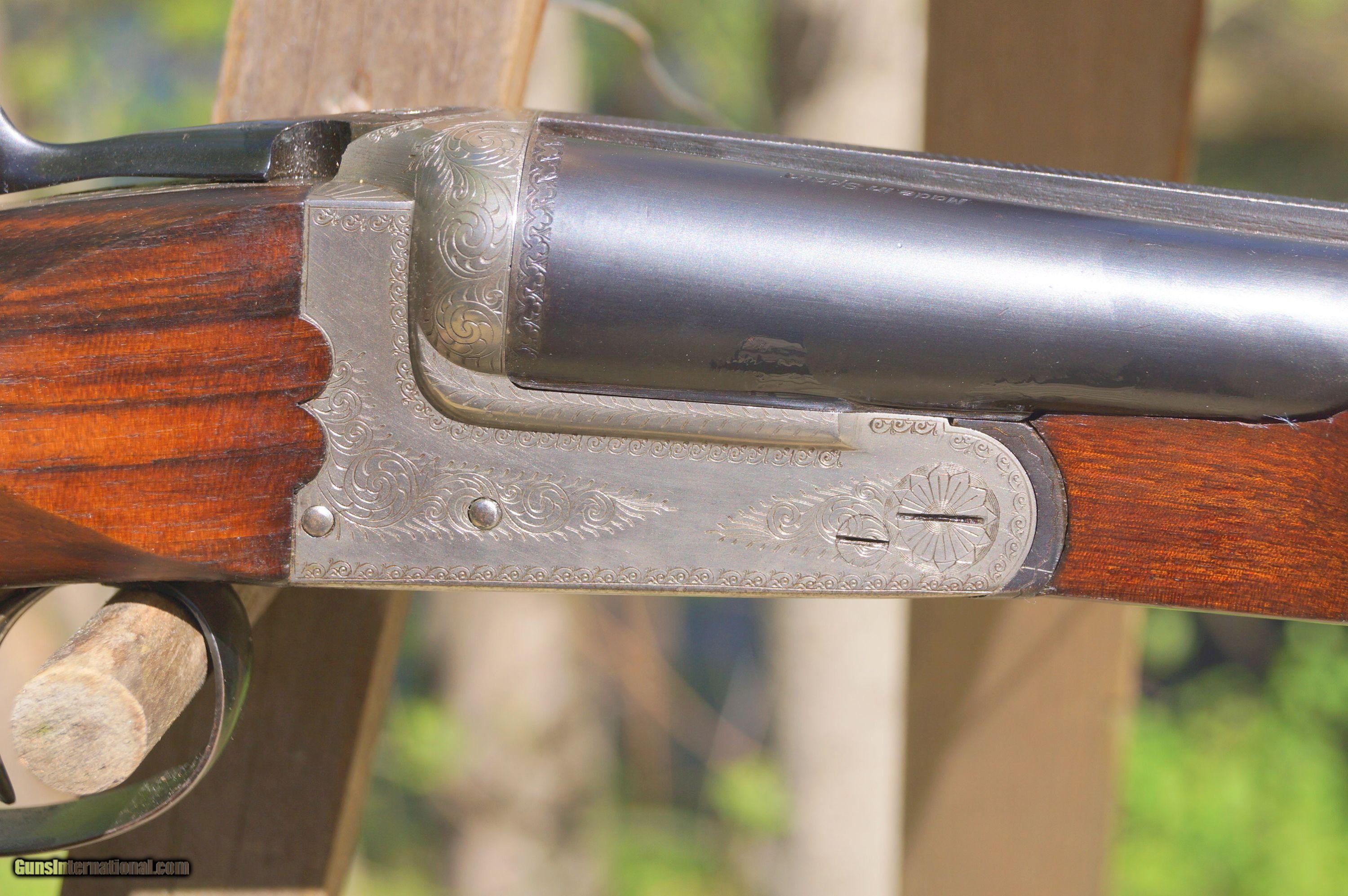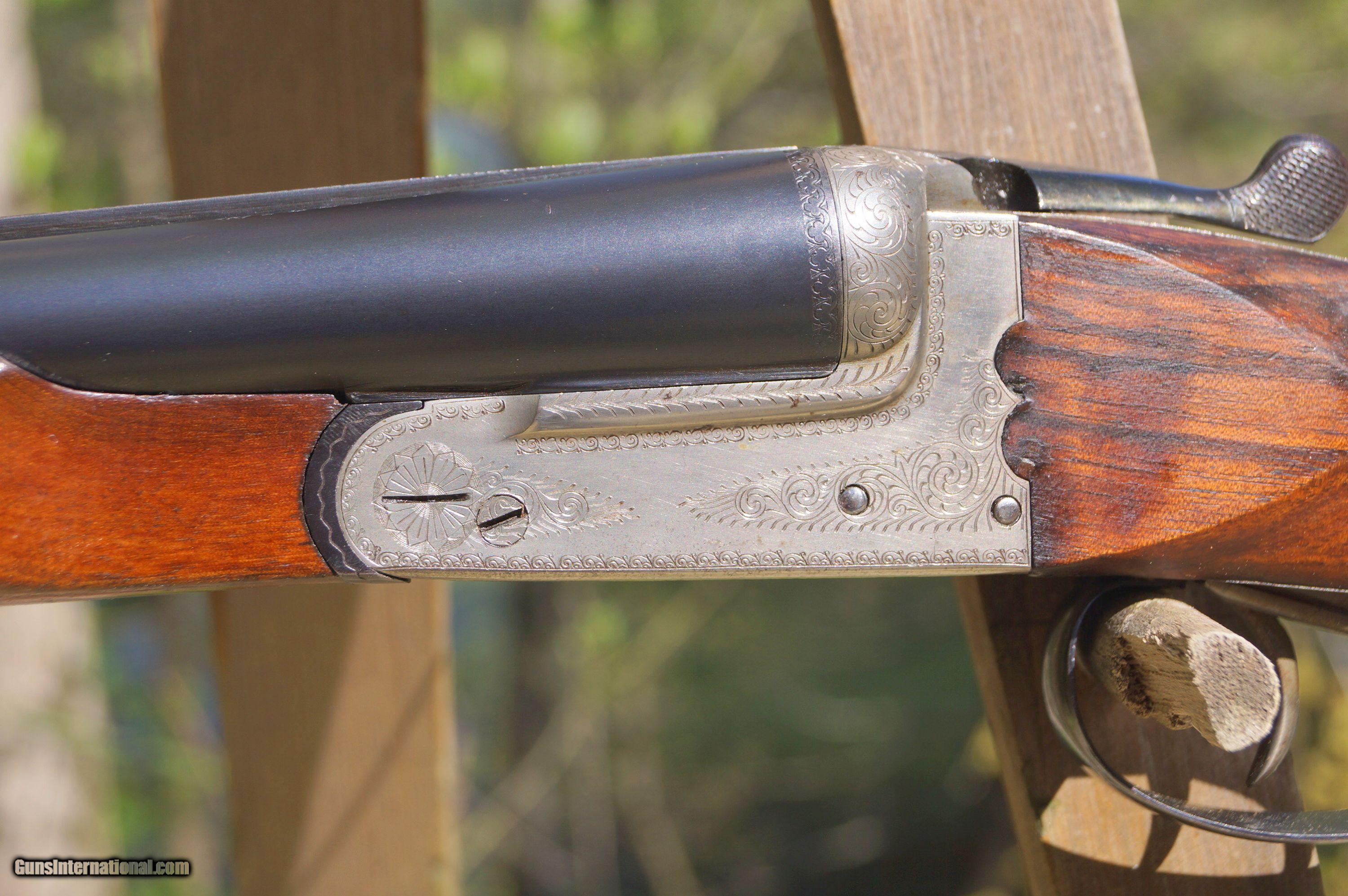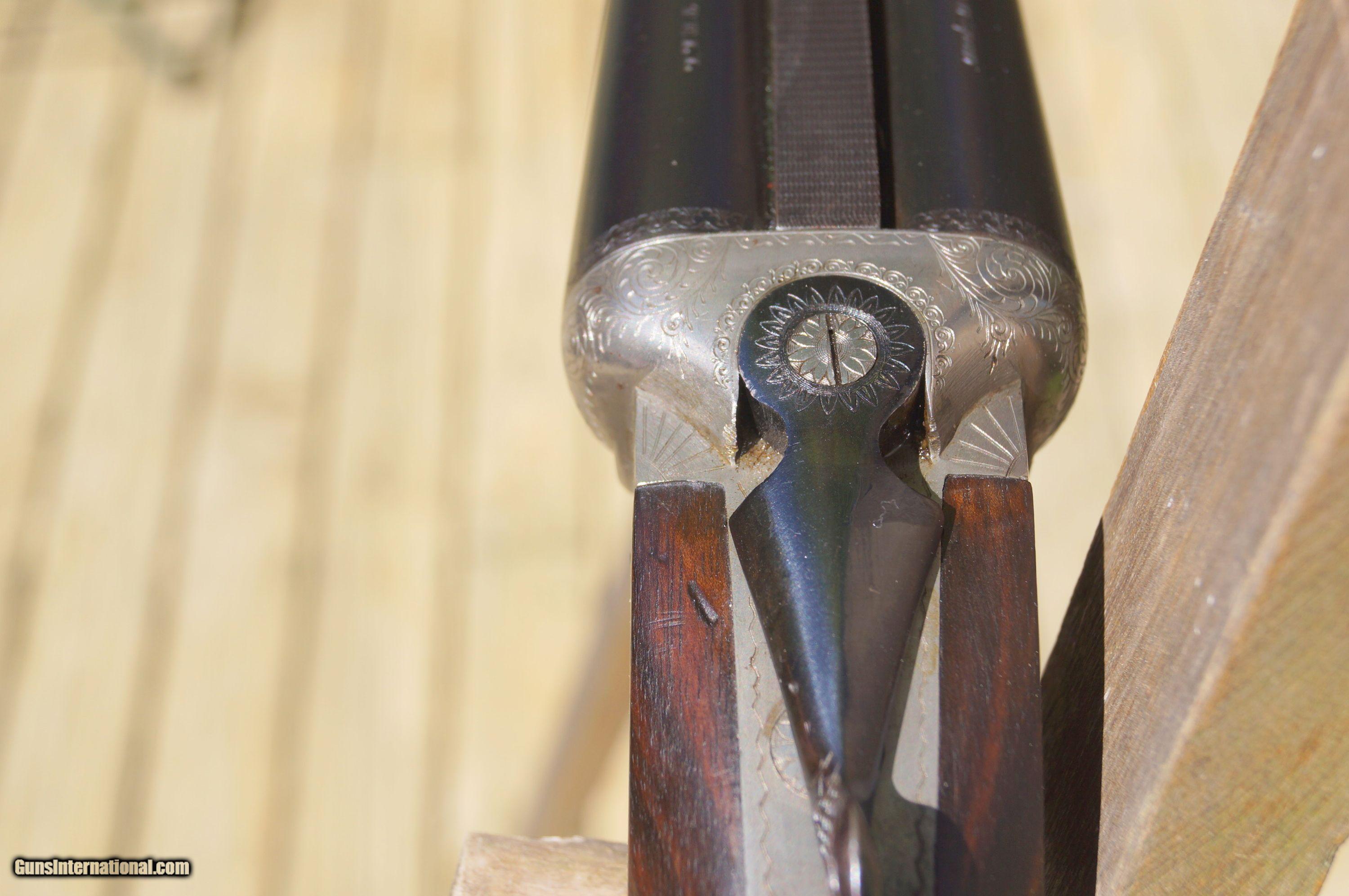 Description: If you want a classic European double to hunt with, take a look at this Astra. Astra contracted with some of the best Spanish gun makers for the shotguns they sold under their name. They ran the gamut of basic to very elaborate. This one is a beauty. Killer wood figure and nicely engraved. Locks up tight as a bank vault. Extractors. Beaver tail for-end. Mirror bores. Automatic safety. Blue and receiver finish 95%. Most of the wear is to the back of the trigger guard where your hand would hold it. Butt stock has been refinished. I have run down the metric choke markings and I believe it is choked full and improved modified. Length of pull to the front trigger is 14".Great double. Check with your dealer to make certain he will accept the gun from a non-FFL holder. I will provide him with a copy of my state ID. Shipping $30 east of the Mississippi and $35 west of it. I can email the pictures to you if you want to examine them in greater detail. SOLD Manufacturer: Astra Model: William Tell |