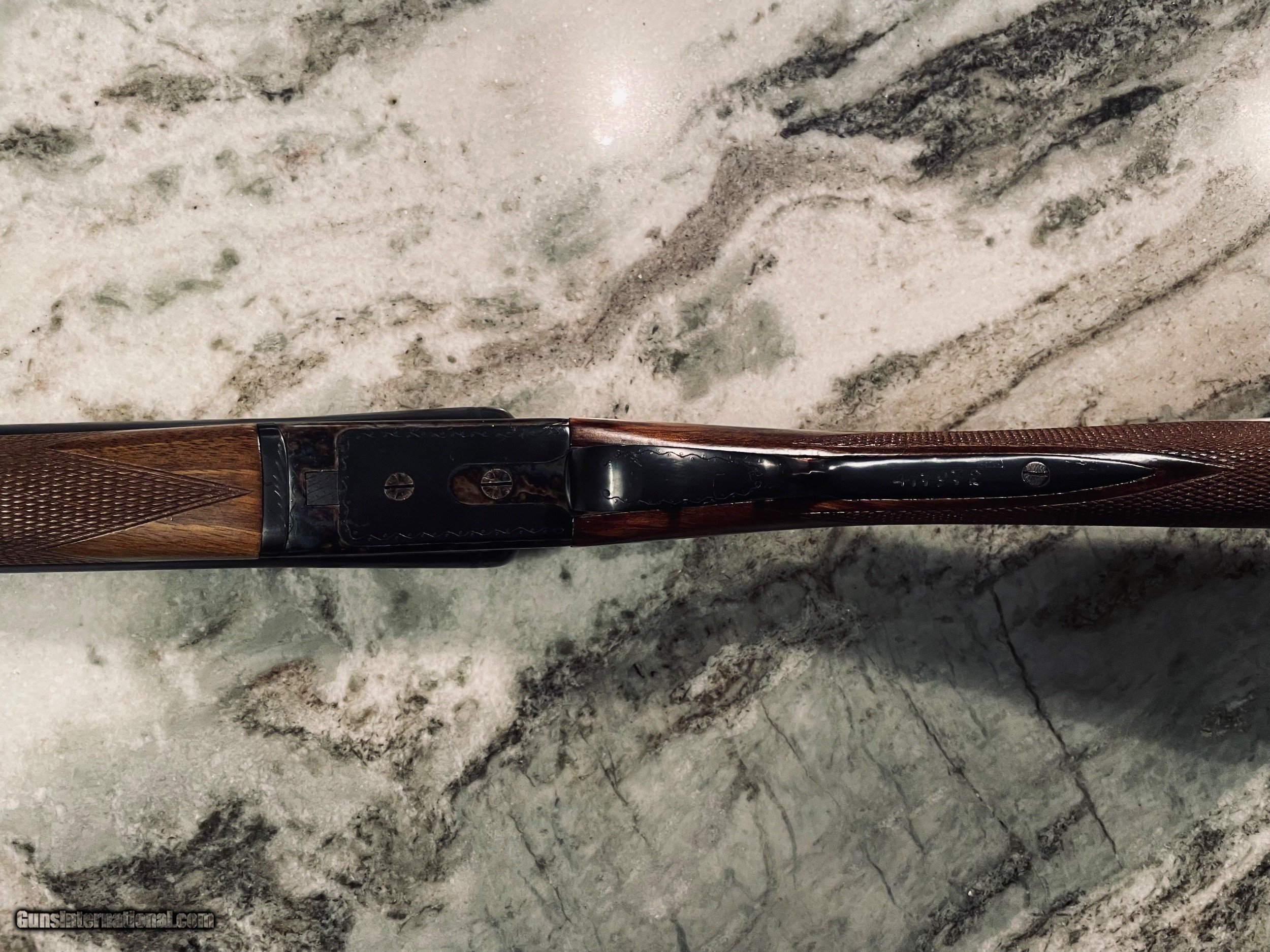 Description: Very good condition AYA 16G #3. The new ejector version of this gun costs almost $5K at the moment. Good bluing, case hardening, and wood. Light handling marks but nothing significant. No dents, dings, or cracks. Clean bores and chambers. Tight action. Balances perfectly at the pin. Specifications are below. Call 786-375-1709 for any additional information. 28" barrels 14 3/4 LOP 1 1/2 DAC 2 1/4 DAH 1/8" right hand cast "off" 2 3/4" chambers 6lbs 2ozs Choked IC/M Extractors SOLD |