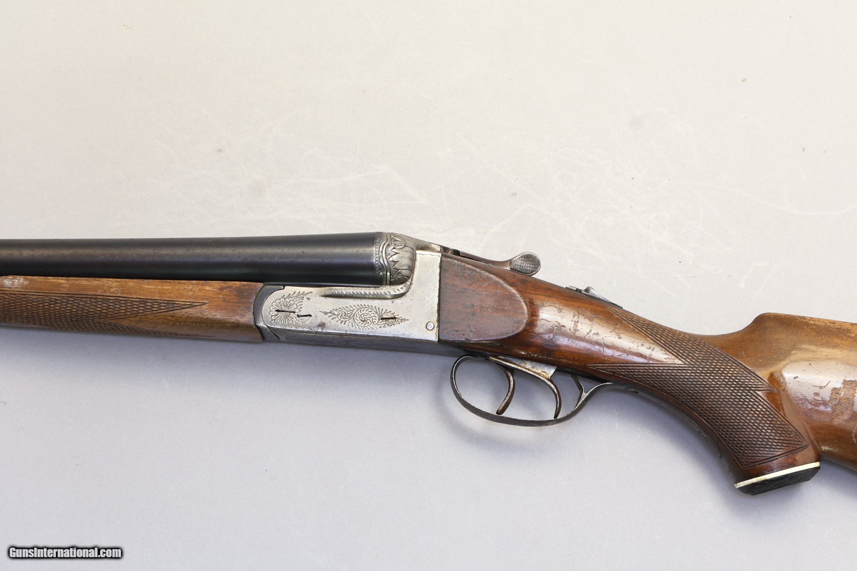 Description: 2 3/4" Chambers | Fixed IM & Cyl | Good Overall Condition The Model 63B Side by Side in 12 Ga is a Spanish-made shotgun built with a strong action and classic handling qualities. It has a wooden pistol grip stock and a smoothbore barrel setup designed for dependable performance. The solid tapered rib supports steady aim, and the double triggers give simple, reliable control. This shotgun is in good overall condition with light wear on the wood and neat scroll engravings. The barrels retain about 98% of their bluing with a few corrosion marks, and it has a brass middle bead with the front bead missing. Made in 1967 in Spain, it has a comfortable stock shape with cast?right fit and well?kept metalwork for its age. It qualifies for a C&R license.