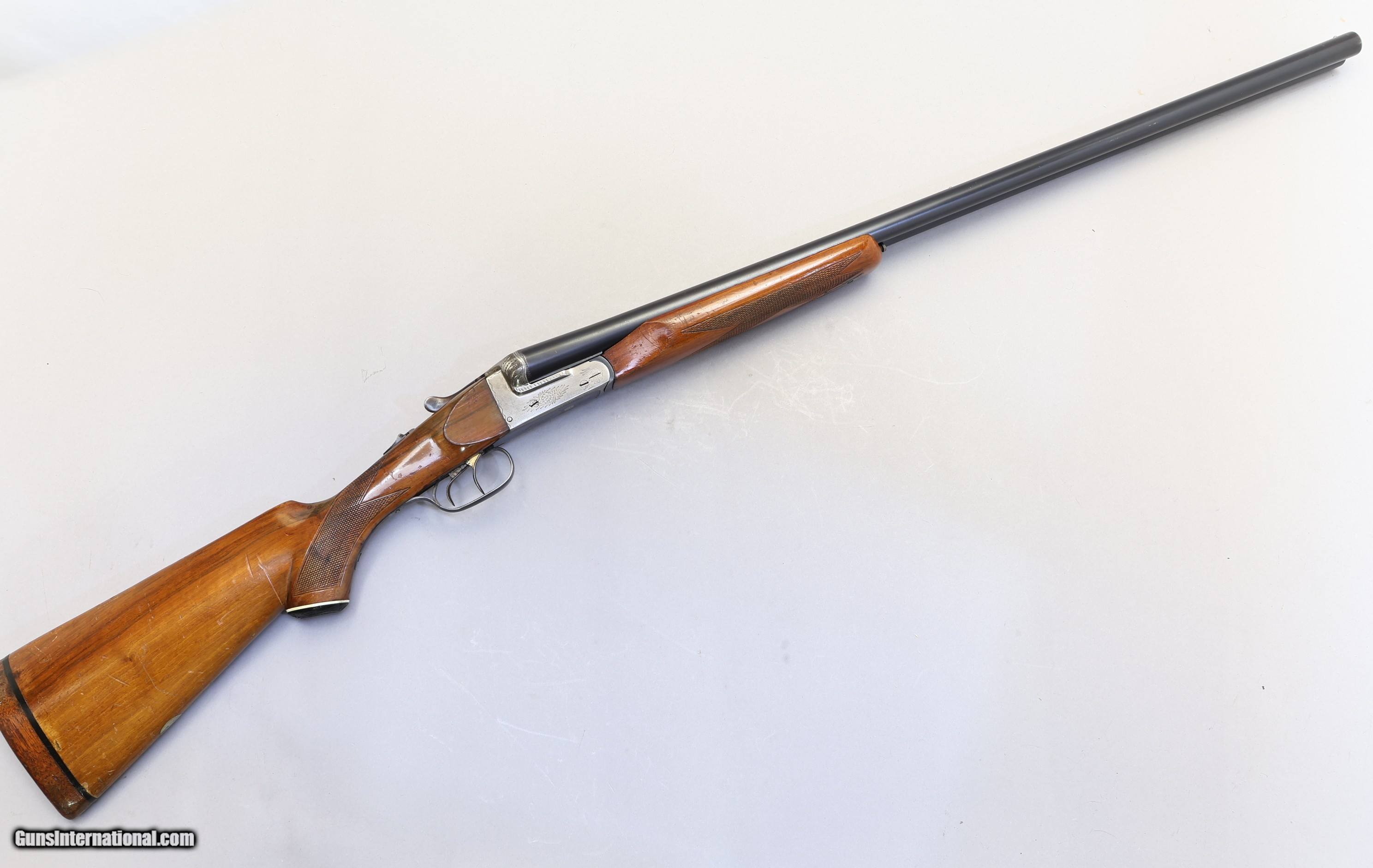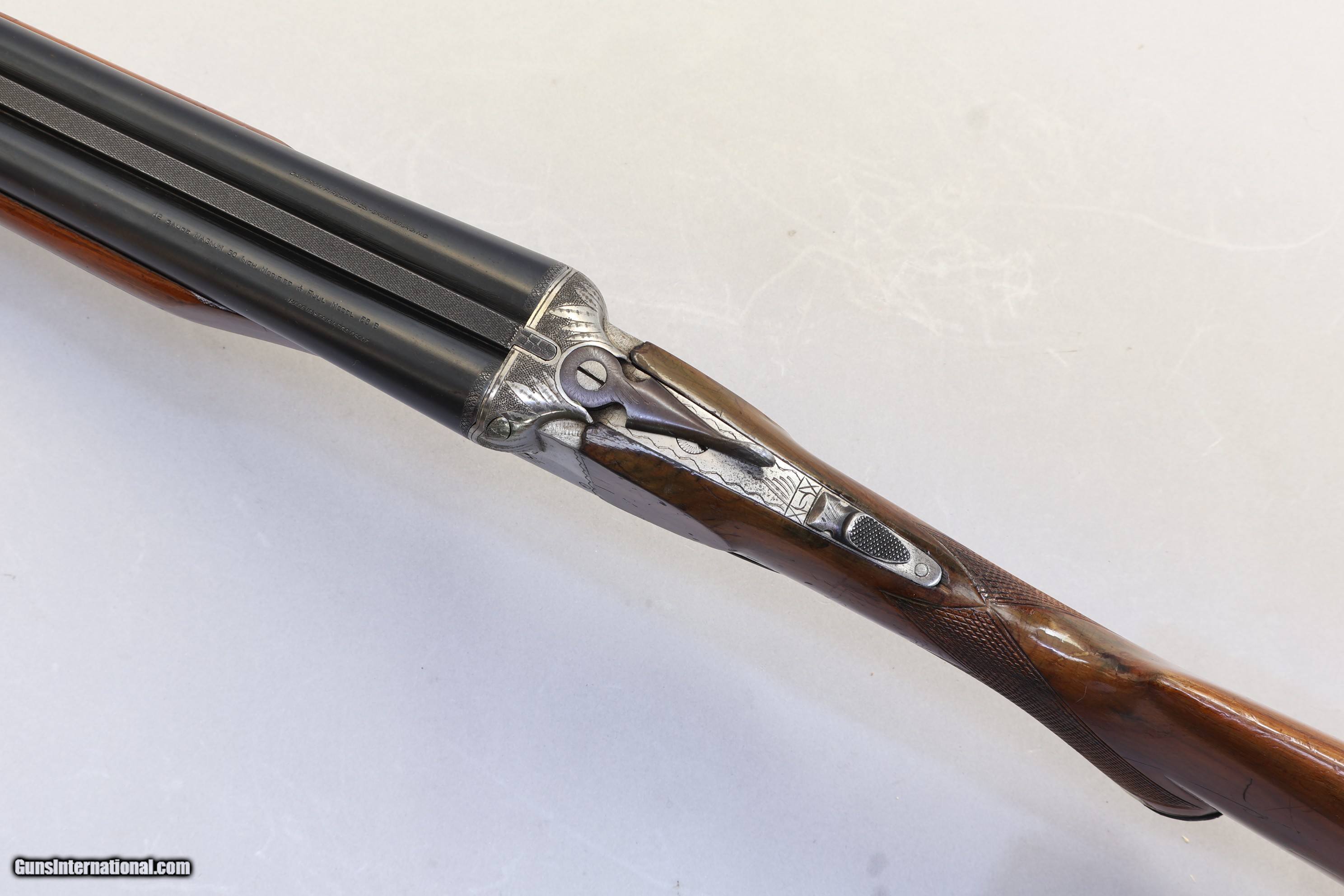Description: Davidson Boxlock Side by Side, 12 Ga, 29 3/4" Barrels 3" Chambers | Fixed choke L: Full / R: Mod | Overall Length 47 3/10" | Very Good Condition | No Case Davidson Boxlock Side by Side, 12 Ga, a classic Spanish-made boxlock shotgun blending traditional hand craftsmanship with field-ready performance. This model features a solid rib and a wood pistol-grip stock, fixed chokes, and a double-trigger action for reliable field shooting. Dating to 1968 in Spain, this Magnum side-by-side is a classic example of Davidson's boxlock craftsmanship. It features 29 3/4" barrels with 3" chambers, fixed chokes (L: Full / R: Mod), a solid rib, and a wood pistol-grip stock. LOP 14 1/2", LOP to Wood 13 5/8", Cast Right, DAC 1 3/4", DAH 3", Weight 7 2/5 lbs. Barrels are in good condition with a few surface scratches and a tiny area of surface corrosion on underside; 85% of bluing on underside of receiver remains. Two brass bead sights. Break action working well. It is licensed for FFL.