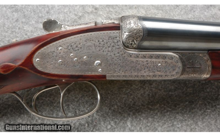 Description: This is a high Grade Grulla Royal Holland shotgun. The fine shotgun has had very little use and is in like new condition. This shotgun features the following. An extremely strong drog forged steel action frame, complete with gas escape valves, intercepting safety sears and cocking indicators, H&H style assisted opening action. Entirely hand engraved, every detail painstakingly critiqued by master Basque engravers. Drop forged chopper-lump barrels made of superb quality Bellota, Nickel chromium steel. Disc set strikers and automatic selective ejectors. Exhibition grade, specially selected, walnut stock and forearm finished in a best quality, hand rubbed oil finish, Gold oval for the initials fitted on the stock. And a best quality, leather trunk style fitted case. This is a bargin priced shotgun. SOLD Manufacturer: 1999 Caliber Info: 12 Gauge. Chambers: 3 Inch Side X Side with ejectors. Metal Condition: As new. Wood Condition: As new. Bore Condition: As new. Barrels: 29 Inch Drop forged chopper-lump barrels. with a self opener. Triggers: Double. Stock: Exhibition grade, specially selected, walnut stock and forearm finished in a best quality, hand rubbed oil finish with a checkered straight stock. Stock Dimensions: 14 5/8 inch LOP, 1 5/8 inch DAC, 2 3/8 inch DAH. Fore End: Matching checkered walnut with coin finished engraving on the metal. Butt Pad: French checkered wood. Weight: 6 Lbs 14 Oz. Sights: Single small brass bead on a slim concave rib. Chokes: Fixed IM, IC. Extras: Comes with the makers case. Item Location: Owatonna, MN |