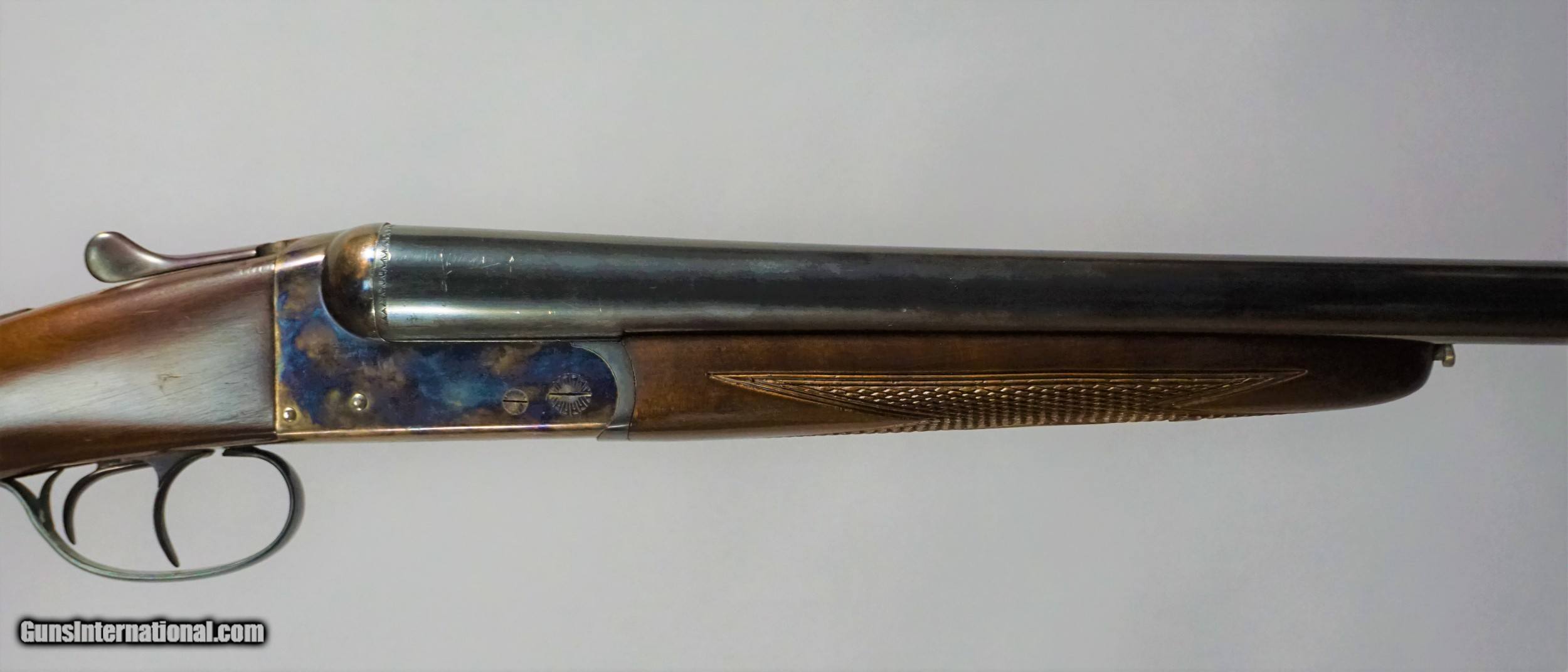 Description: Very nice condition, 12 ga 28" bbls,excellent bores, choked .013"/.030"(IC/IM), extractors, 14&5/8" LOP over a thin plate, 1&1/2"DAC, 2&3/8" DAH, 6lbs 12ozs, some handling marks in the stock and one pretty deep dent in the wood, a few scratches in the barrel blue but bores are great, no pitting and remain dent free, 99% case colors remain, trigger guard blue 100%, This gun has been used very little. SOLD |