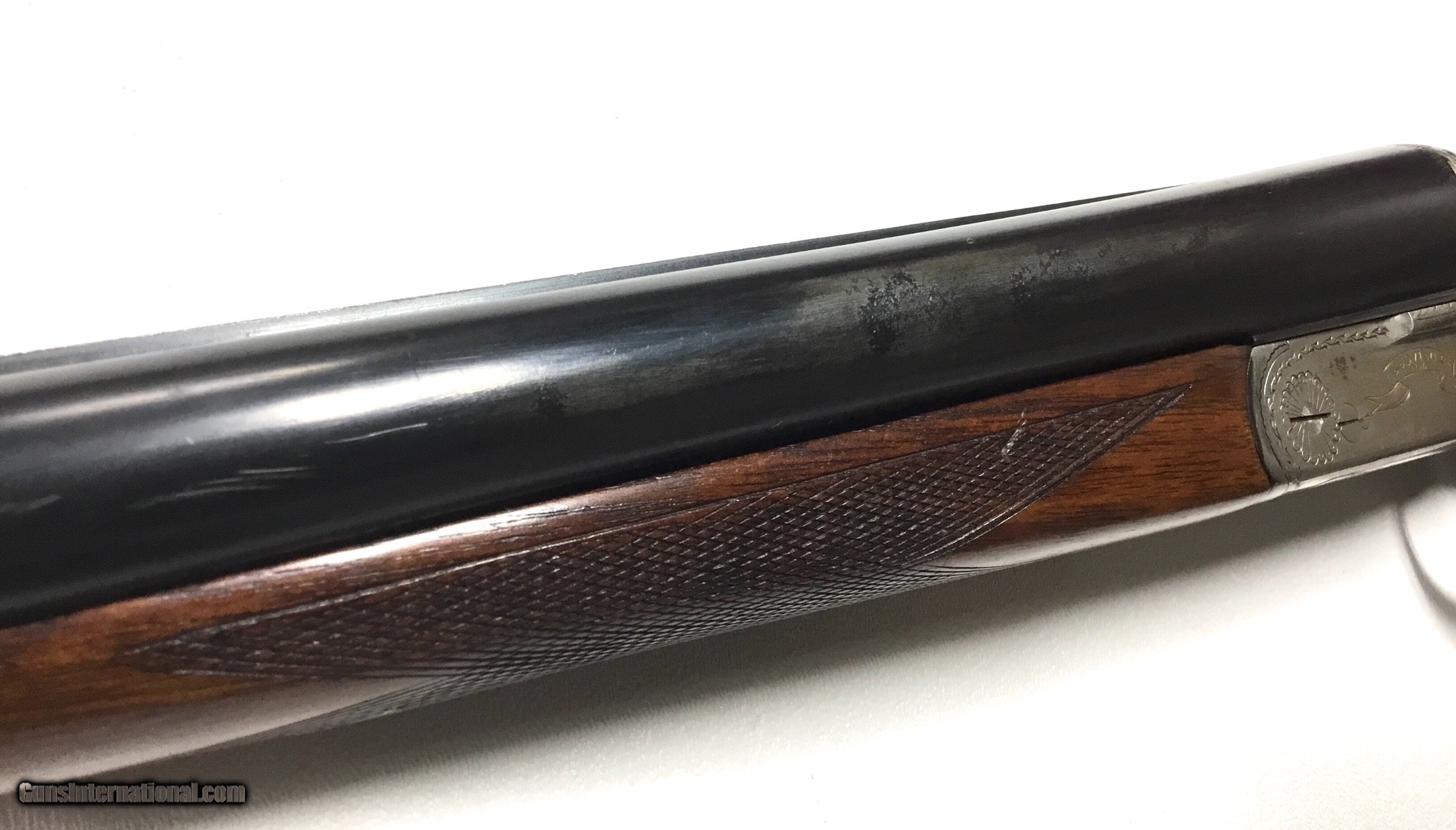 Description: J.JOVINO Co. MODEL 4 FIELD 12 GAUGE 28” BARRELS SxS. Brass bead front sight, silver center sight, checkered pistol grip and forearm, plastic buttplate. Weight: 6 Lbs 9.5 Oz, Drop Comb: 1 1/4”, Face: 1 11/16”, Heel: 1 15/16”. LOP: 14 3/16”, Cast Face + Heel: Zero, Chamber: 2 3/4”, Choke: R: IM, L: IM, Auto Safety. Pictures show handling marks. Made in Spain. #3874, SN: A0815, $595.00. Hampel’s Gun Co since 1919. SOLD |