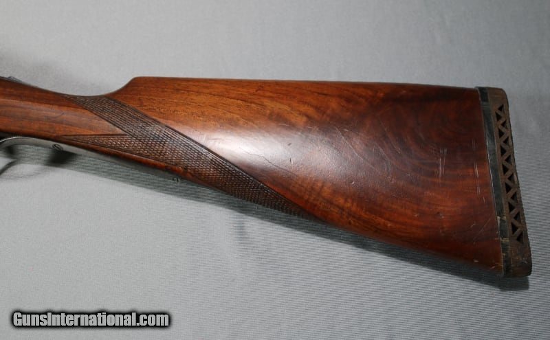 Description: Another example of a nice Spanish side by side. Julian Arana "La Sorda" 12 gauge with 27 3/4" barrels. Barrels have lost their finish but no rust on them. Butt pad is not original to the shotgun. 12 Gauge SOLD Metal Condition: good Wood Condition: good Bore Condition: bright Barrels: 27 3/4" barrels Triggers: dual triggers Stock Dimensions: 14" LOP Fore End: checkered wood Butt Pad: "rubber, not original to the shotgun Weight: 6 lb - 14 oz. Sights: bead front sight Chokes: "fixed chokes; right barrel - M, left barrel - F Item Location: Council Bluffs, IA |