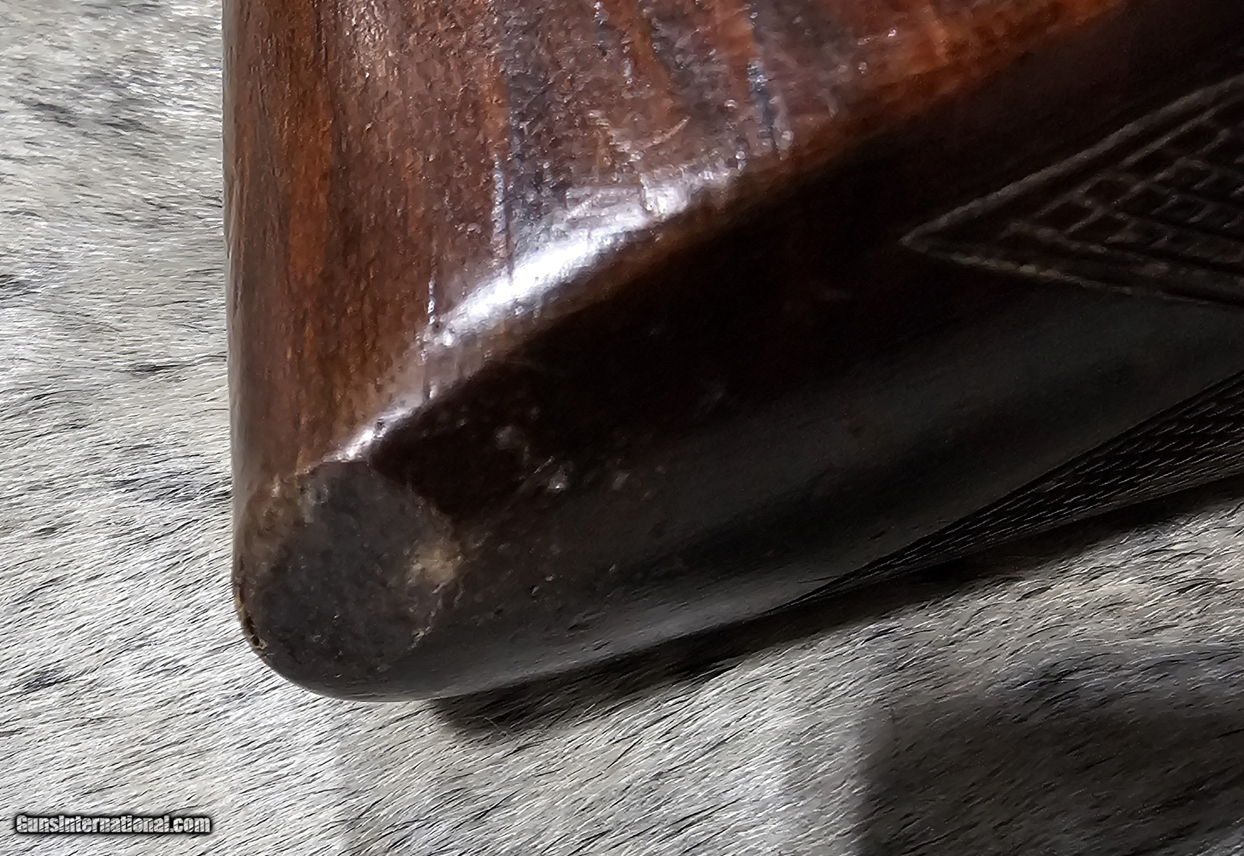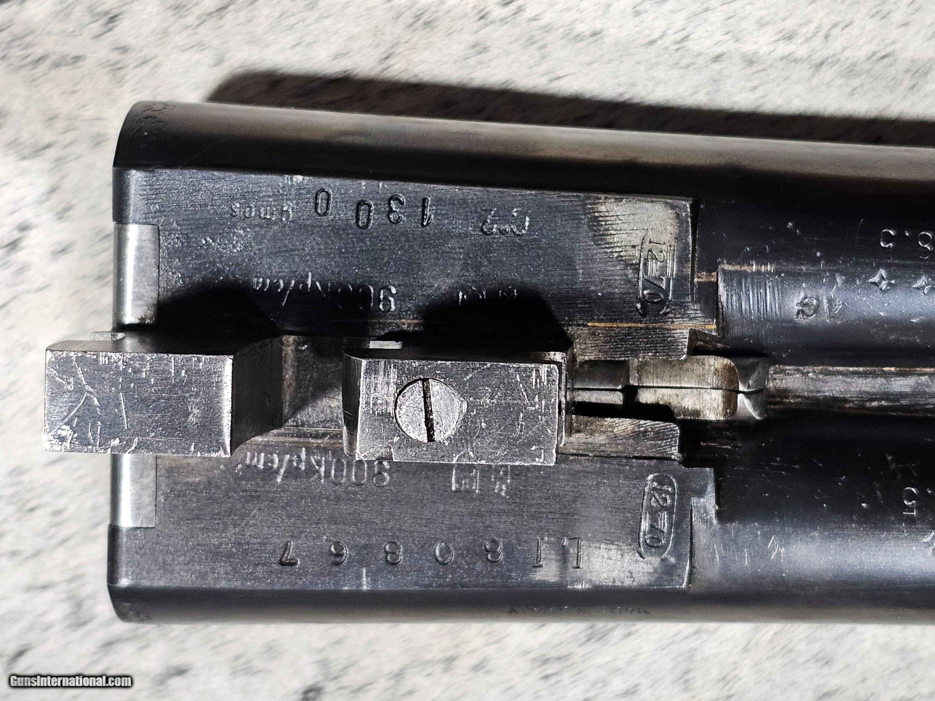 Description: LIG Elgoibar 12 Ga Side Lock double with double triggers and ejectors. 2 3/4" chambers choked IC & IC with 14 1/4" LOP 1 3/8" DAC 2 1/4" DAH. Condition, Very fine with most all finish remaining. Mechanically fine. Very small chip at toe. • Free Shipping, No Credit Card Fees. • Lay-a-way available for this firearm. • 1/3 Down, a 1/3 in 30 Days 1/3 in 60 Days. SOLD Shotgun Gauge: 12 Gauge Manufacturer: LIG Elgoibar Model: Sidelock Ejector Serial Number: 80867 Barrel Length: 27 1/4 |