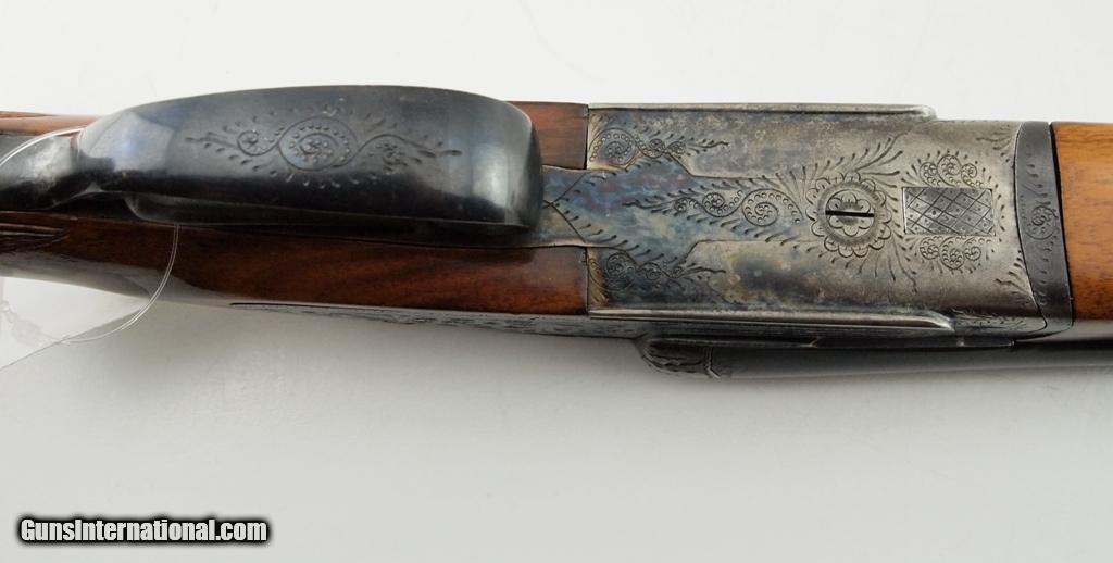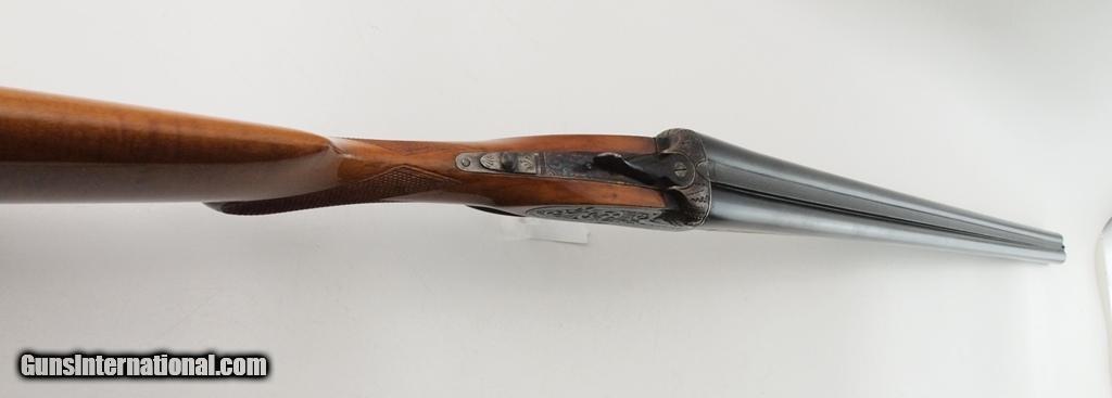 Description: Larrnaca Spanish, SXS, 20 GA, 28" fixed choke IMOD/MOD bbls, brass bead front sight, blued finish, very nicely engraved case hardened receiver, beautiful checkered wooden butt stock - forearm, double triggers, LOP - 14 3/4" & 14", DAC - 1 3/4", DAH - 3", and red rubber recoil pad. This shotgun is inexcellent condition. Add 3% for Credit Card Shipping $30.00 SOLD |