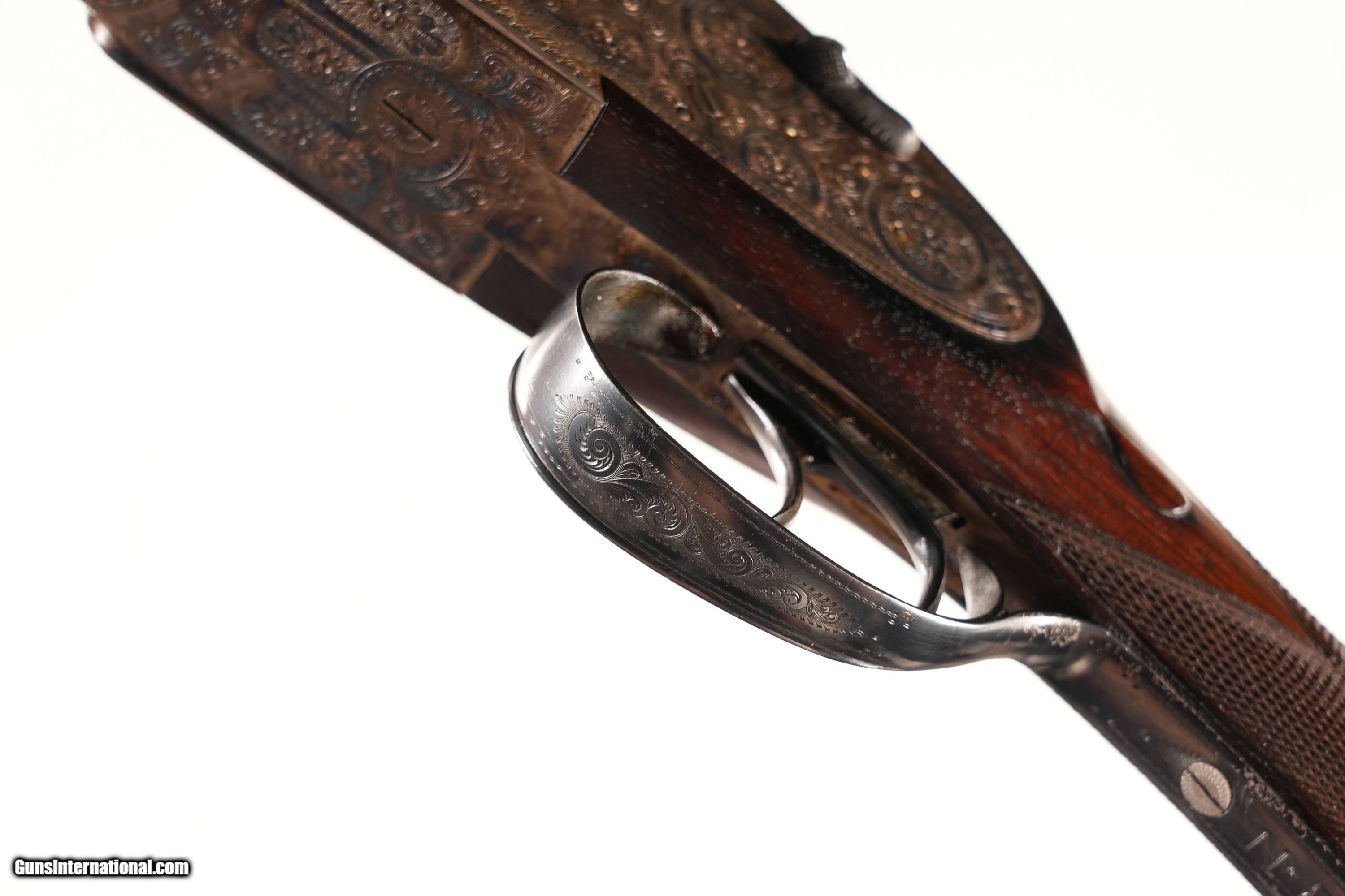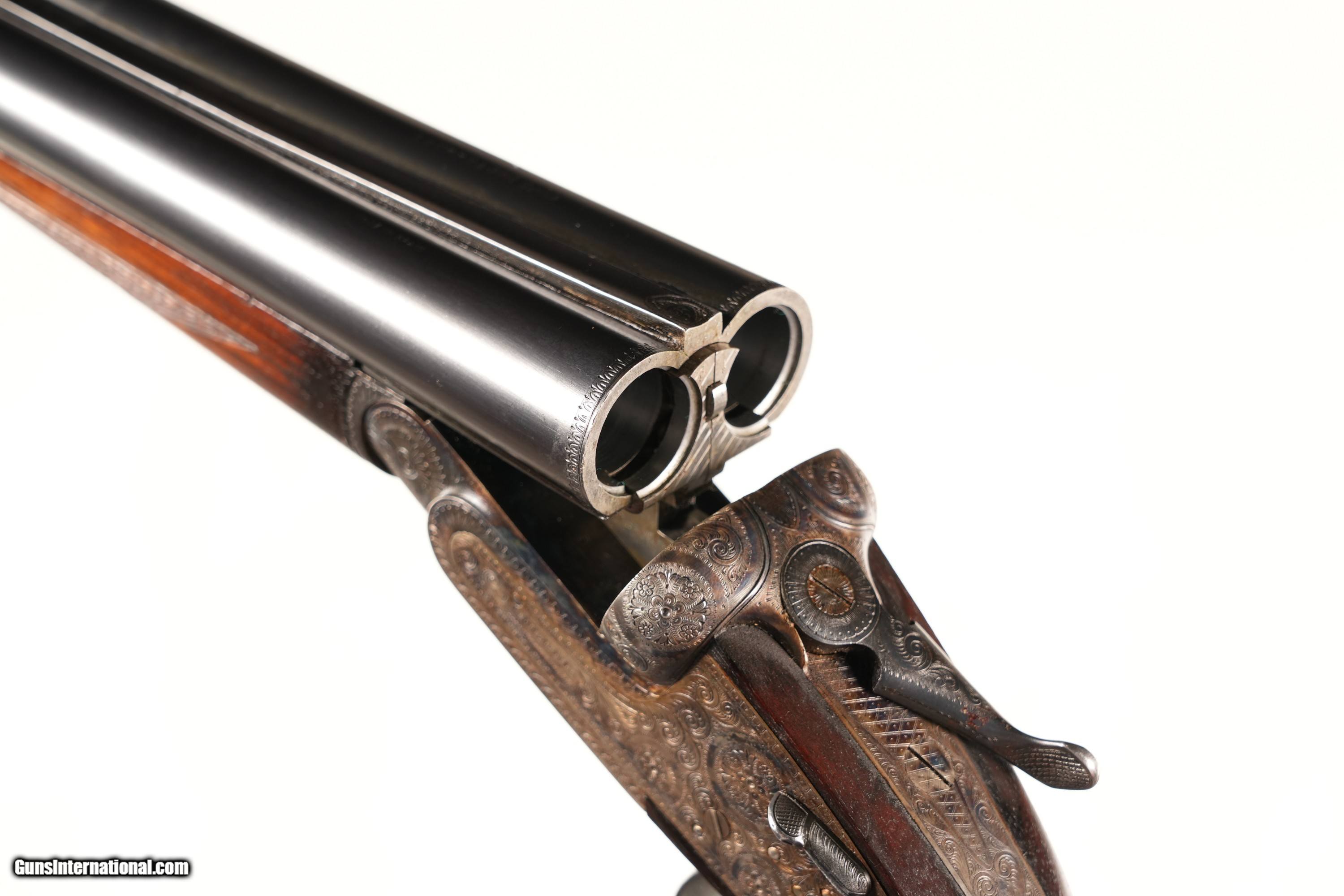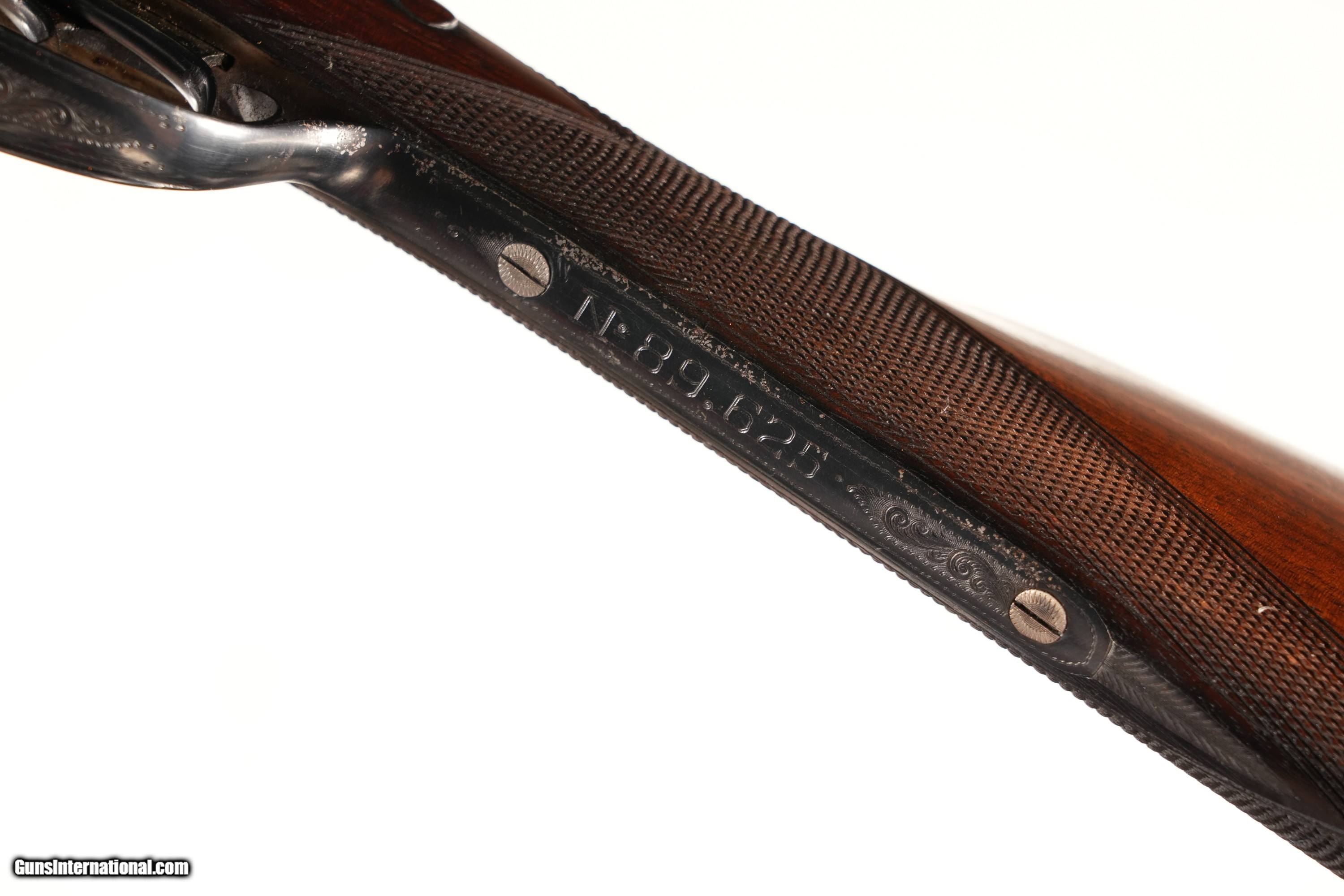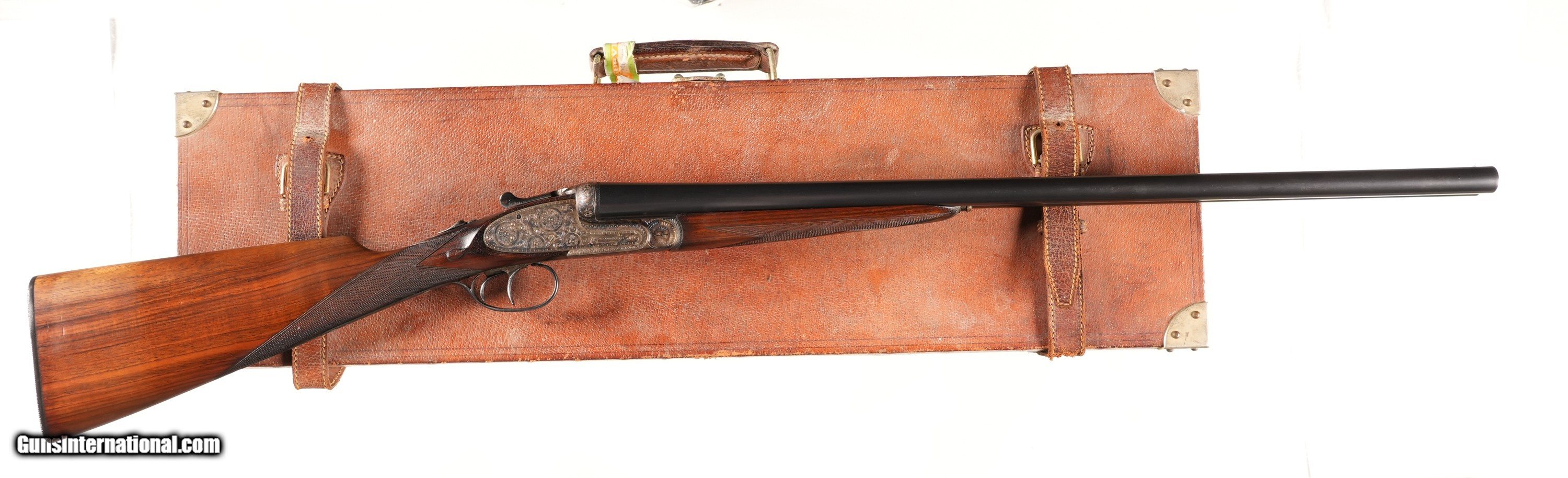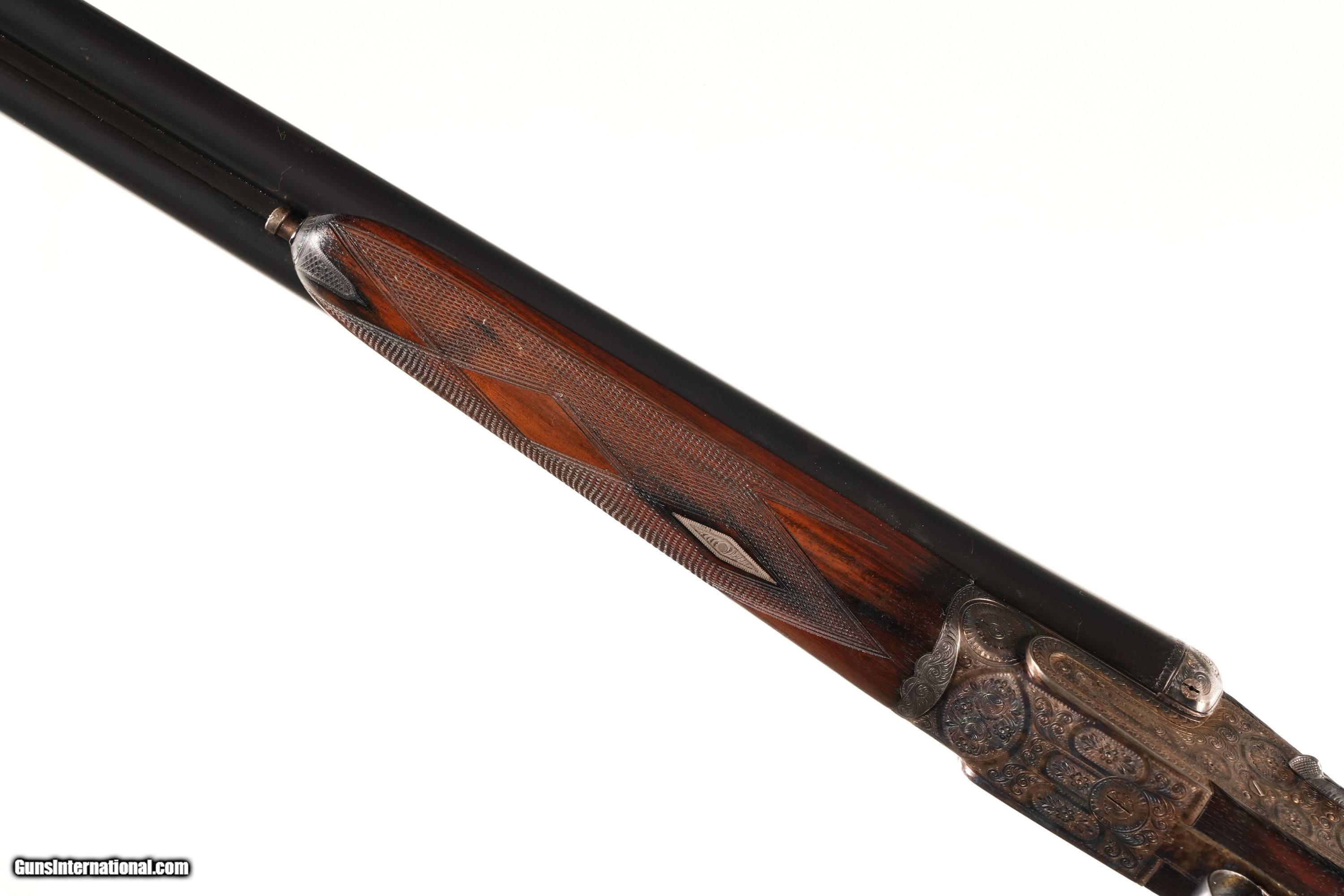 Description: Laurona Best Quality Detachable Side Lock , 9 pin with cocking indicator 12 Bore double shotgun choked IC & IC with Purdey 3rd bite. Profusely engraved with scroll & foliate and case colored locks and receiver. 32 LPI checkering at wrist and forearm with 14" LOP 1 1/2" DAC 2 3/8" DAH 6 lbs 4 oz. Housed in leather hard trunk case. Condition, Exceptionally fine with brilliant bores and 99% barrel finish 99% case colors and superb wood. Mechanically excellent . Case is very fine. One of the finest buys on the firearms market today. Mfd 1972 • Free Shipping, No Credit Card Fees. • Lay-a-way available for this firearm. • 1/3 Down, a 1/3 in 30 Days 1/3 in 60 Days. SOLD Curio/Relic: Yes Manufacturer: Laurona Model: Sidelock Serial Number: 89625 Barrel Length: 26 |