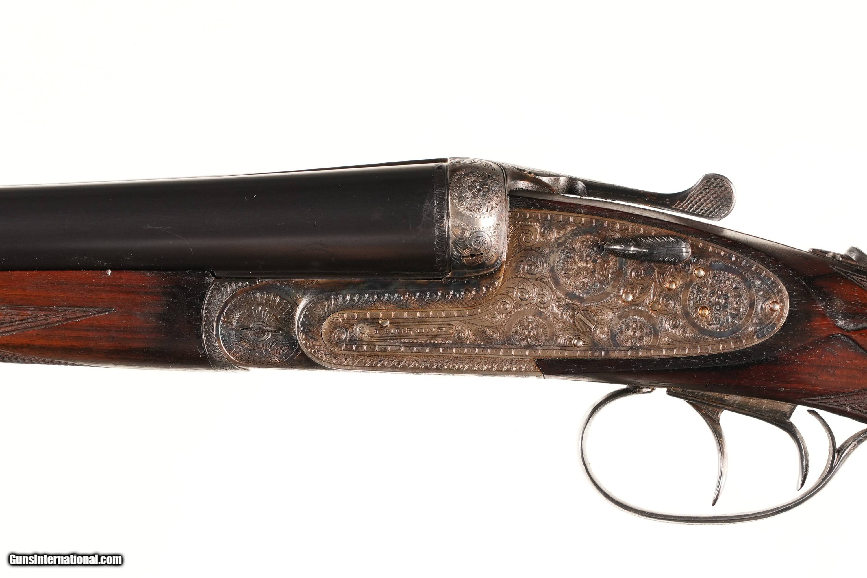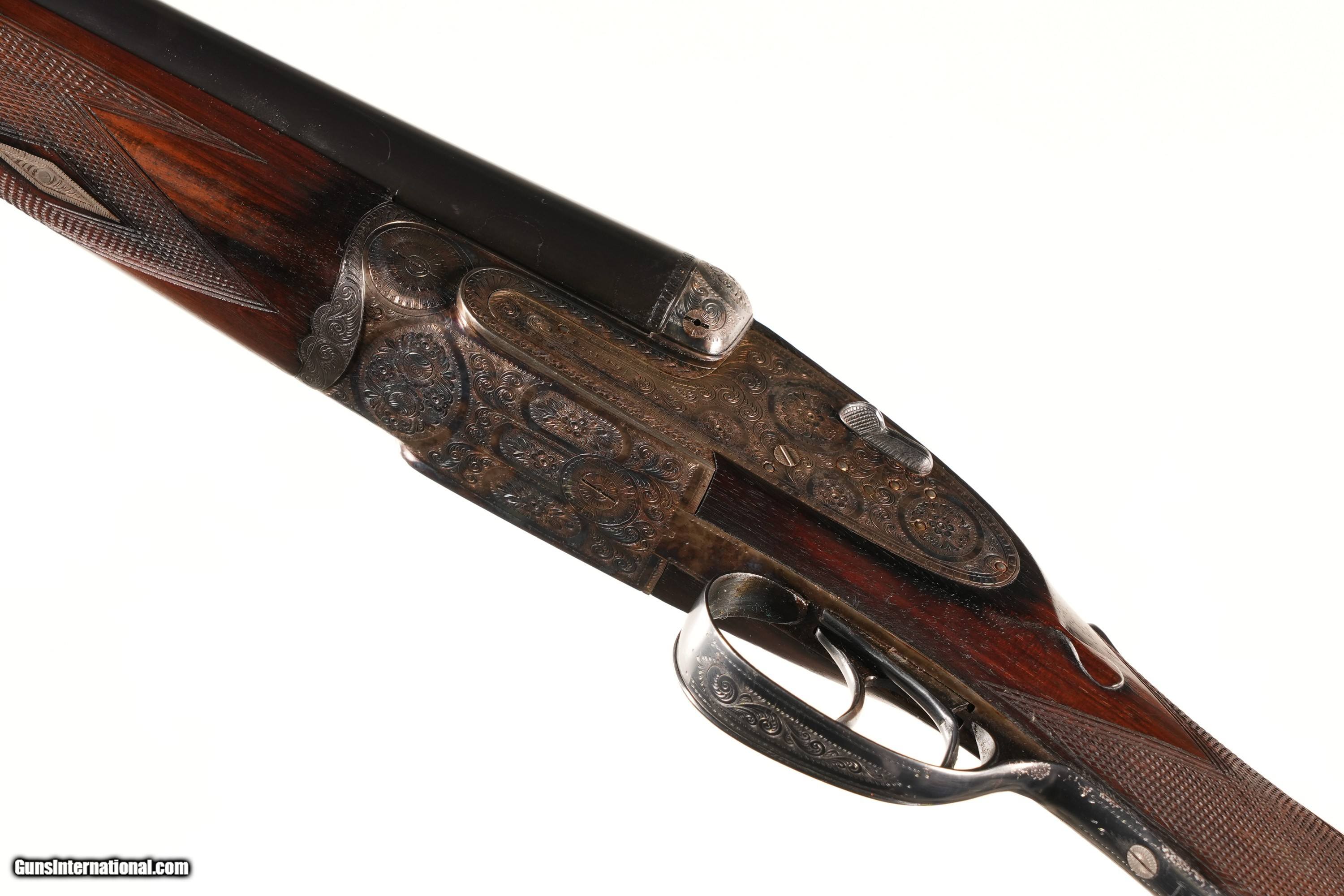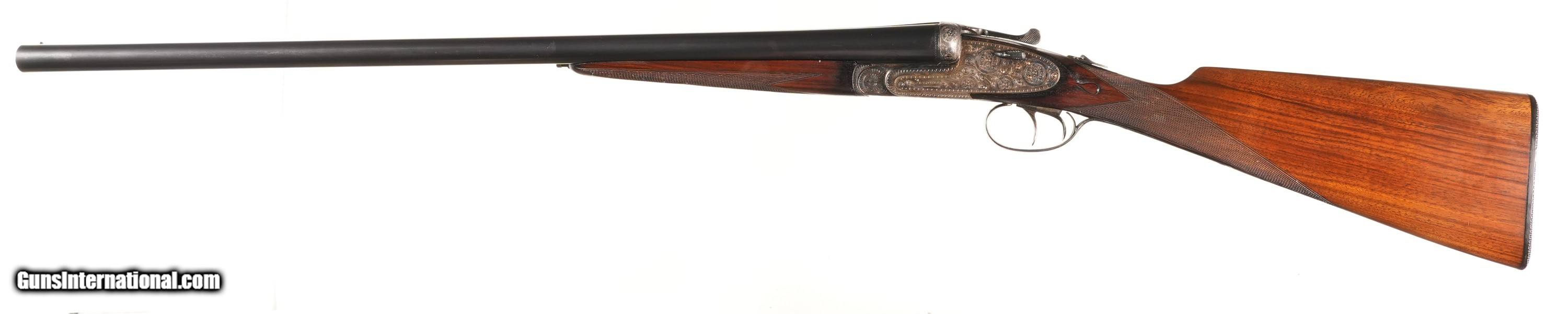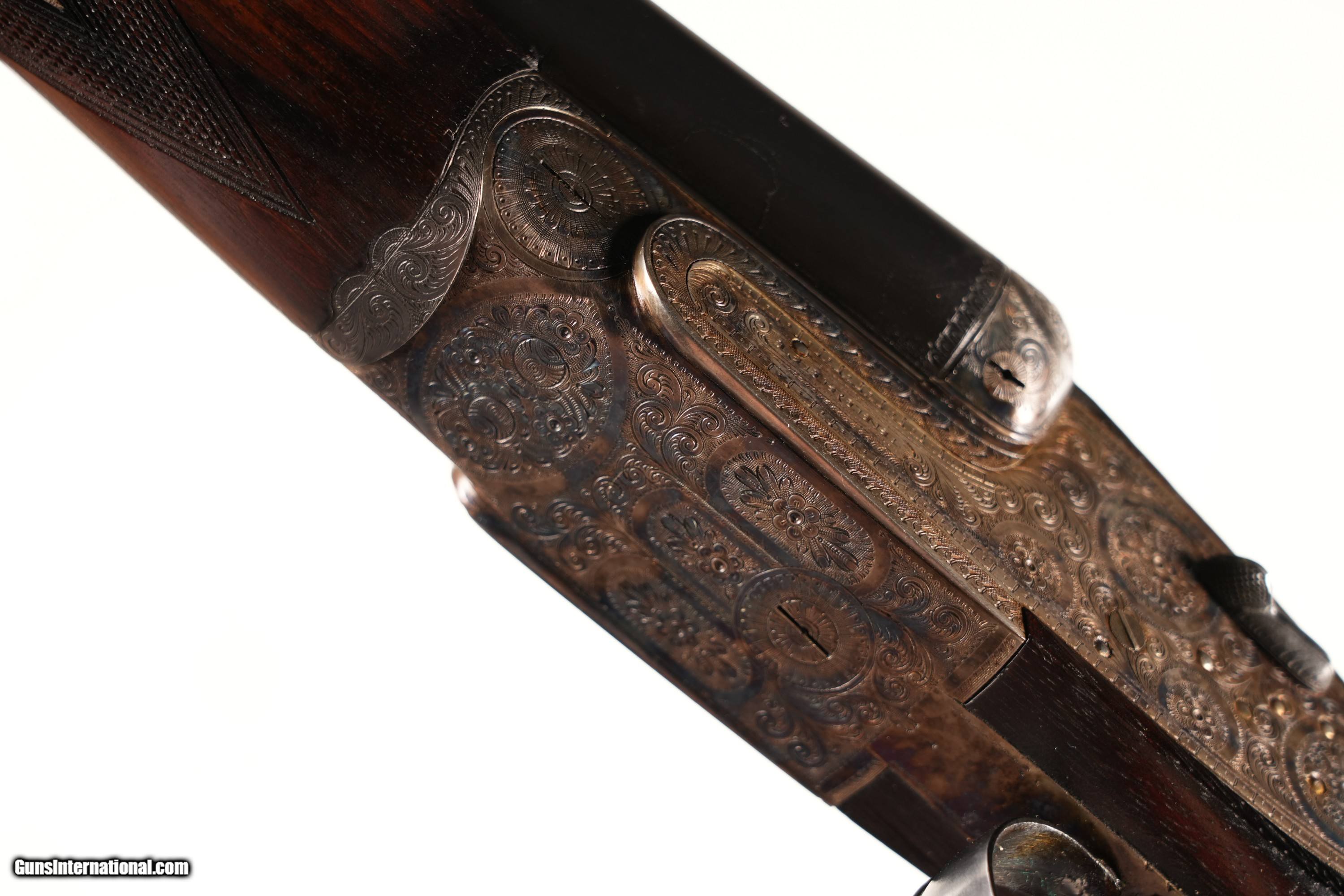 Description: Laurona Best Quality Detachable Side Lock , 9 pin with cocking indicator 12 Bore double shotgun choked IC & IC with Purdey 3rd bite. Profusely engraved with scroll & foliate and case colored locks and receiver. 32 LPI checkering at wrist and forearm with 14" LOP 1 1/2" DAC 2 3/8" DAH 6 lbs 4 oz. Housed in leather hard trunk case. Condition, Exceptionally fine with brilliant bores and 99% barrel finish 99% case colors and superb wood. Mechanically excellent . Case is very fine. One of the finest buys on the firearms market today. Mfd 1972 • Free Shipping, No Credit Card Fees. • Lay-a-way available for this firearm. • 1/3 Down, a 1/3 in 30 Days 1/3 in 60 Days. SOLD Curio/Relic: Yes Manufacturer: Laurona Model: Sidelock Serial Number: 89625 Barrel Length: 26 |