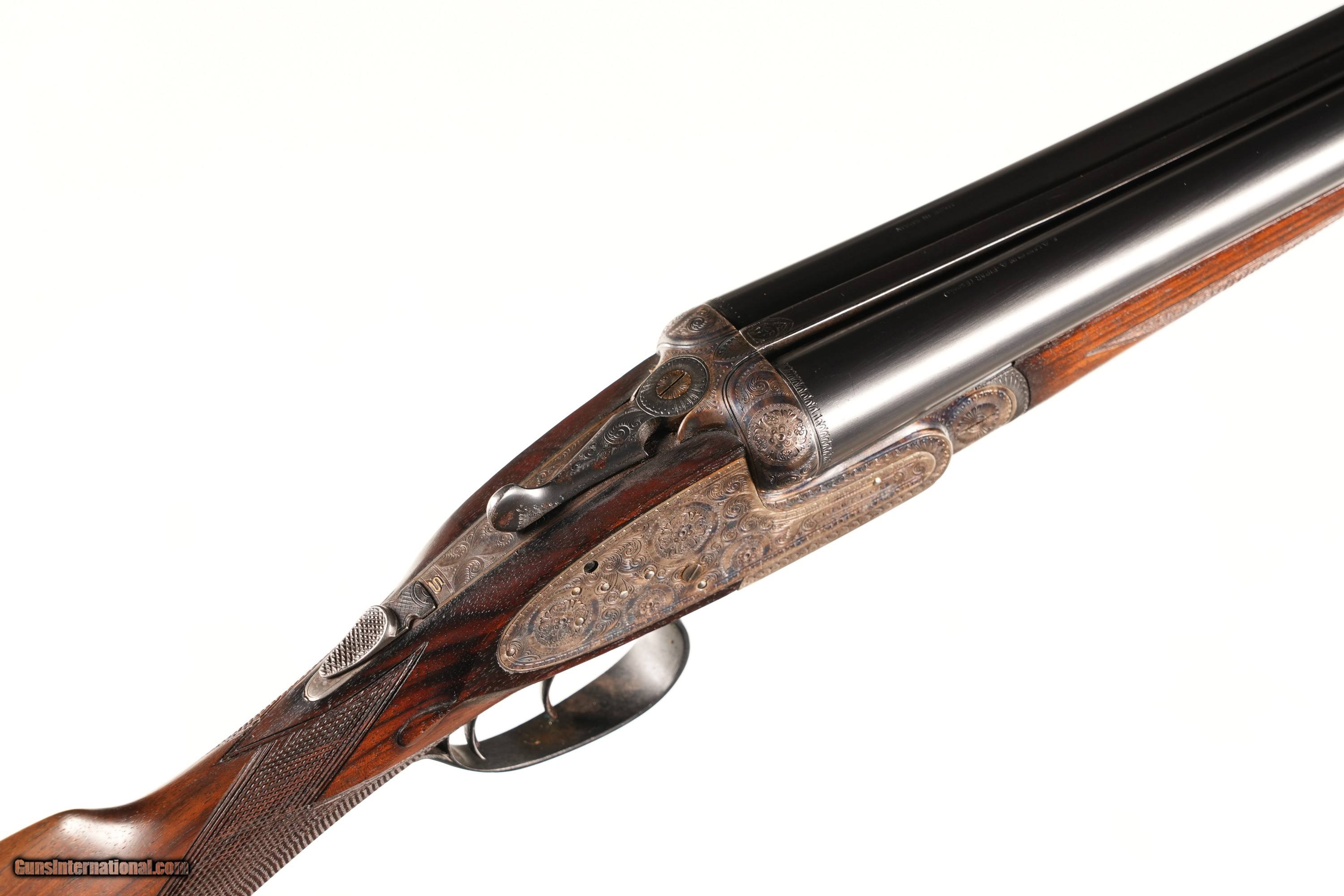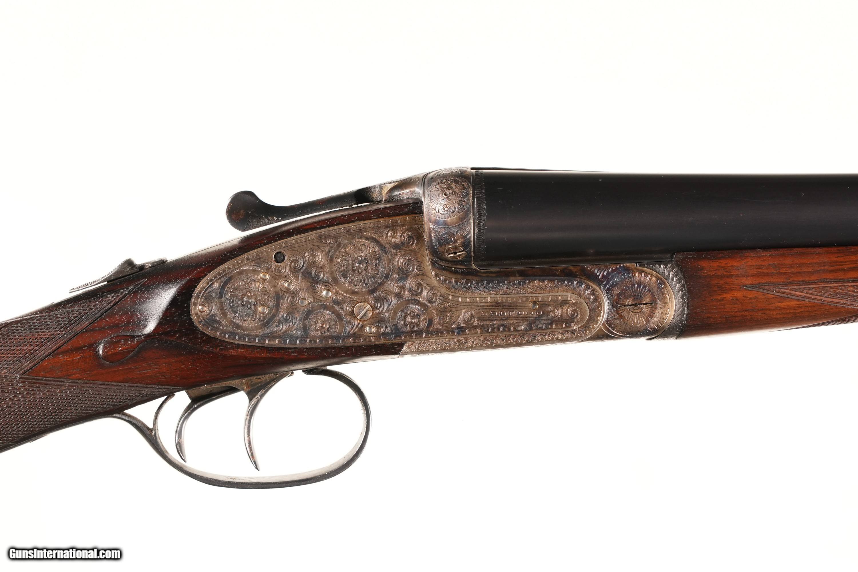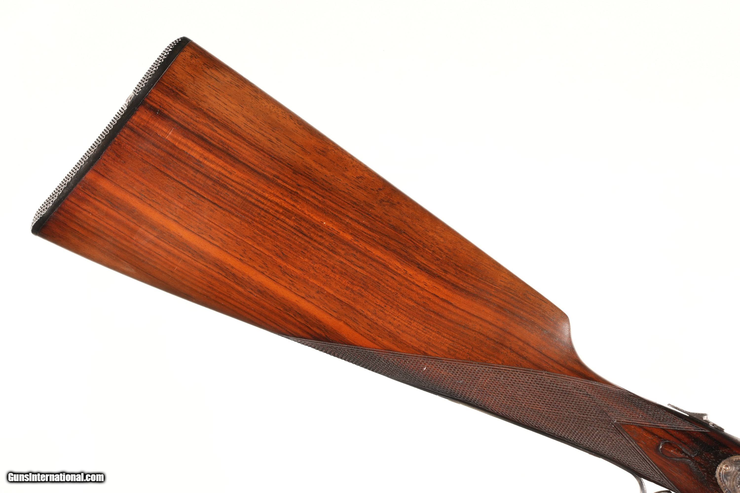 Description: Laurona Best Quality Detachable Side Lock , 9 pin with cocking indicator 12 Bore double shotgun choked IC & IC with Purdey 3rd bite. Profusely engraved with scroll & foliate and case colored locks and receiver. 32 LPI checkering at wrist and forearm with 14" LOP 1 1/2" DAC 2 3/8" DAH 6 lbs 4 oz. Housed in leather hard trunk case. Condition, Exceptionally fine with brilliant bores and 99% barrel finish 99% case colors and superb wood. Mechanically excellent . Case is very fine. One of the finest buys on the firearms market today. Mfd 1972 • Free Shipping, No Credit Card Fees. • Lay-a-way available for this firearm. • 1/3 Down, a 1/3 in 30 Days 1/3 in 60 Days. SOLD Curio/Relic: Yes Manufacturer: Laurona Model: Sidelock Serial Number: 89625 Barrel Length: 26 |