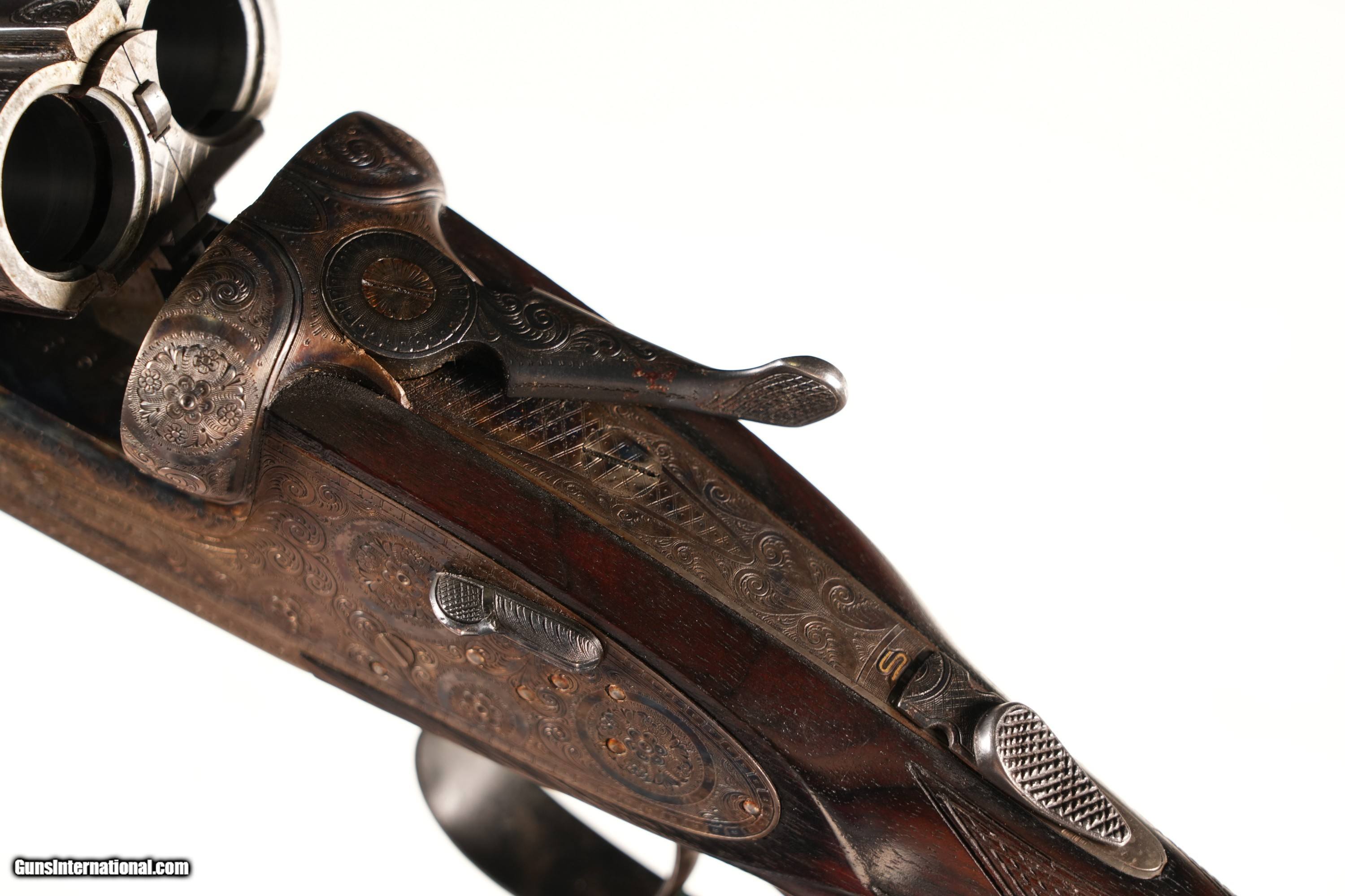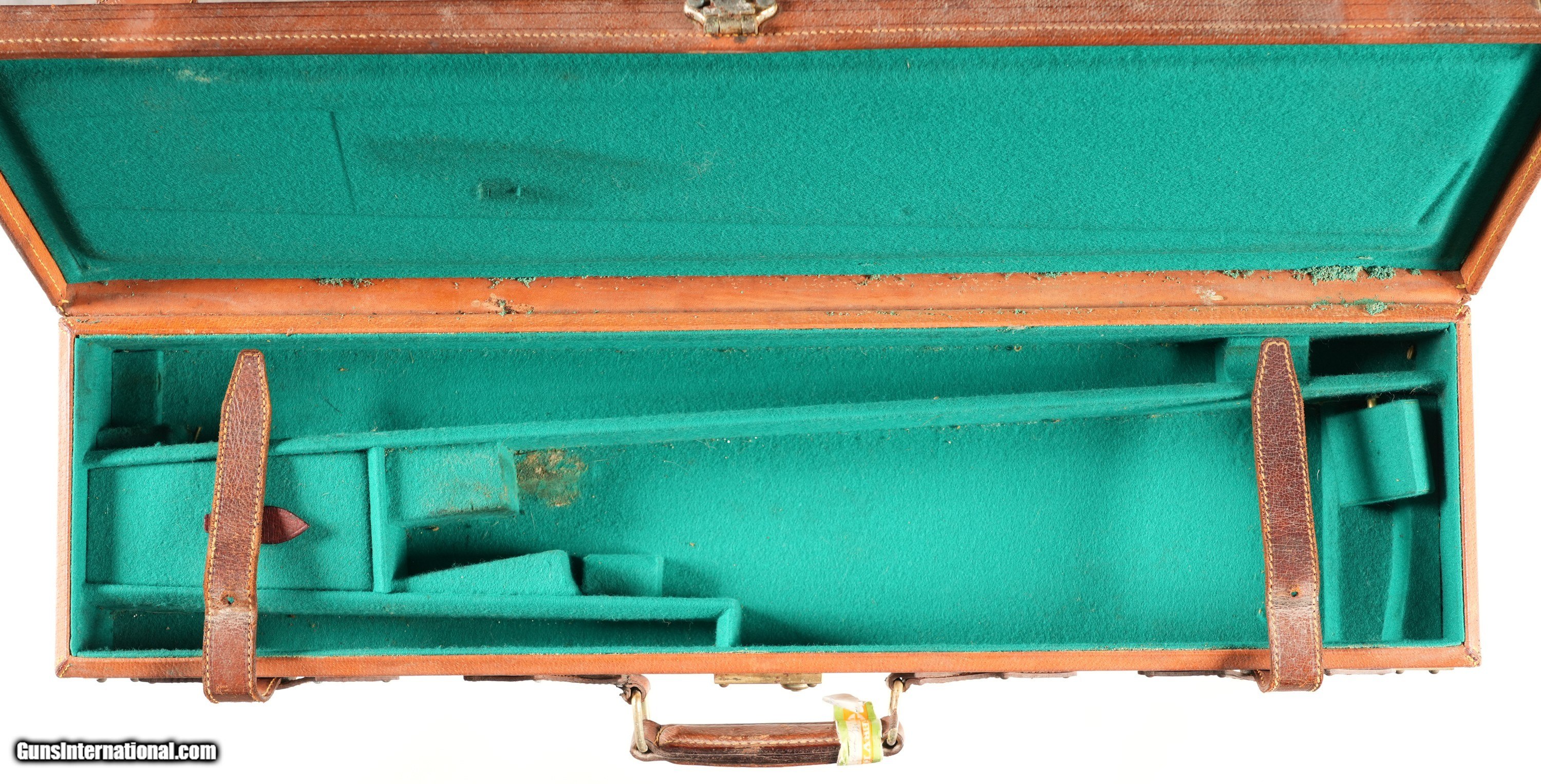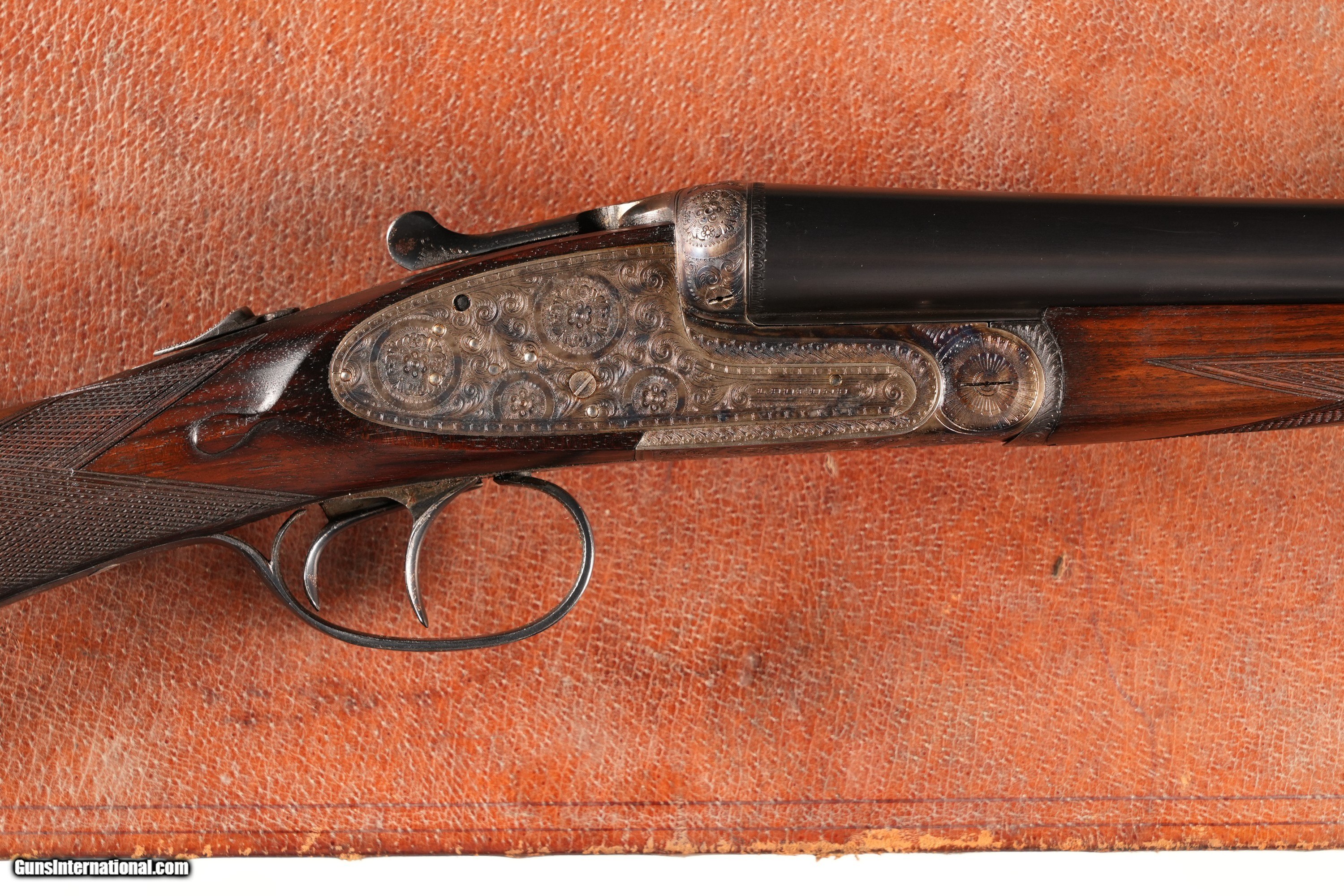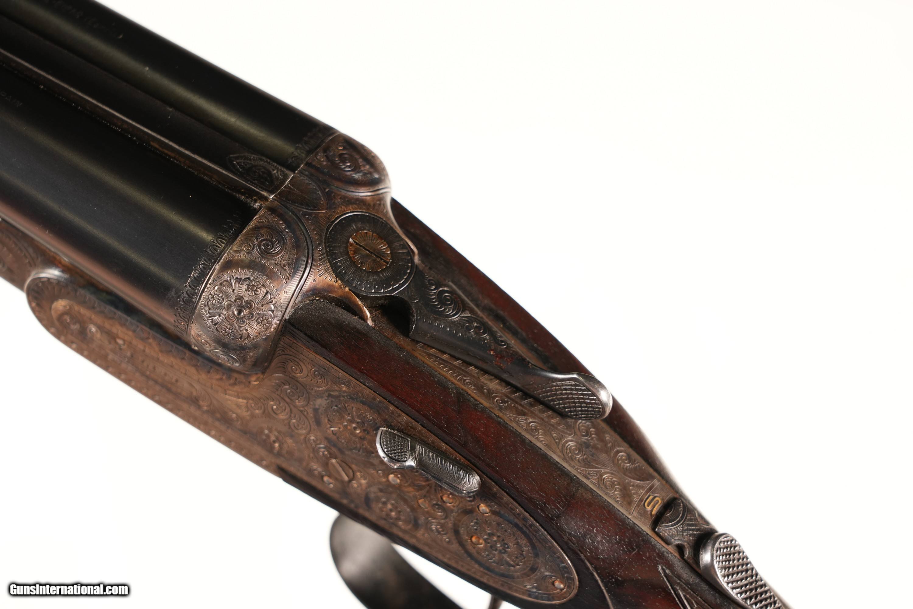 Description: Laurona Best Quality Detachable Side Lock , 9 pin with cocking indicator 12 Bore double shotgun choked IC & IC with Purdey 3rd bite. Profusely engraved with scroll & foliate and case colored locks and receiver. 32 LPI checkering at wrist and forearm with 14" LOP 1 1/2" DAC 2 3/8" DAH 6 lbs 4 oz. Housed in leather hard trunk case. Condition, Exceptionally fine with brilliant bores and 99% barrel finish 99% case colors and superb wood. Mechanically excellent . Case is very fine. One of the finest buys on the firearms market today. Mfd 1972 • Free Shipping, No Credit Card Fees. • Lay-a-way available for this firearm. • 1/3 Down, a 1/3 in 30 Days 1/3 in 60 Days. SOLD Curio/Relic: Yes Manufacturer: Laurona Model: Sidelock Serial Number: 89625 Barrel Length: 26 |