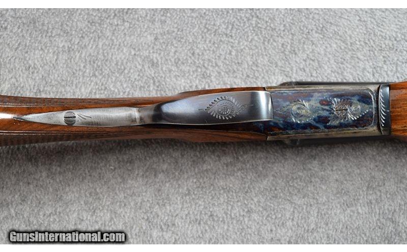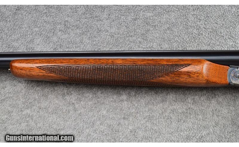 Description: This little Spanish beauty was manufactured in Spain and imported by Lawson Arms in Godfrey, Ill. This is in extractor gun in excellent overall condition. Wood is solid with few marks of any kind. Original blue is excellent showing only light wear on trigger guard and bottom tang. Engraving and case color are wonderful. Bore are excellent. This is a very nice gun in 28 GA. Tight lockup. No box. Beautiful! 28 Gauge SOLD Chambers: 2 3/4 Metal Condition: Excellent Wood Condition: Excellent Bore Condition: Excellent Barrels: 26" Solid Rib Triggers: Double Stock Dimensions: 14 1/2" LOP Fore End: Checkered Walnut Pistol Grip with Black Pistol Grip Cap - Checkered Walnut Beavertail Butt Pad: Pachmayr White Line Red Vented Rubber Butt Pad Weight: 6lbs Sights: Single Front Brass Bead Chokes: Full/Modified - Fixed Item Location: Wheeling |
