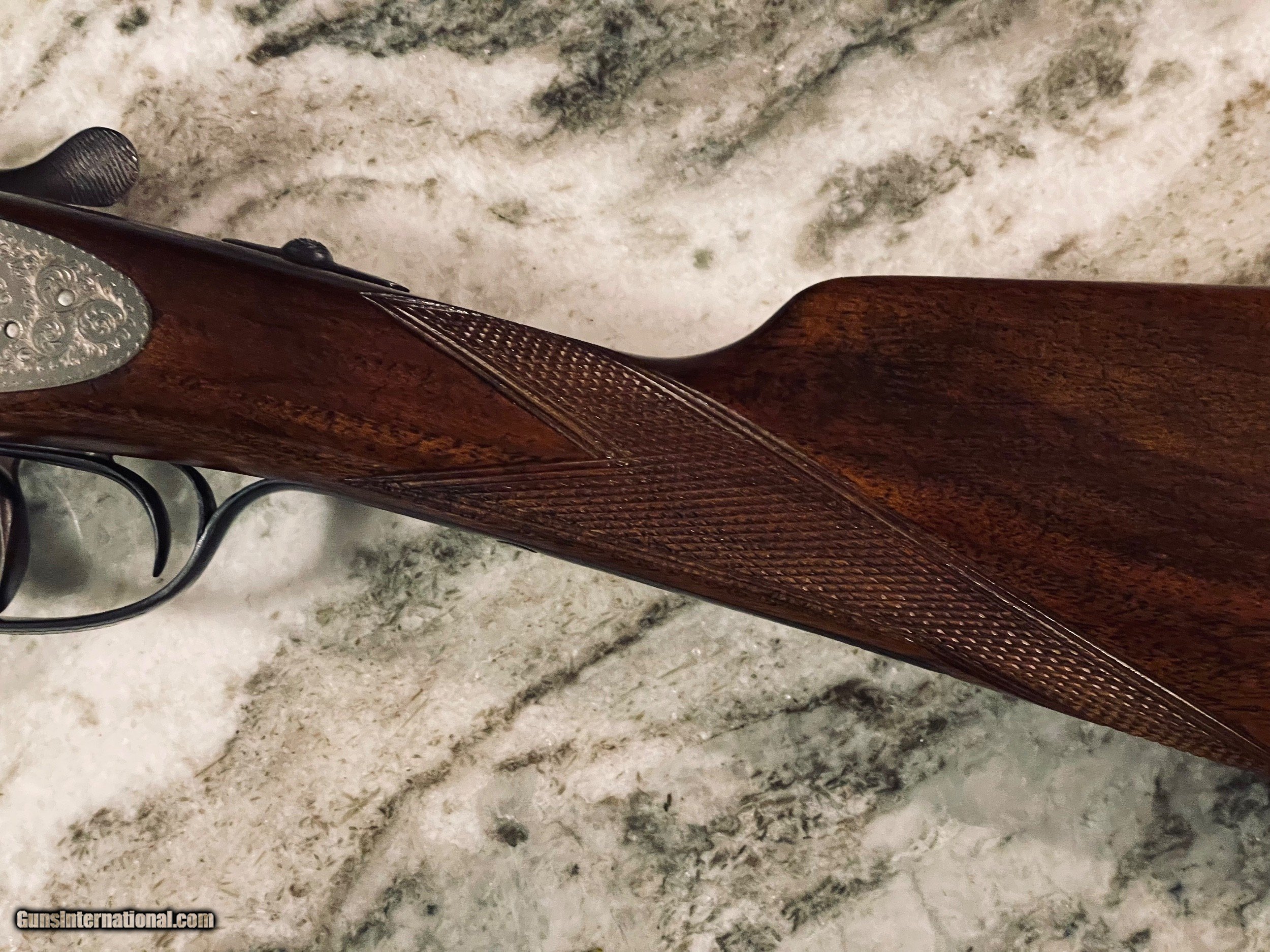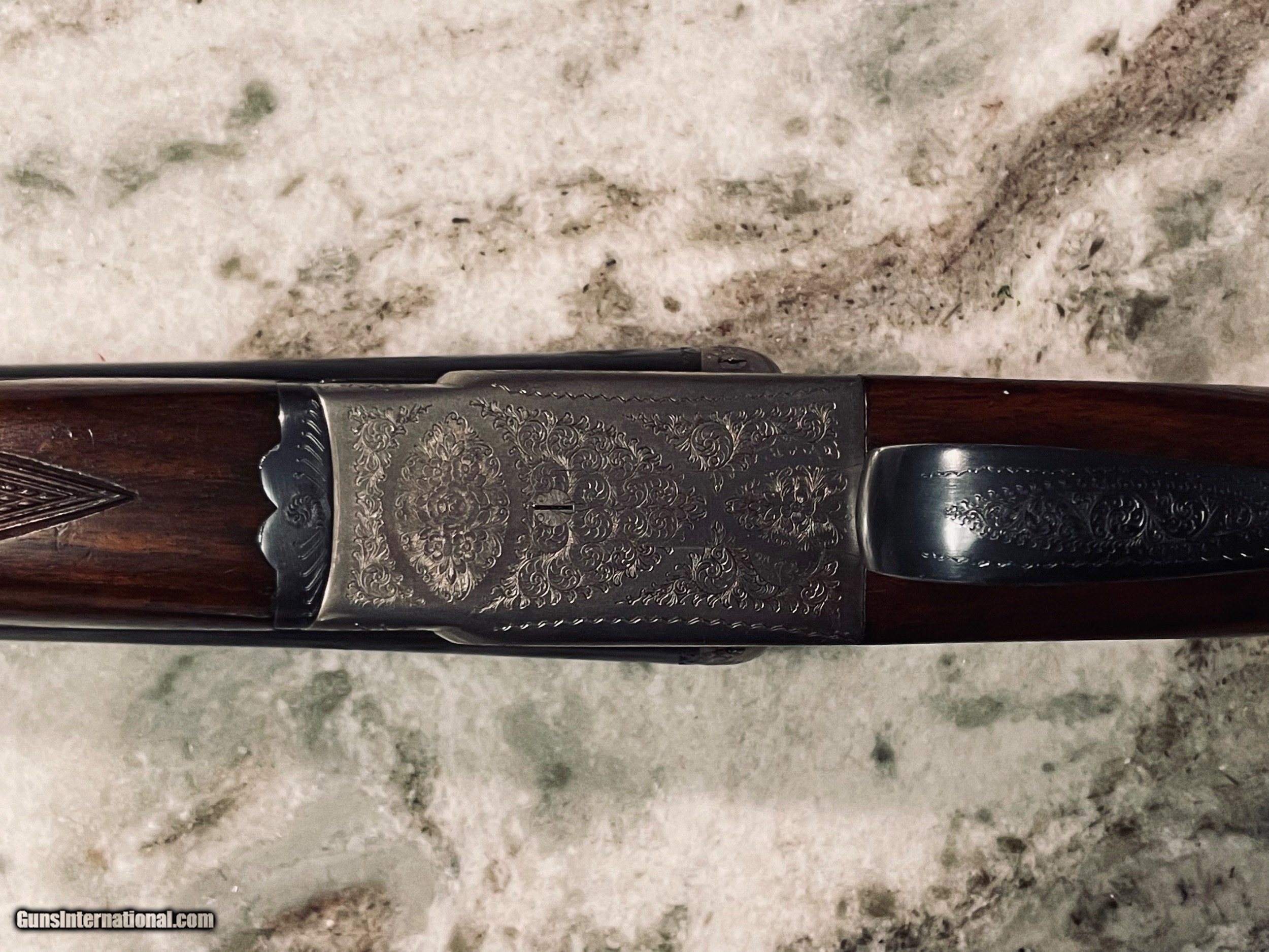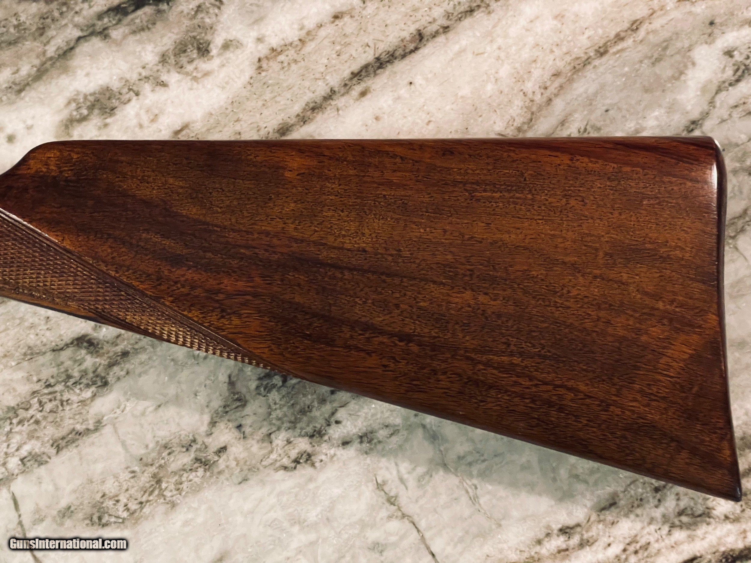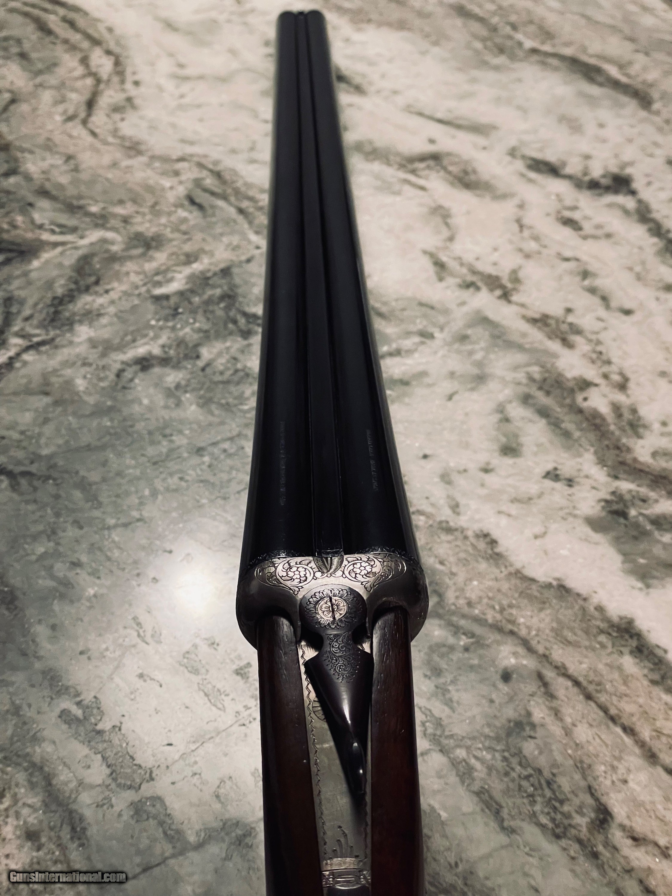 Description: Very rare round action Ugartechea 75EX in near new condition. Their best selling sidelock with a reputation of bomproof reliability. Excellent condition wood and metal. Sharp checkering. Clean bores and chambers. Locks up tight as new. Perfectly balanced gun at 6lbs even. Specifications are below. Email or call 786-375-1709 for any additional information. 27" Barrels 14 3/4" LOP 1 1/2" DAC 2 1/4" DAH Ejectors 2 3/4" Chambers IC/M Choked 6lbs 1/8 right hand "cast off SOLD |