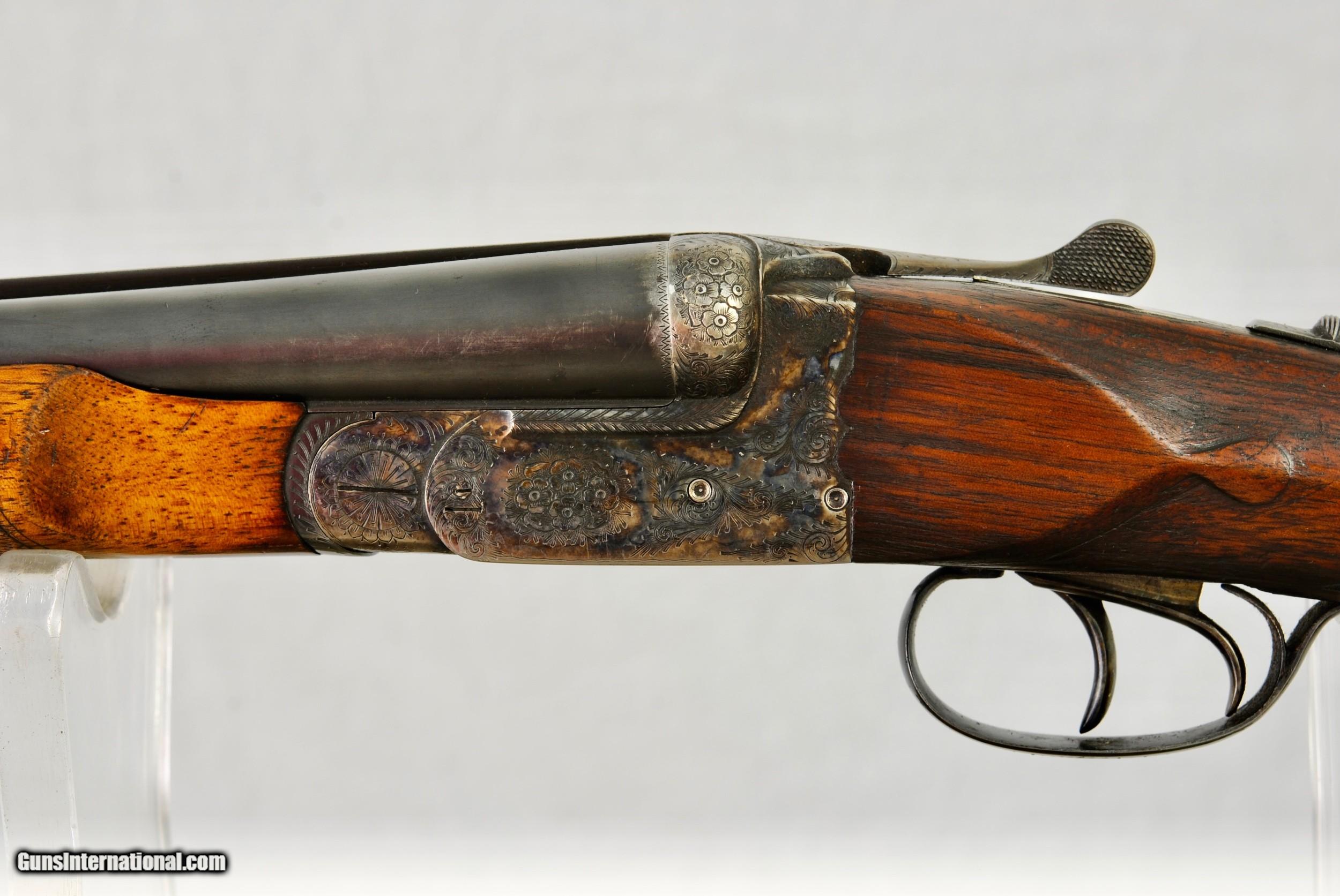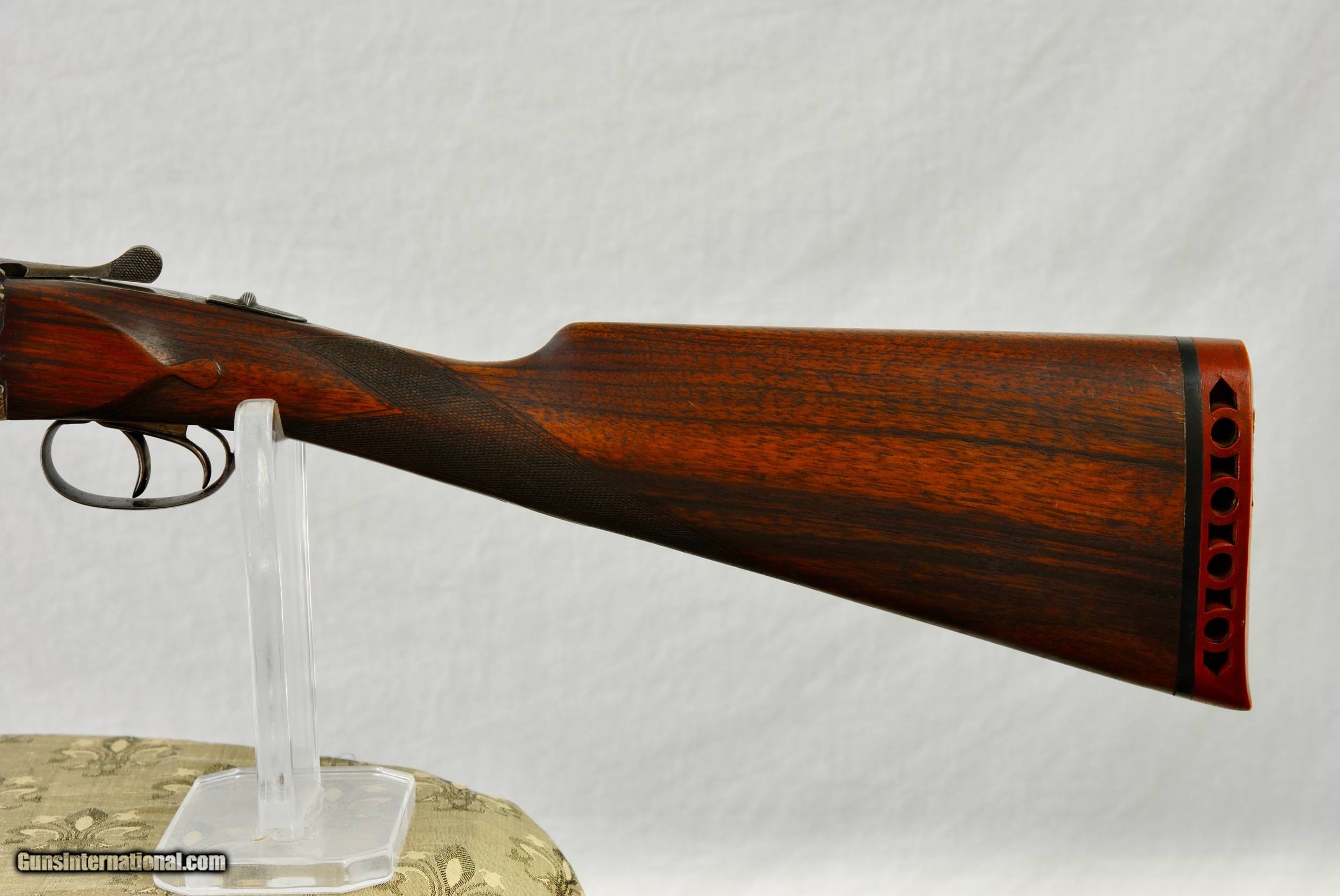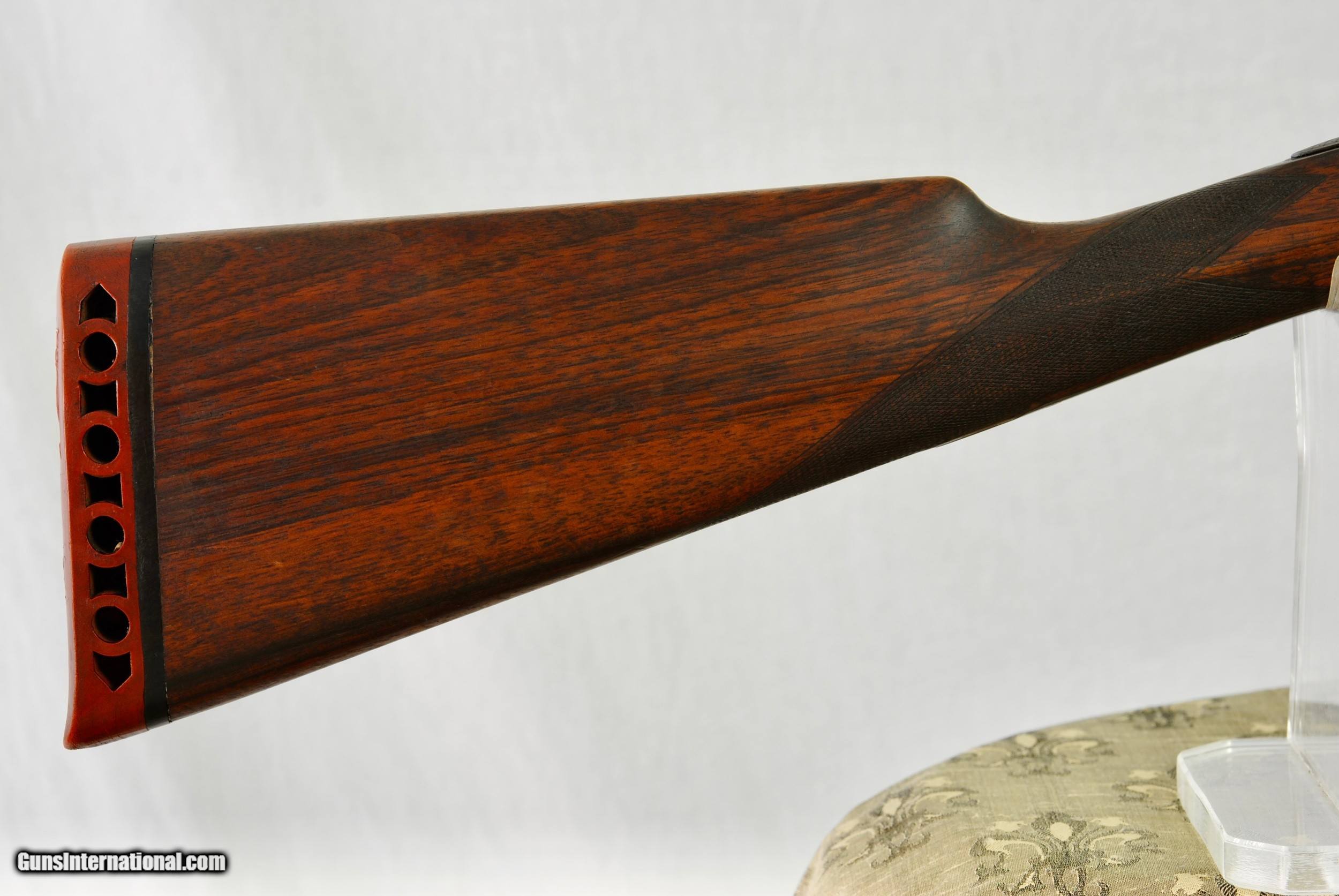 Description: Union Armera (Grulla) 20 gauge boxlock ejector. This gun was made in 1957 and imported by Dankin Gun Company in San Franciso. Scalloped receiver with fine rose and scroll engraving. Original case color hardening at 90%+. Chopper lump 26" barrels with mirror bores. Chokes are IC and Mod. Chambers are 2 3/4". Purdey style third fastener. No cracks to wood / tight on face / no loose ribs. Stock appears to have be refinshed as it is darker in color than forend. Weight of gun is 5 LBS 8 OZ. Good stock dimensions with; LOP - 14 1/4", drop at comb - 1 1/2" and drop at heel - 2 1/4". Shipping is $50. SOLD Shotgun Gauge: 20 Gauge |