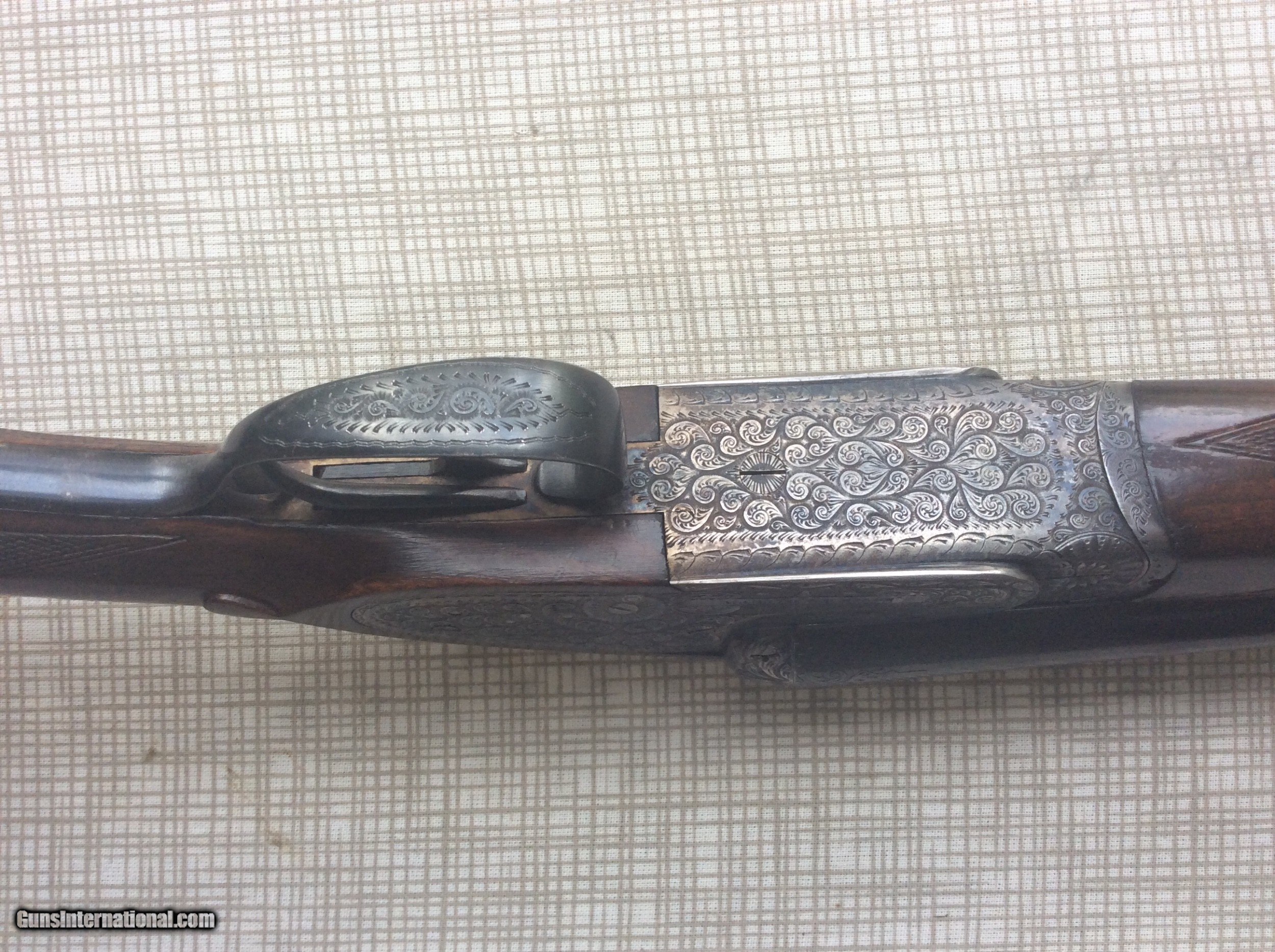 Description: V. Sarasqueta 12 bore with Churchill rib. Removable striker discs. Border and scroll engraving with high condition case color. $900.00 OBO SOLD Shotgun Gauge: 12 Gauge Barrel Length: 25 5/8 Chambers: 2 3/4 Ejectors: Yes Bore Condition: Excellent Stock Comb: 1 3/16 Stock Heel: 1 7/8 LOP: 15 1/2 Weight: 6-10 Choke Left: FULL Choke Right: IMP CYL |