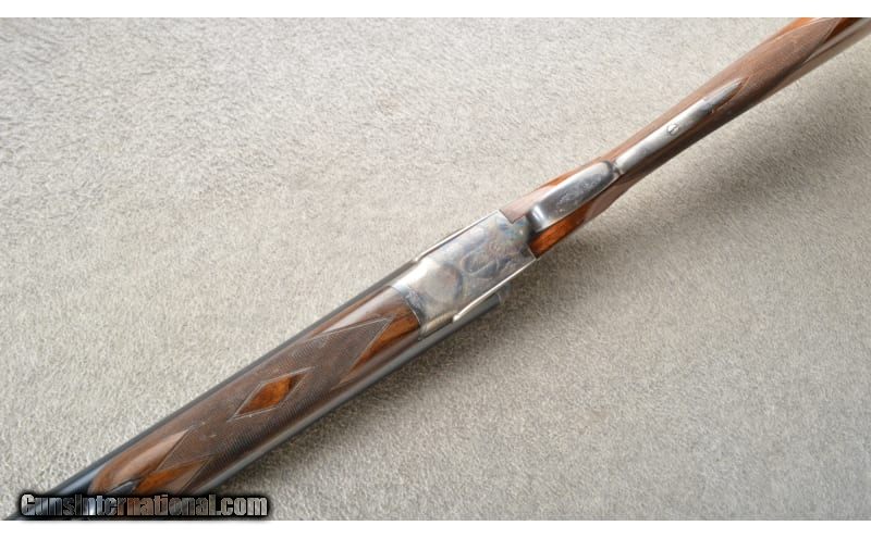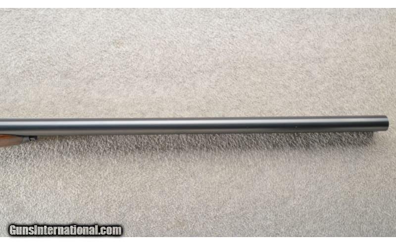 Description: Victor Sarasqueta 5E Hammerless Sidelock shot gun chambered in 12 Gauge. This top lever shotgun has 27.75" steel barrels with a front bead sight. It has 2¾ inch chambers and is choked Modified and Full. The gun has scroll engraved action on both sides. It has double triggers and automatic safety. Stock measurements; LOP 143/8", DH 2 3/4", DC 1 3/8" 12 Gauge SOLD Chambers: 2 3/4" chambers. Metal Condition: Very good with thinning finish on the bottom frame and sides. Wood Condition: Very good with scattered surface handling marks throughout. Bore Condition: Bright smooth bores. Barrels: 27.75" barrels. Triggers: Two. Stock Dimensions: LOP 14 3/8". Fore End: Splinter. Butt Pad: Hard rubber. Weight: 6.25 lbs Sights: Bead. Chokes: Fixed. Item Location: Owatonna, MN |